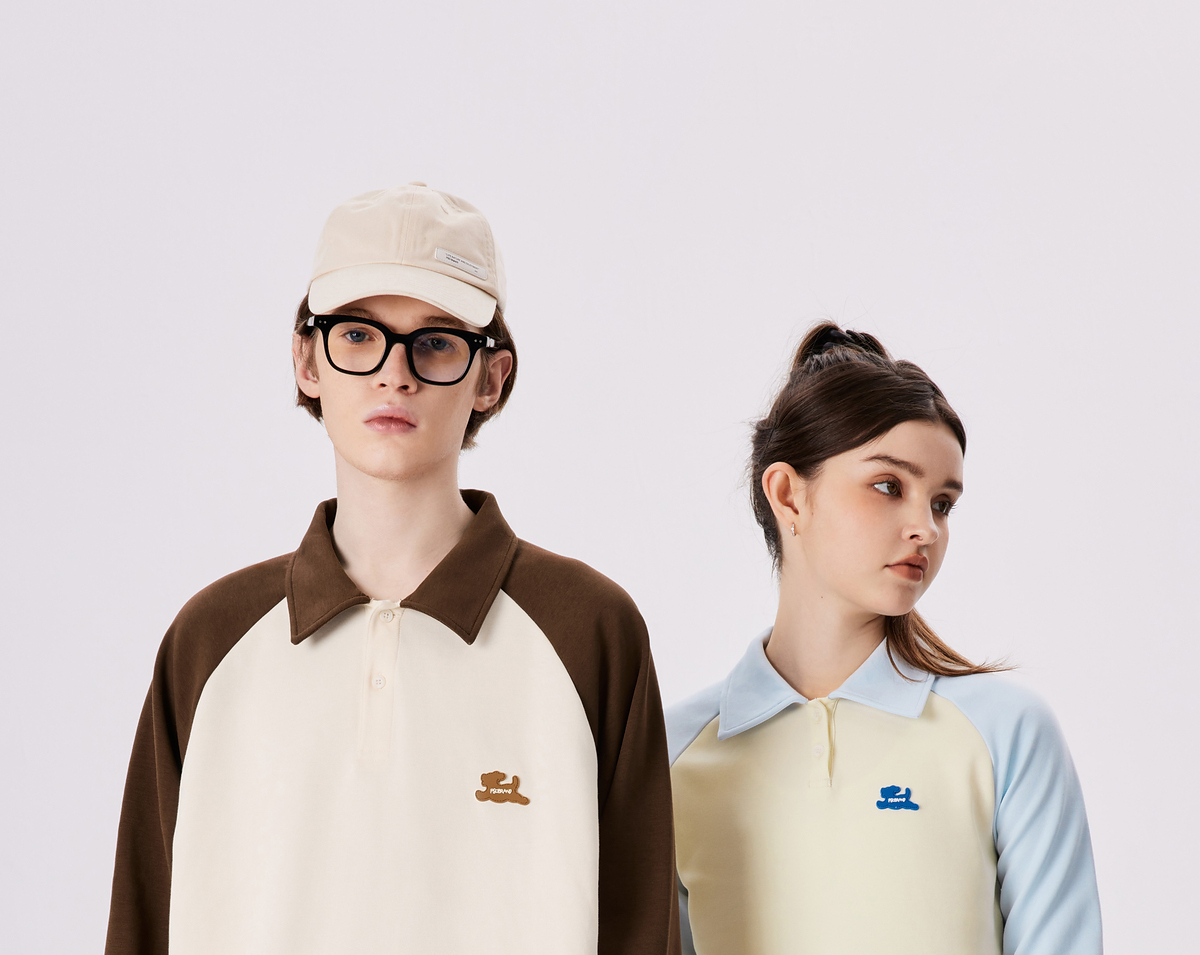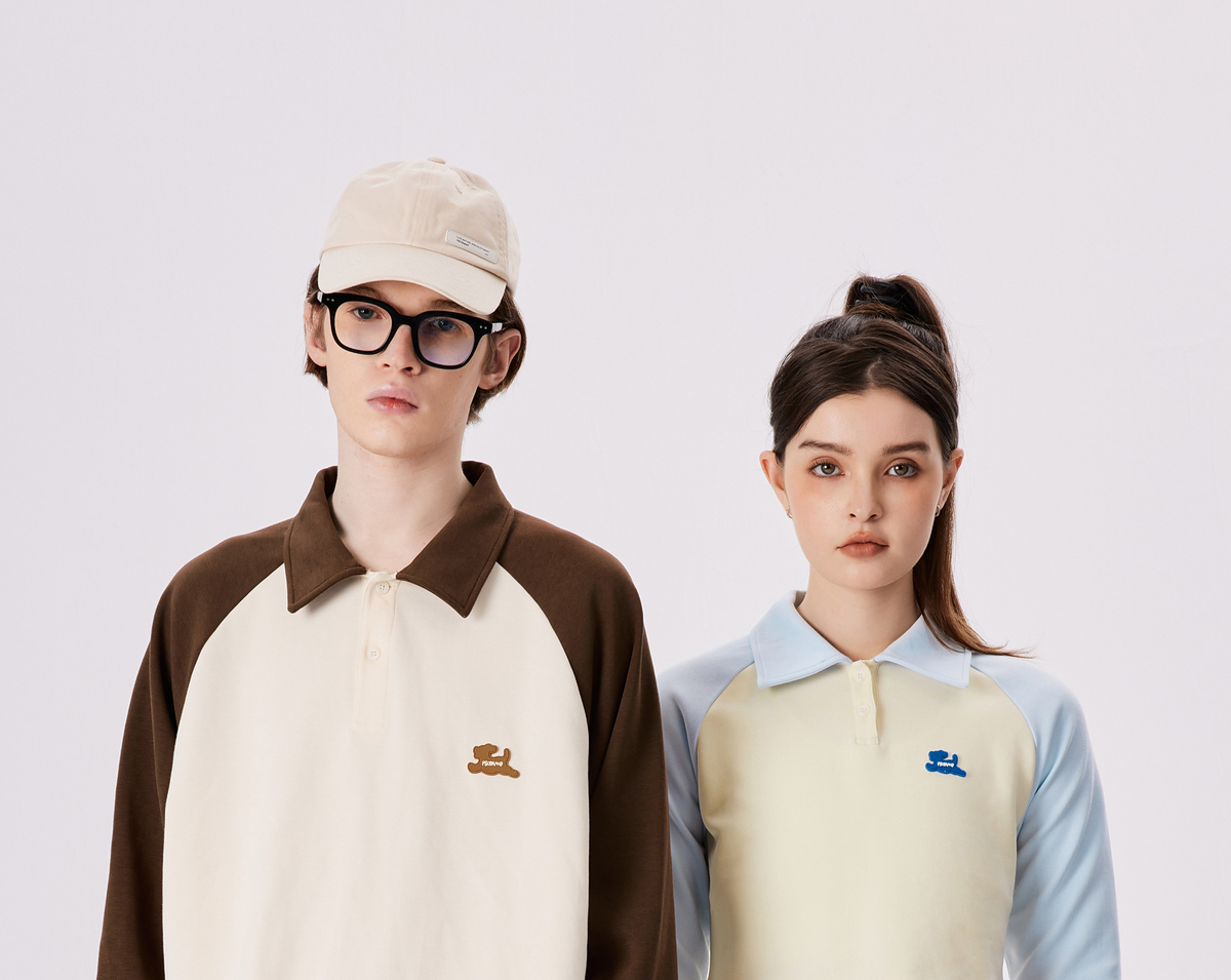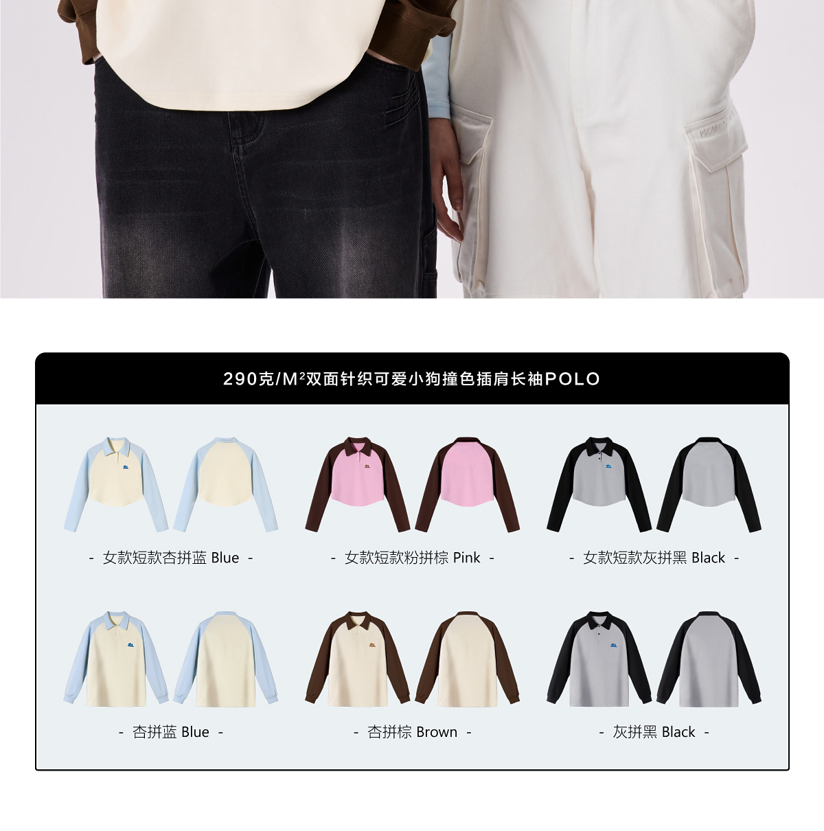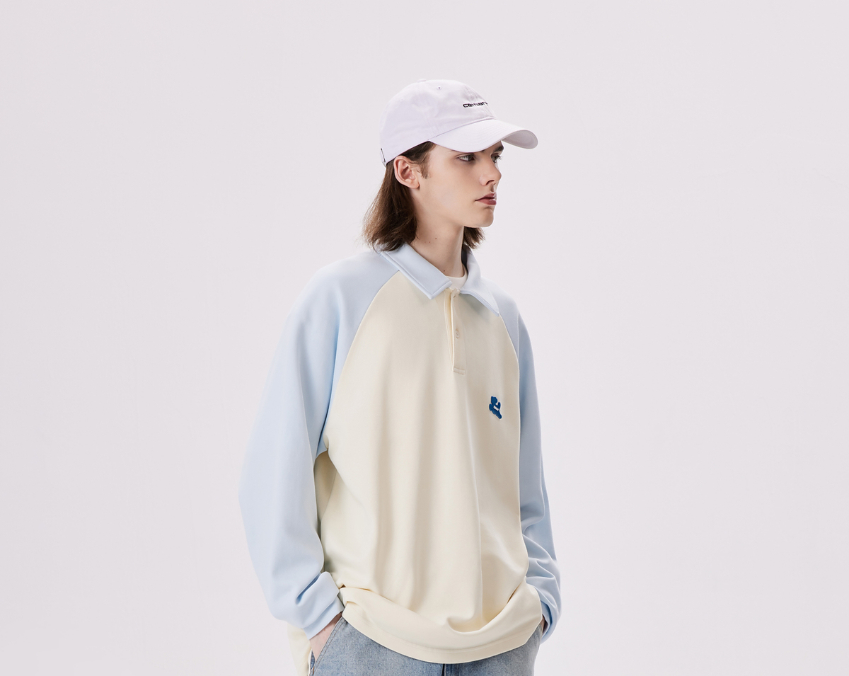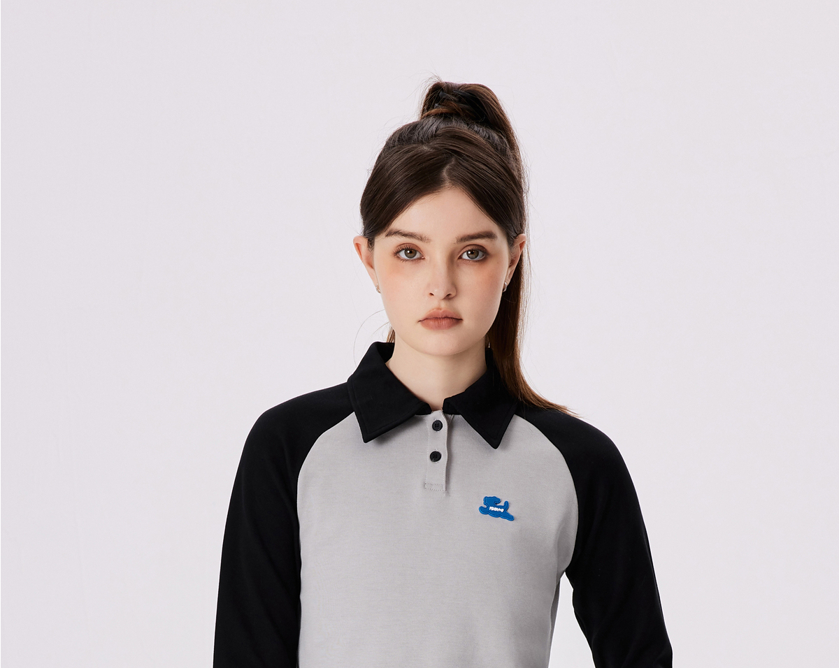 PSO Brand【彈力】290克針織可愛小狗撞色插肩長袖POLO衫男翻領