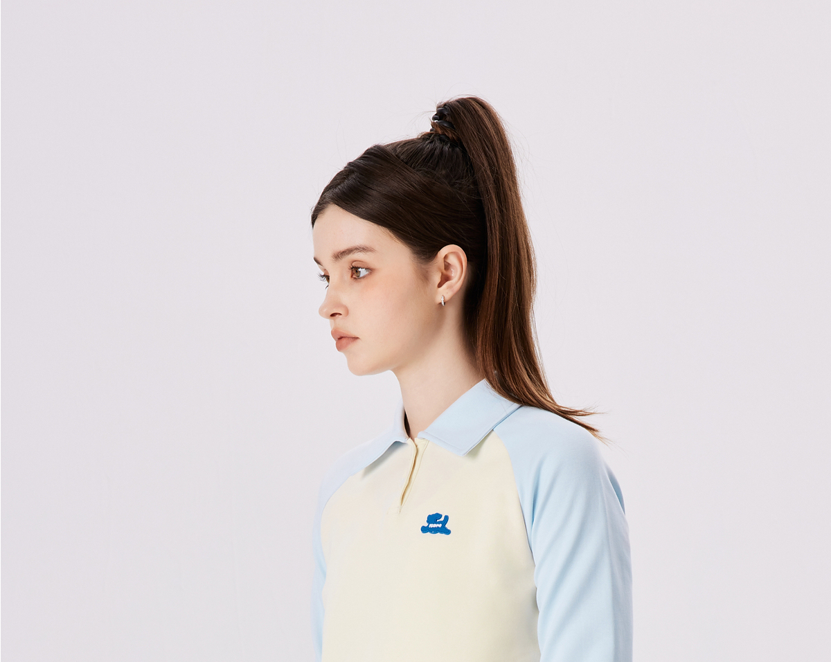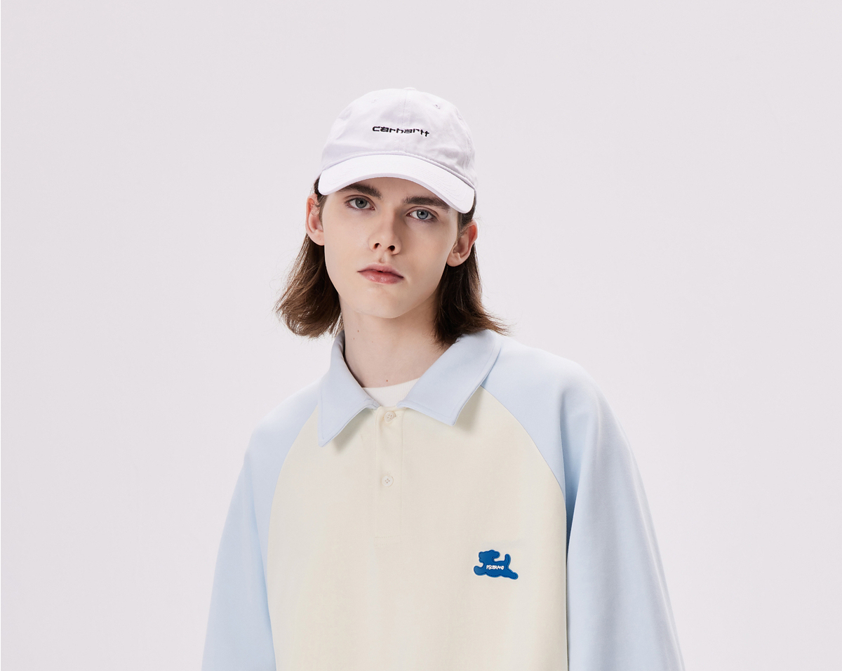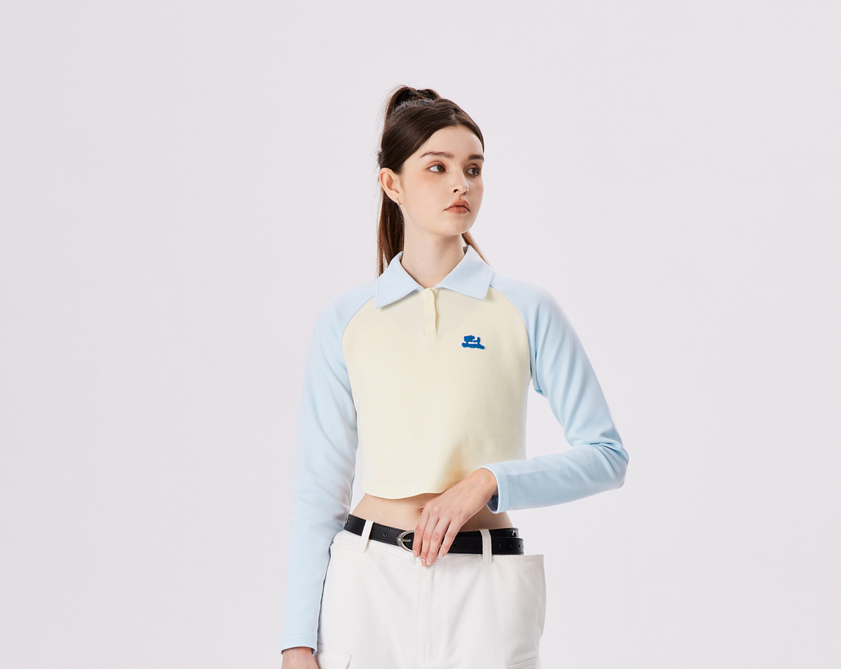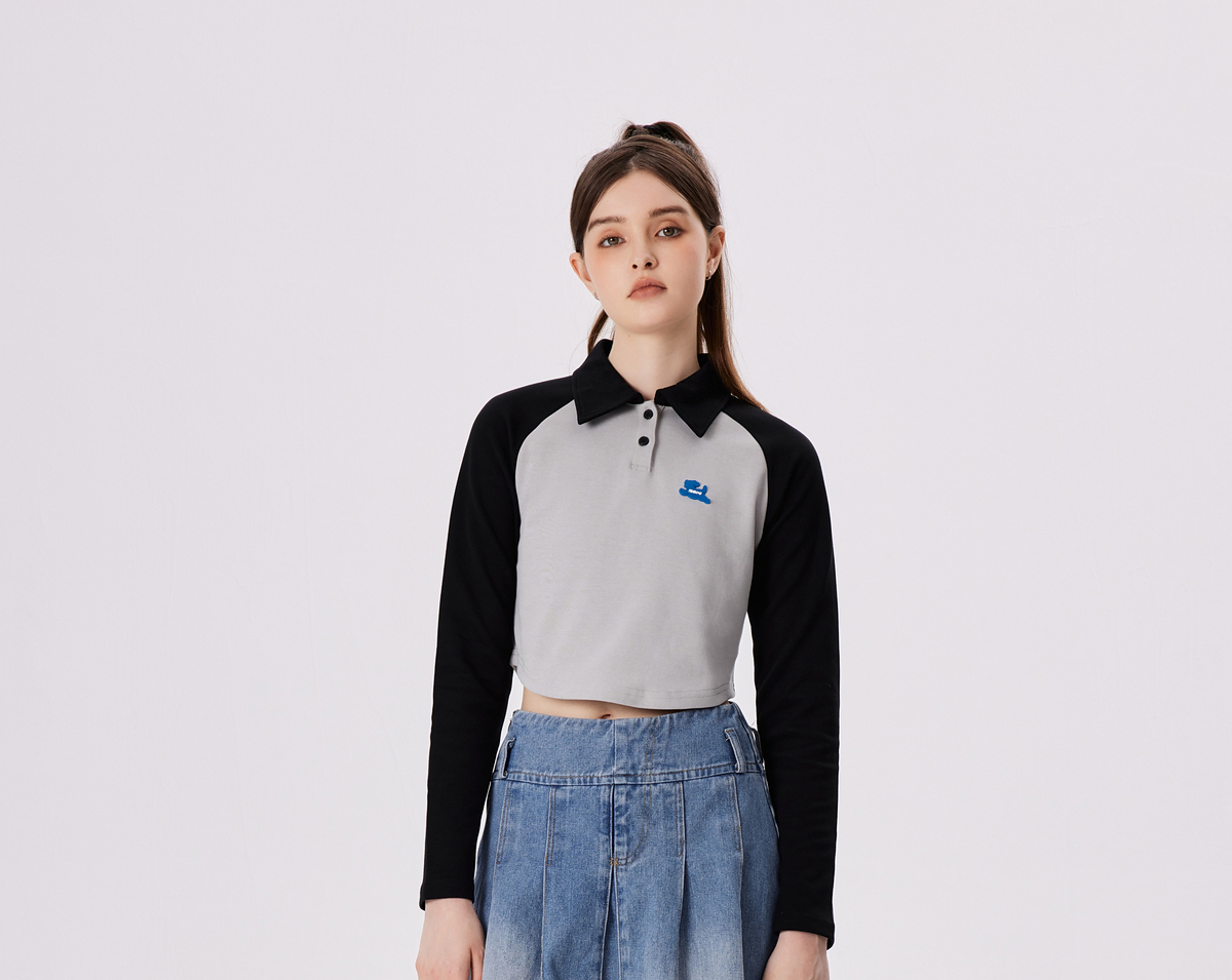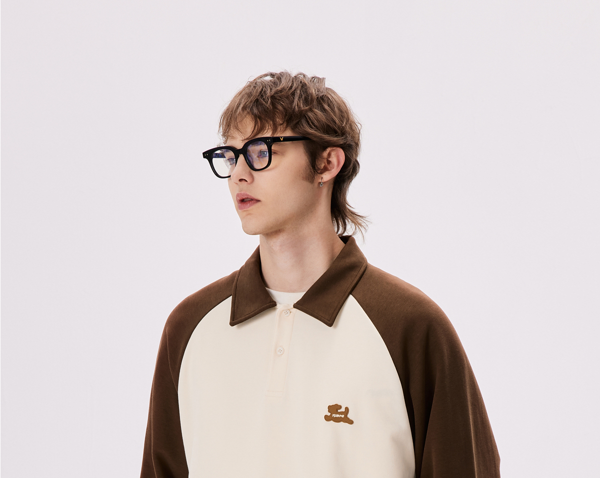 PSO Brand【彈力】290克針織可愛小狗撞色插肩長袖POLO衫男翻領