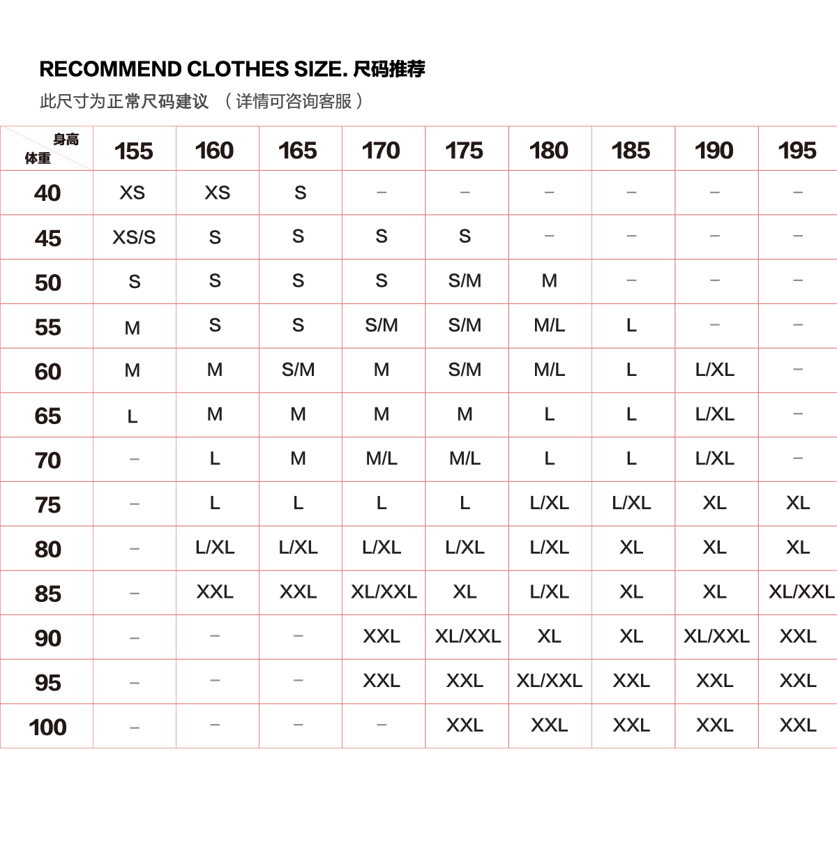 尺碼 S M L XL XS
