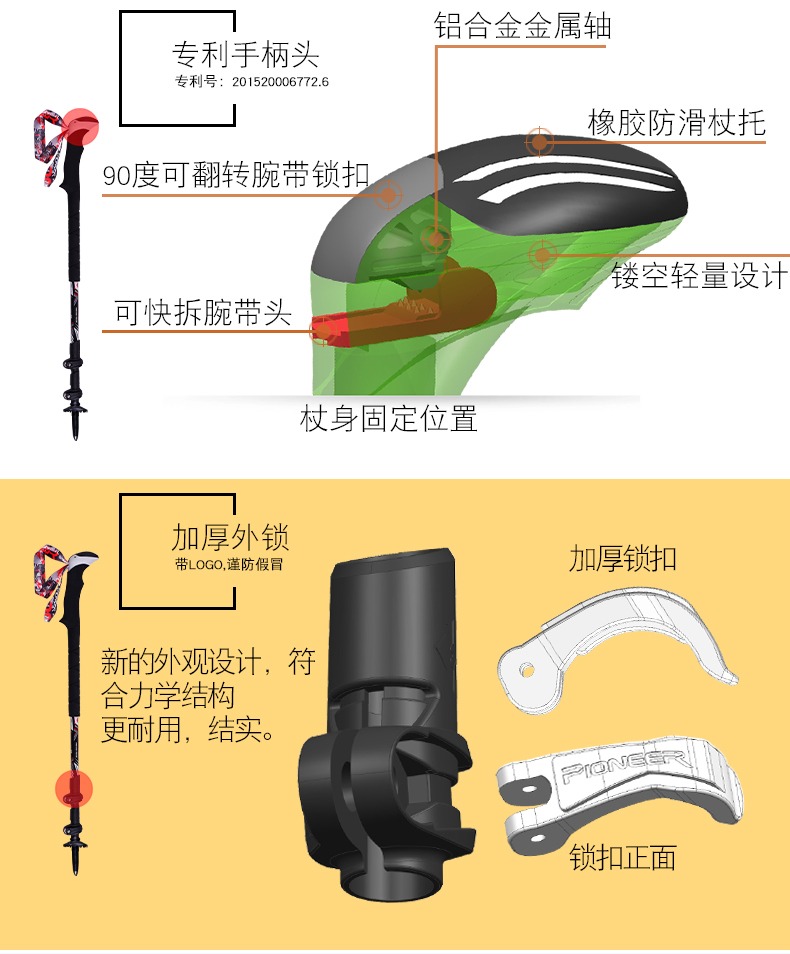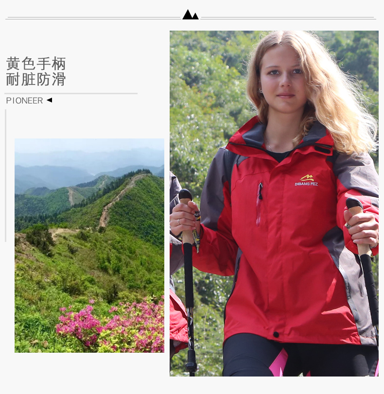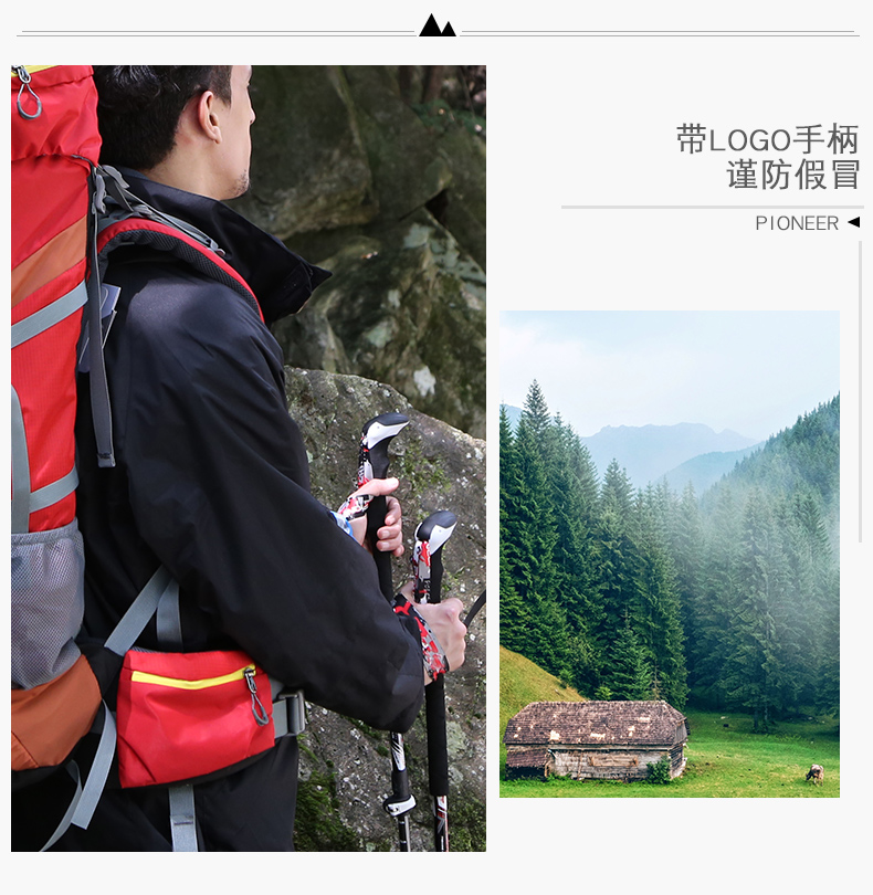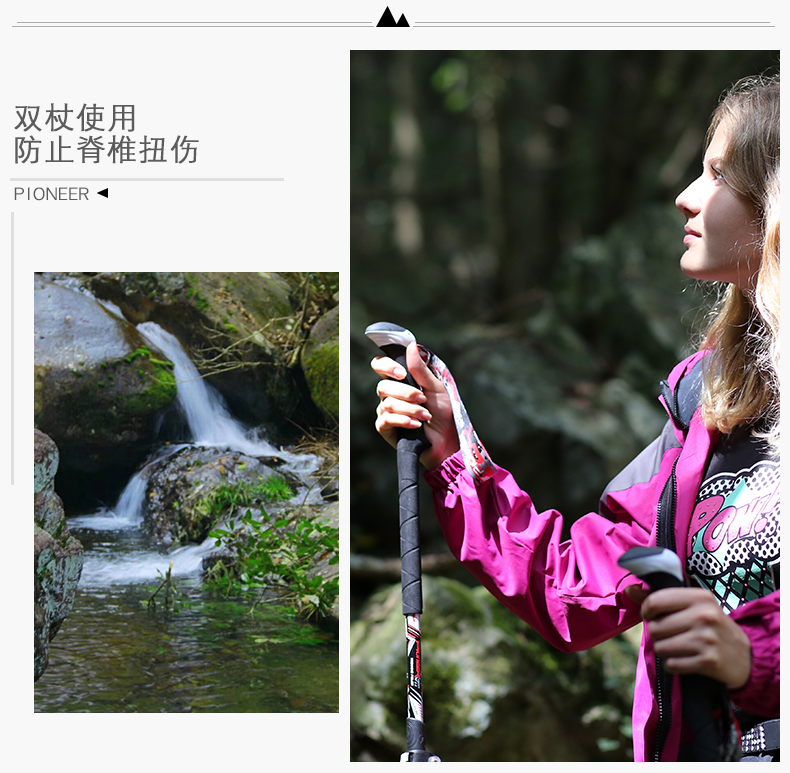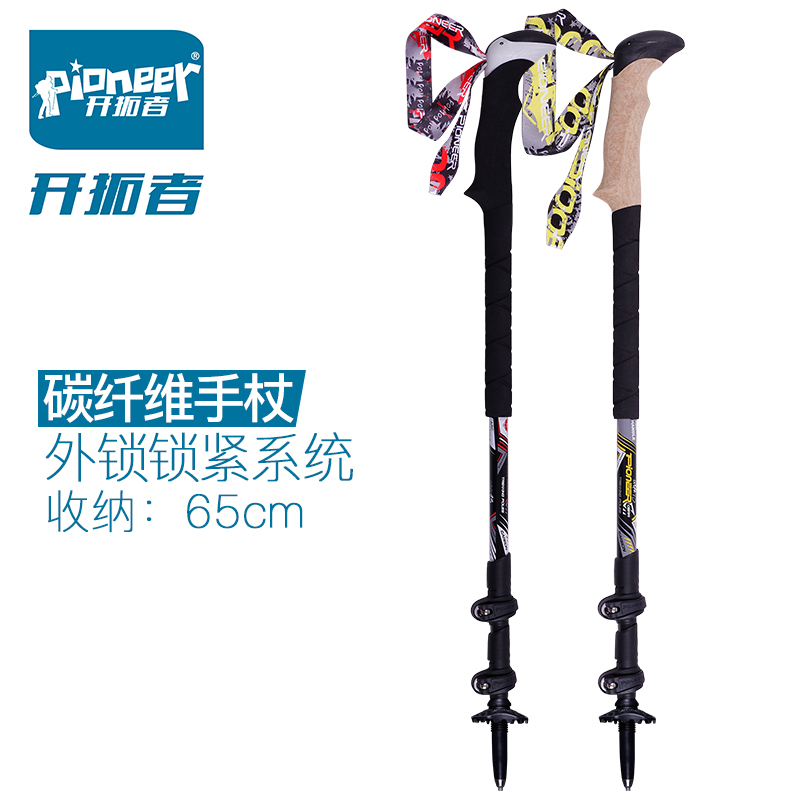 開拓者戶外99%碳素登山杖 三節杖手杖柺杖外鎖可伸縮摺疊爬山柺棍