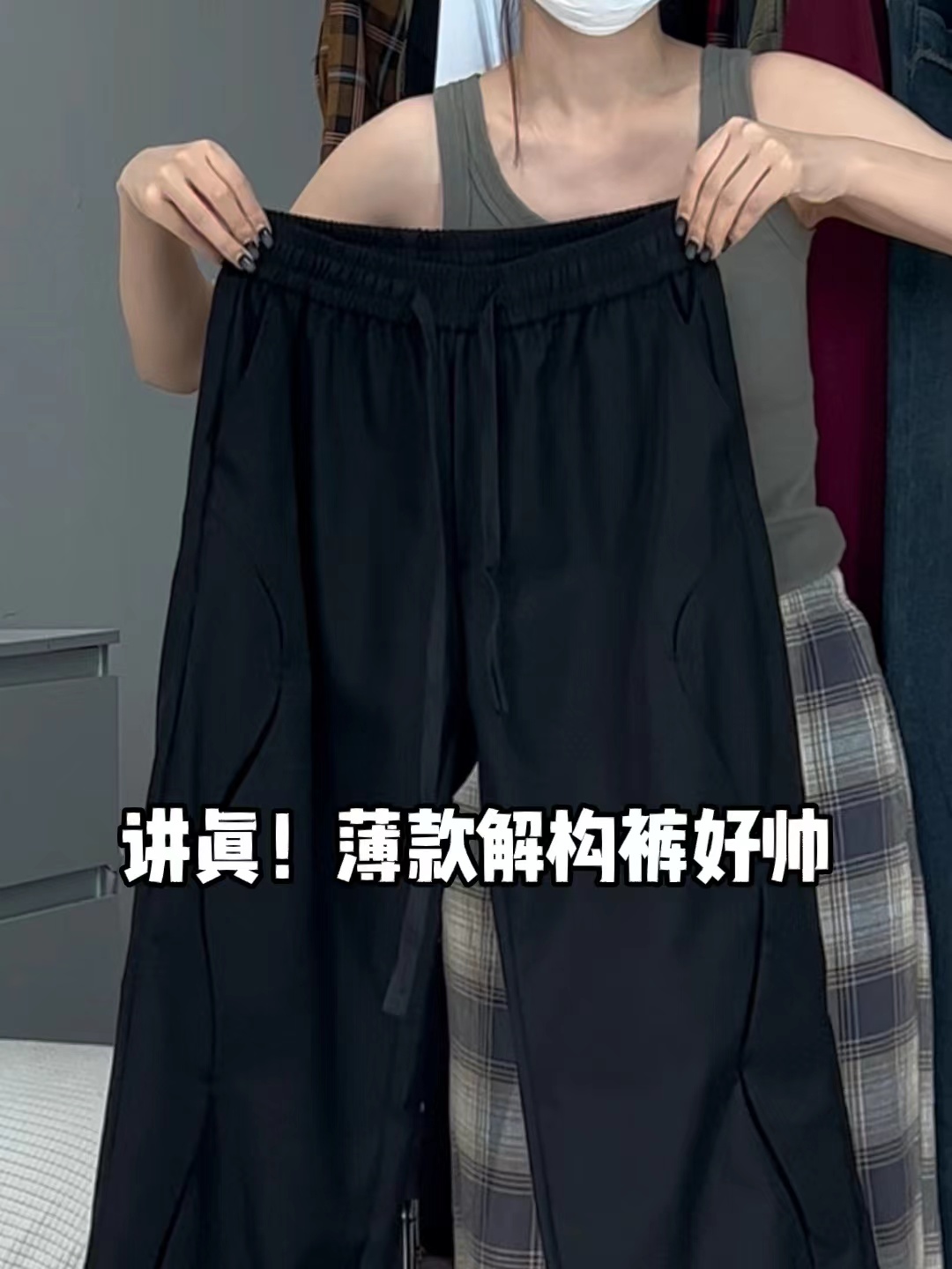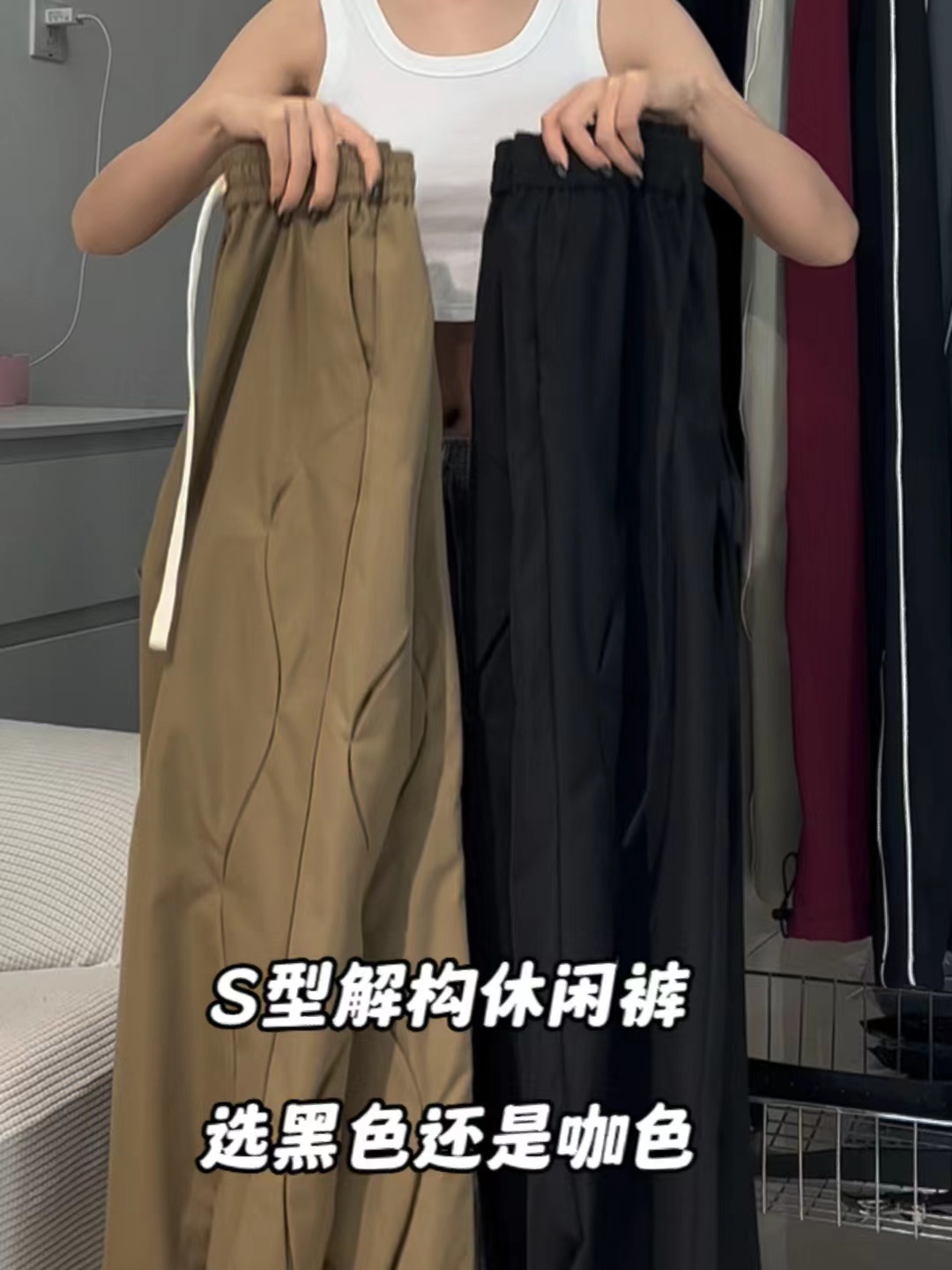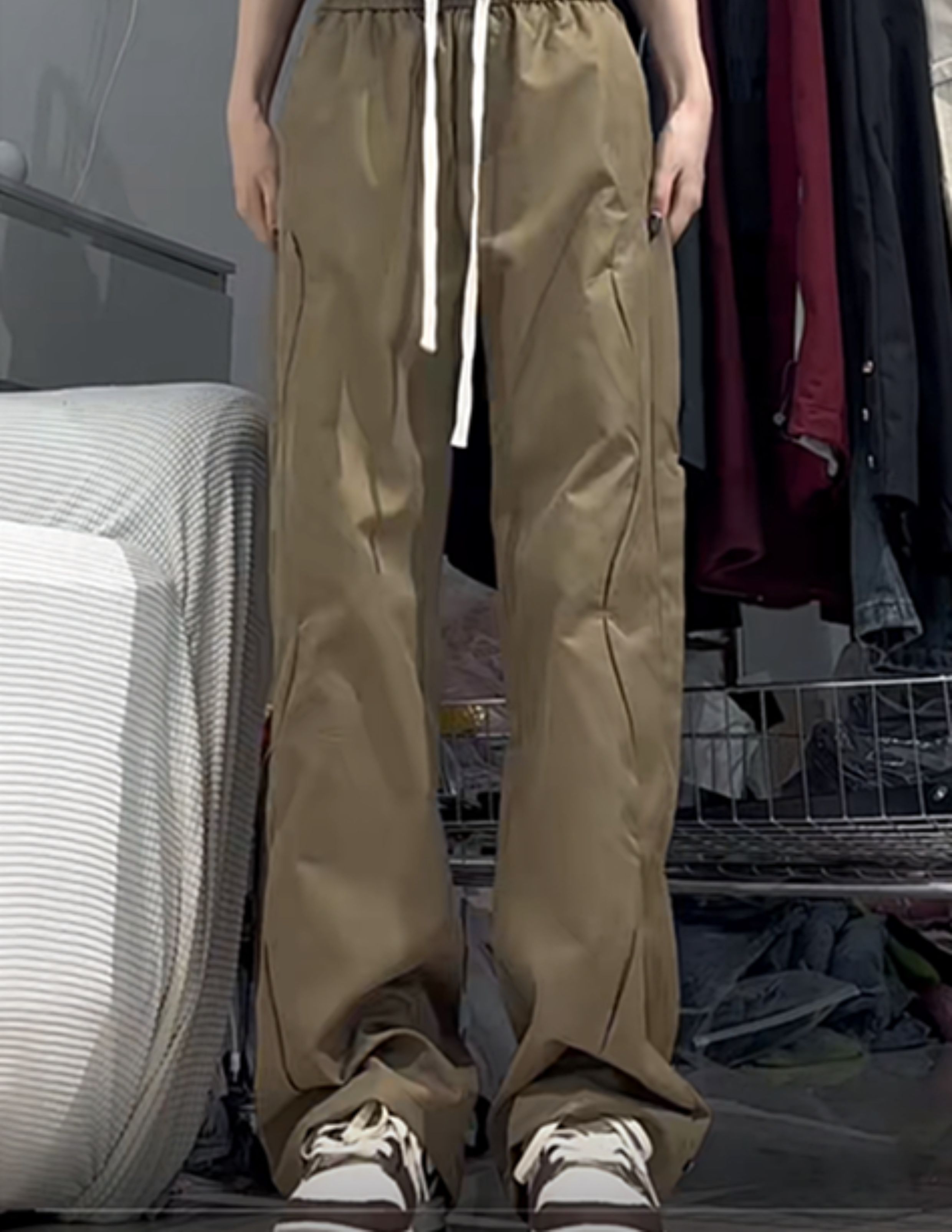 美式寬鬆復古設計感街頭男女休閒vide解構褲高街直筒高腰運動長褲