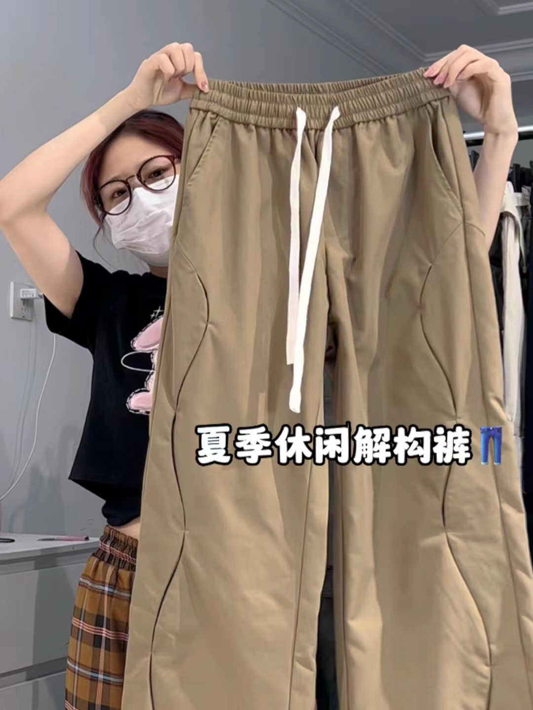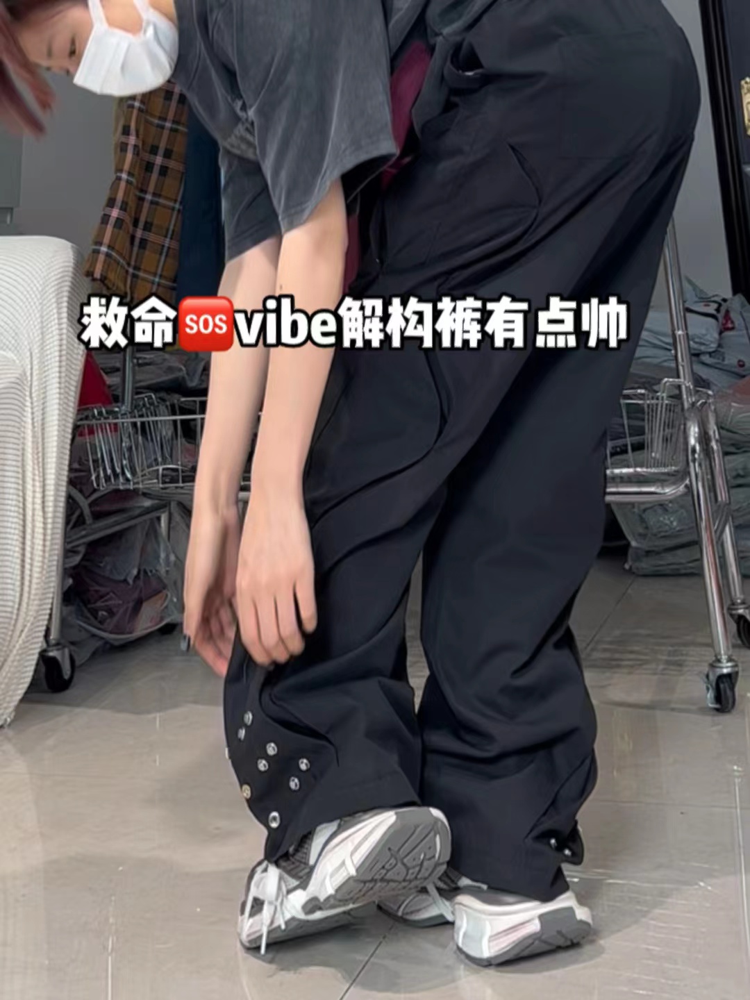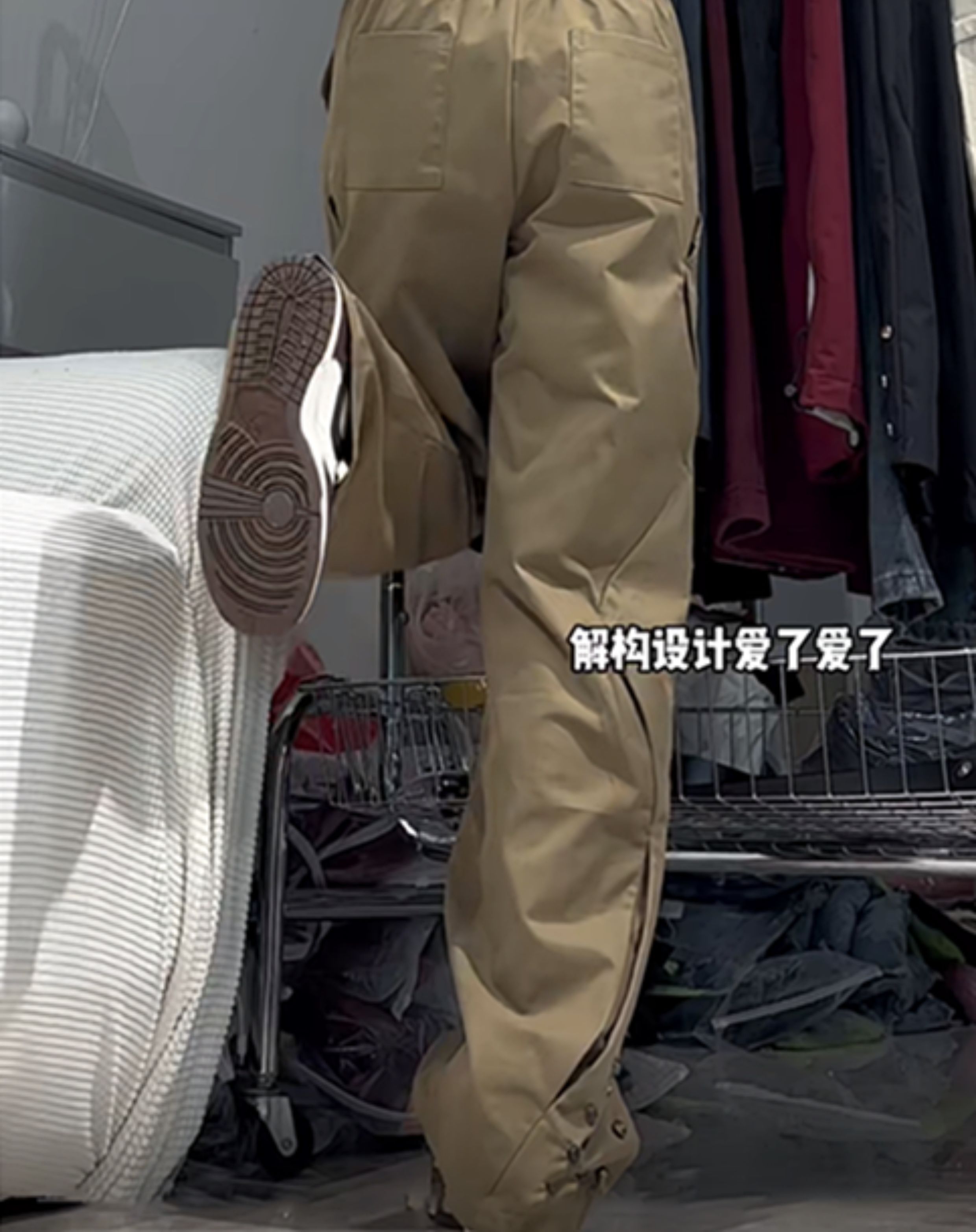 美式寬鬆復古設計感街頭男女休閒vide解構褲高街直筒高腰運動長褲