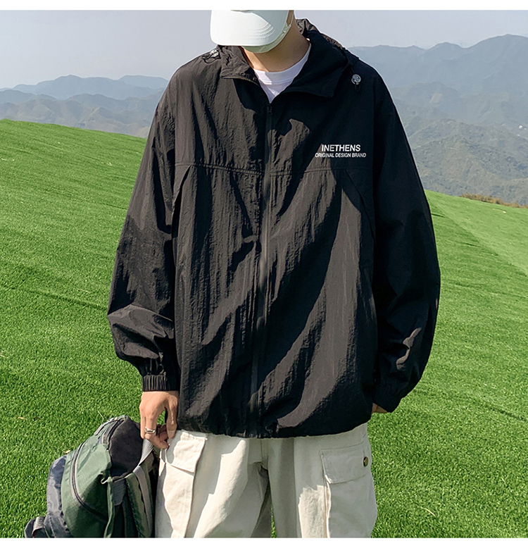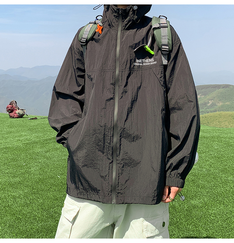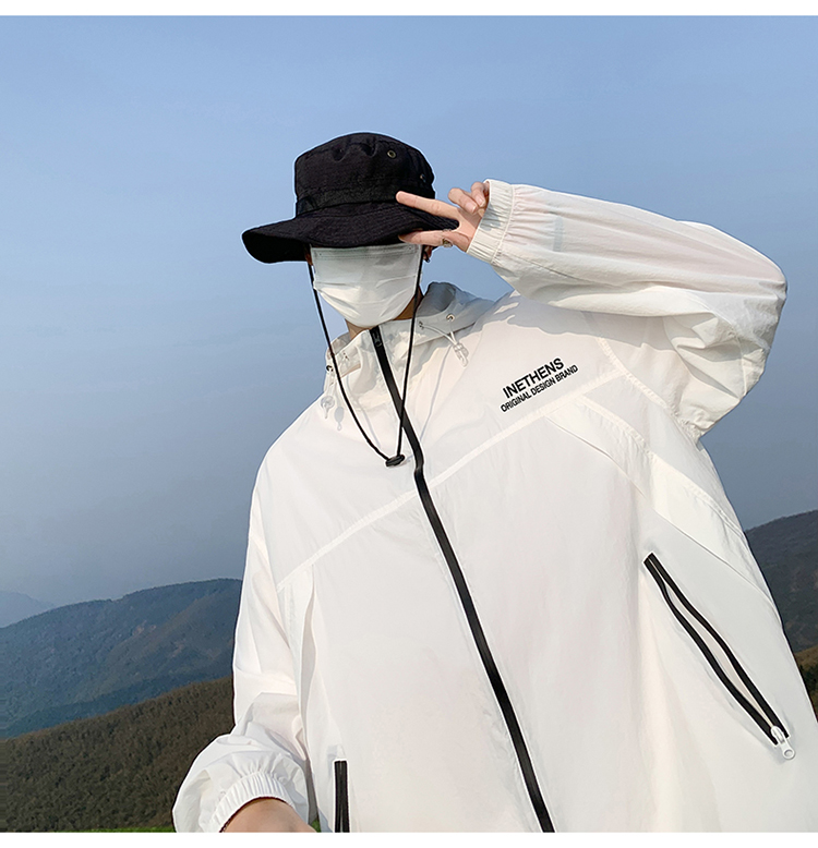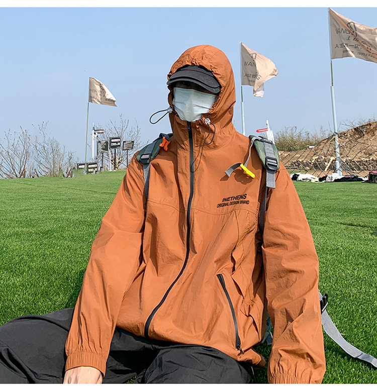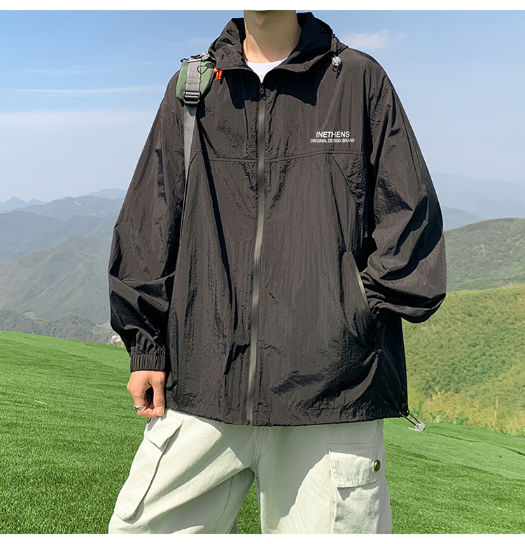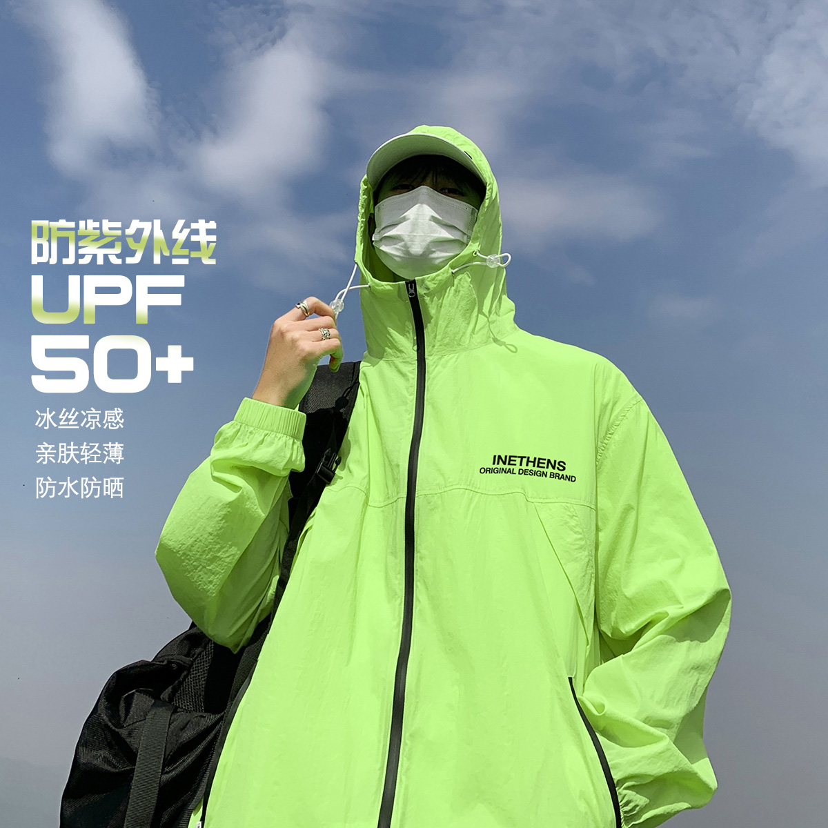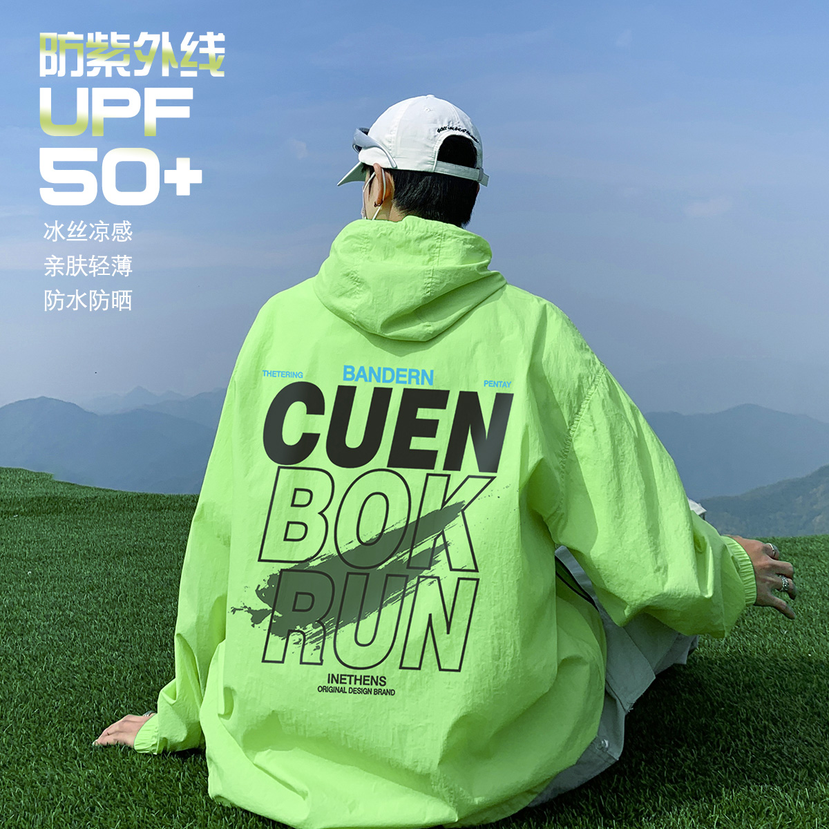 男士防曬衣2023新款薄款夏季連帽冰絲夾克美式潮牌速乾衝鋒衣外套