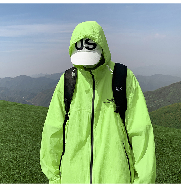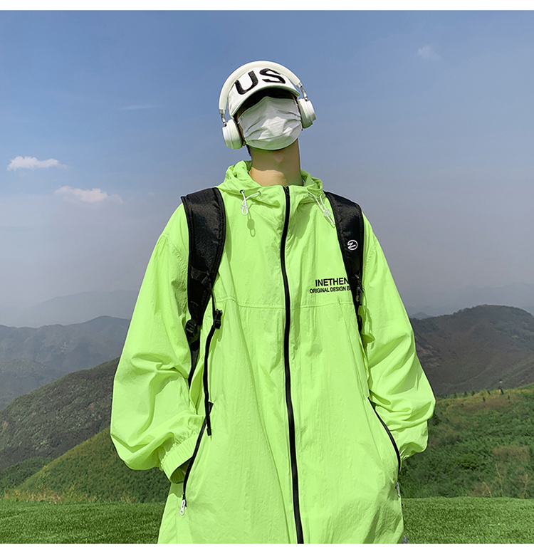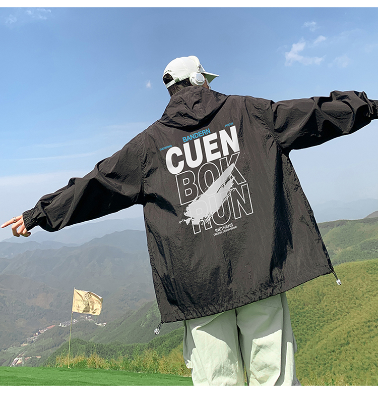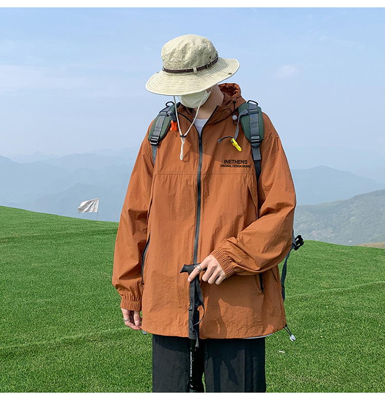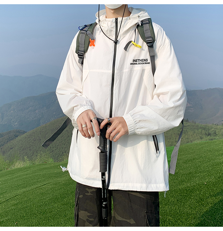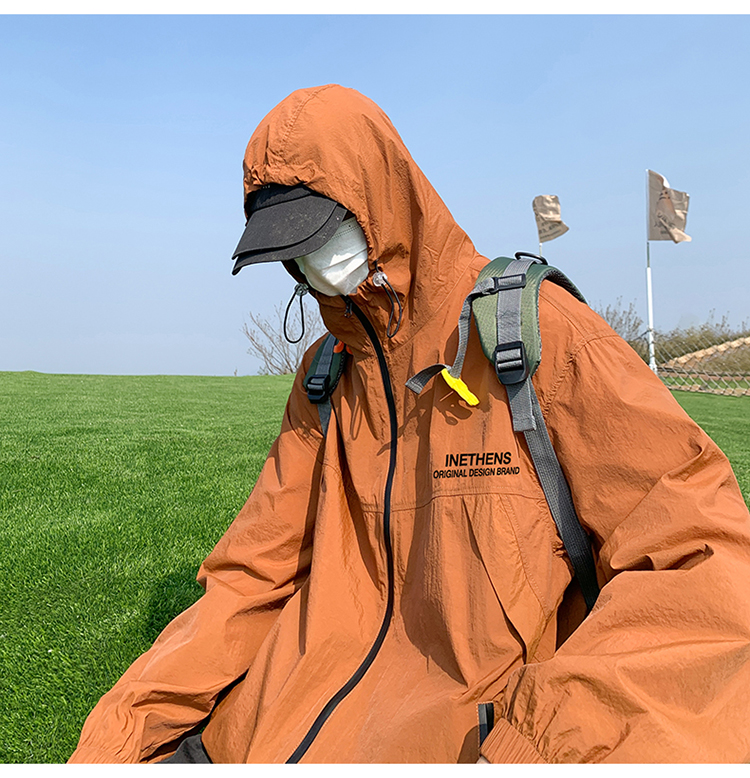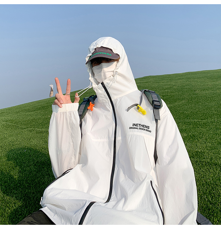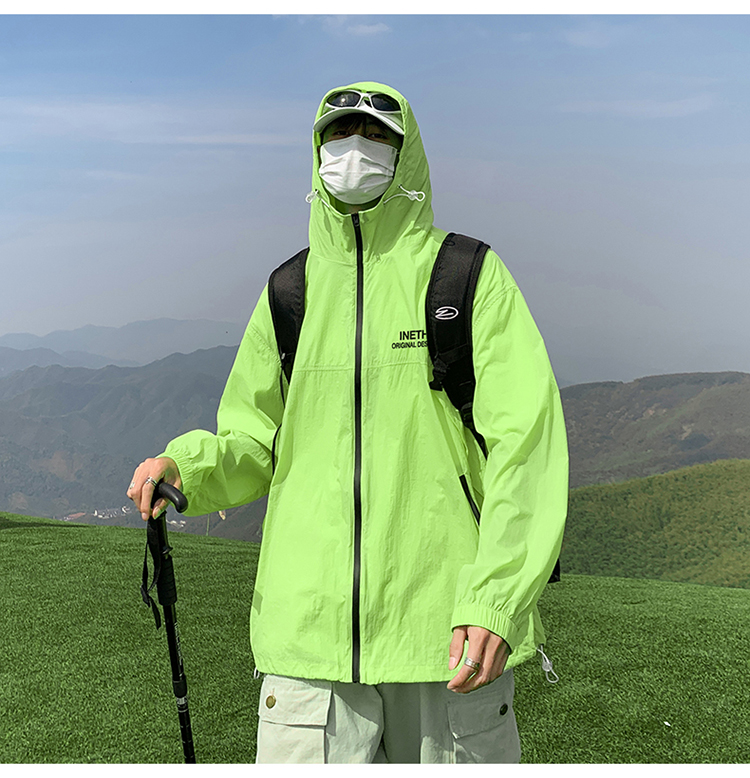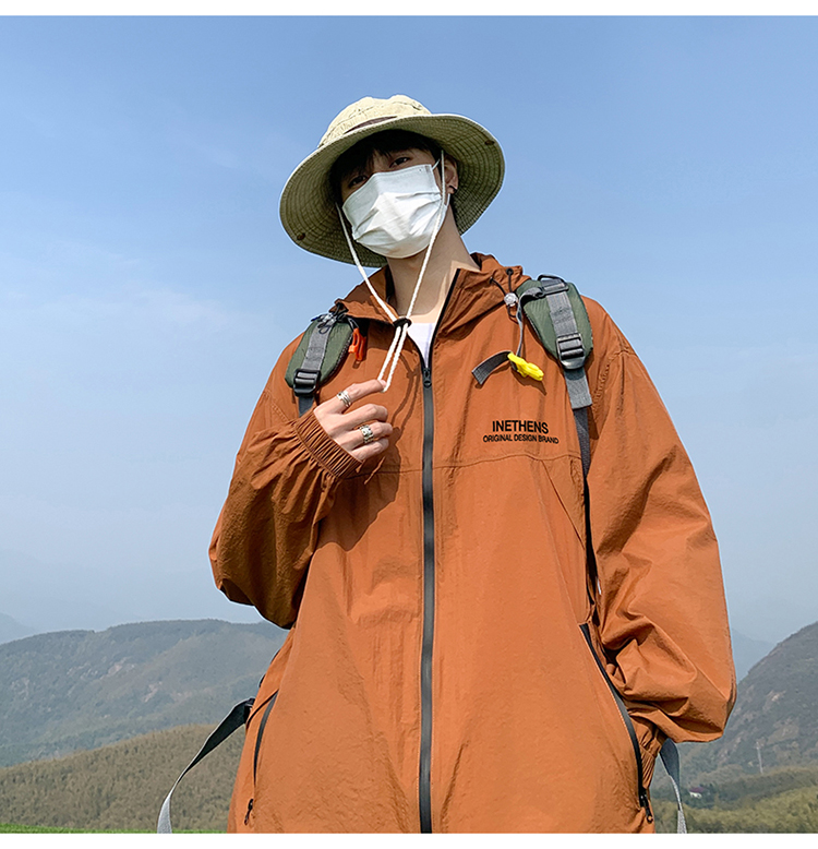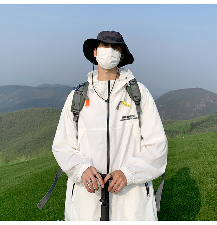 男士防曬衣2023新款薄款夏季連帽冰絲夾克美式潮牌速乾衝鋒衣外套
