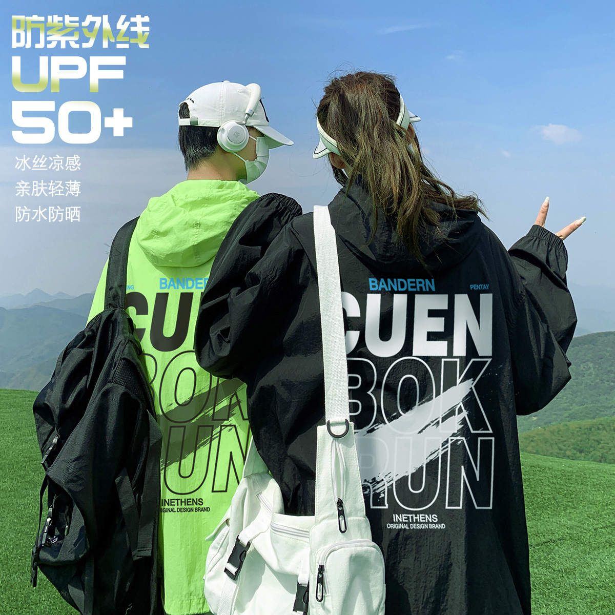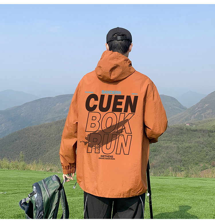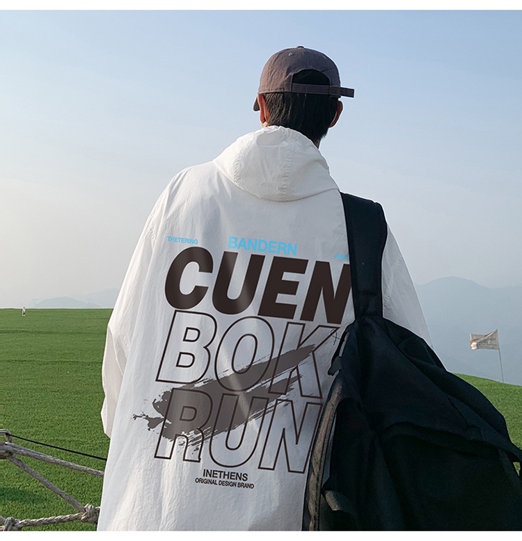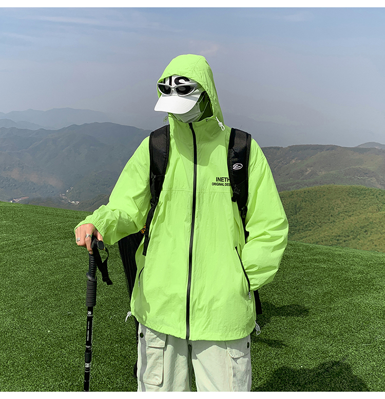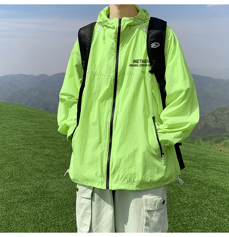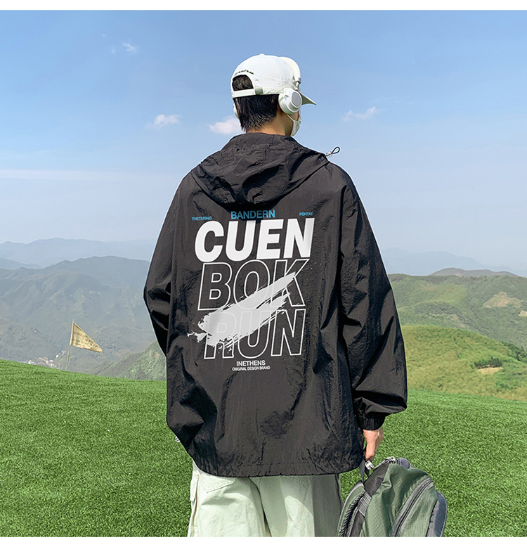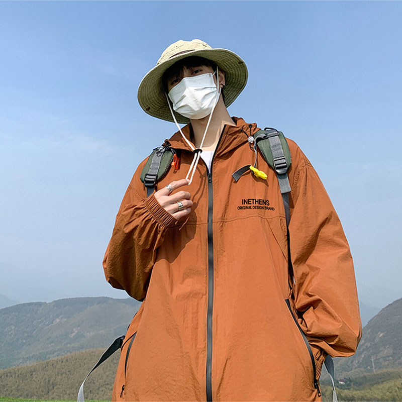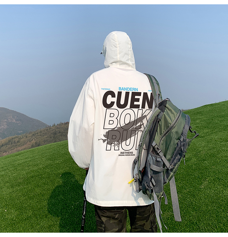 男士防曬衣2023新款薄款夏季連帽冰絲夾克美式潮牌速乾衝鋒衣外套