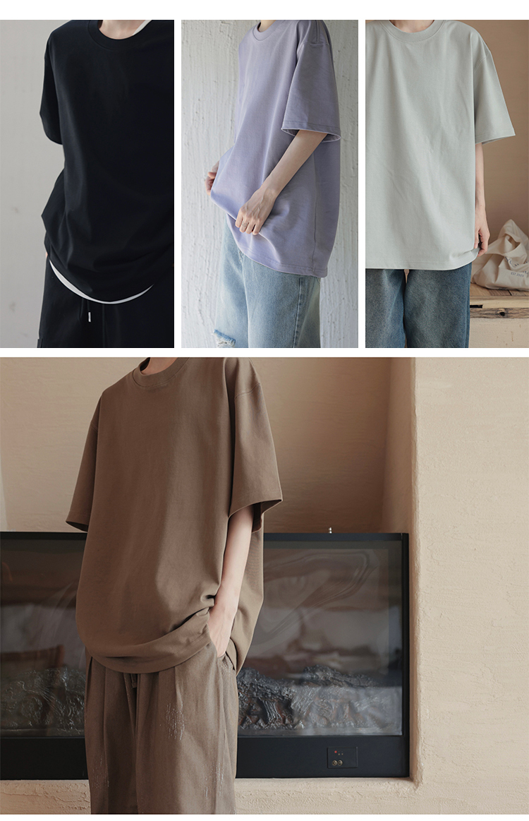 衣疫 5色.低飽和色系基礎款300g雙紗全棉短袖t恤