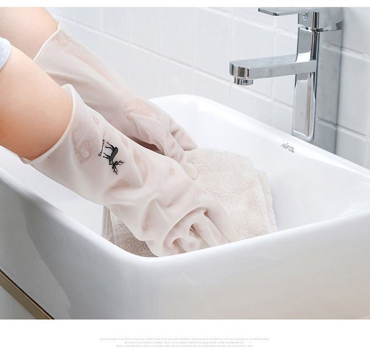 厨房洗碗手套女白色防水拖地洗衣服手套家务清洁手套塑胶橡胶手套