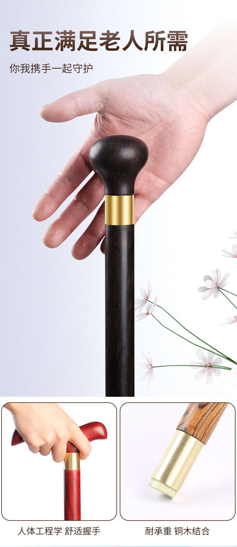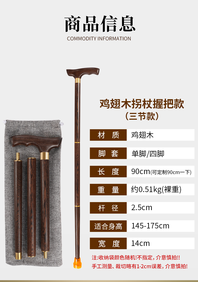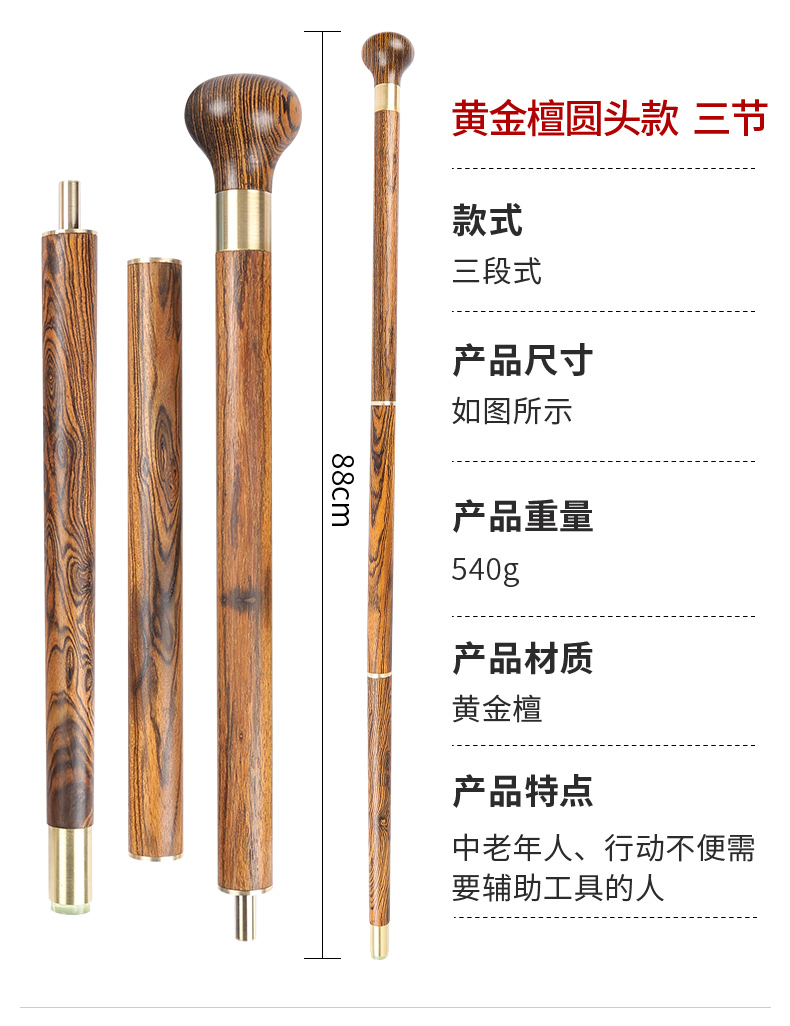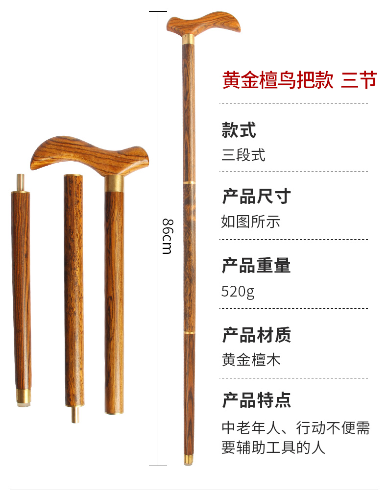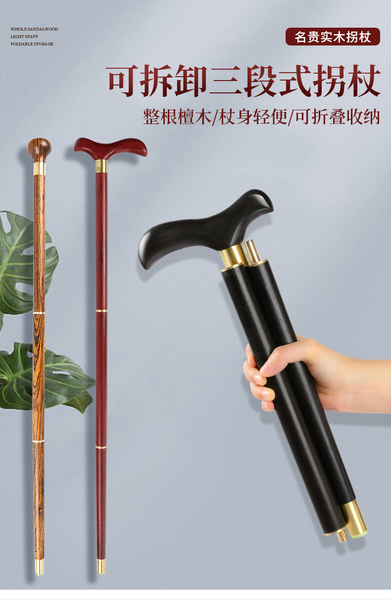 紅木老人柺杖烏木柺棍老年人實木拐扙輕便手杖紫檀木防滑可攜式三節