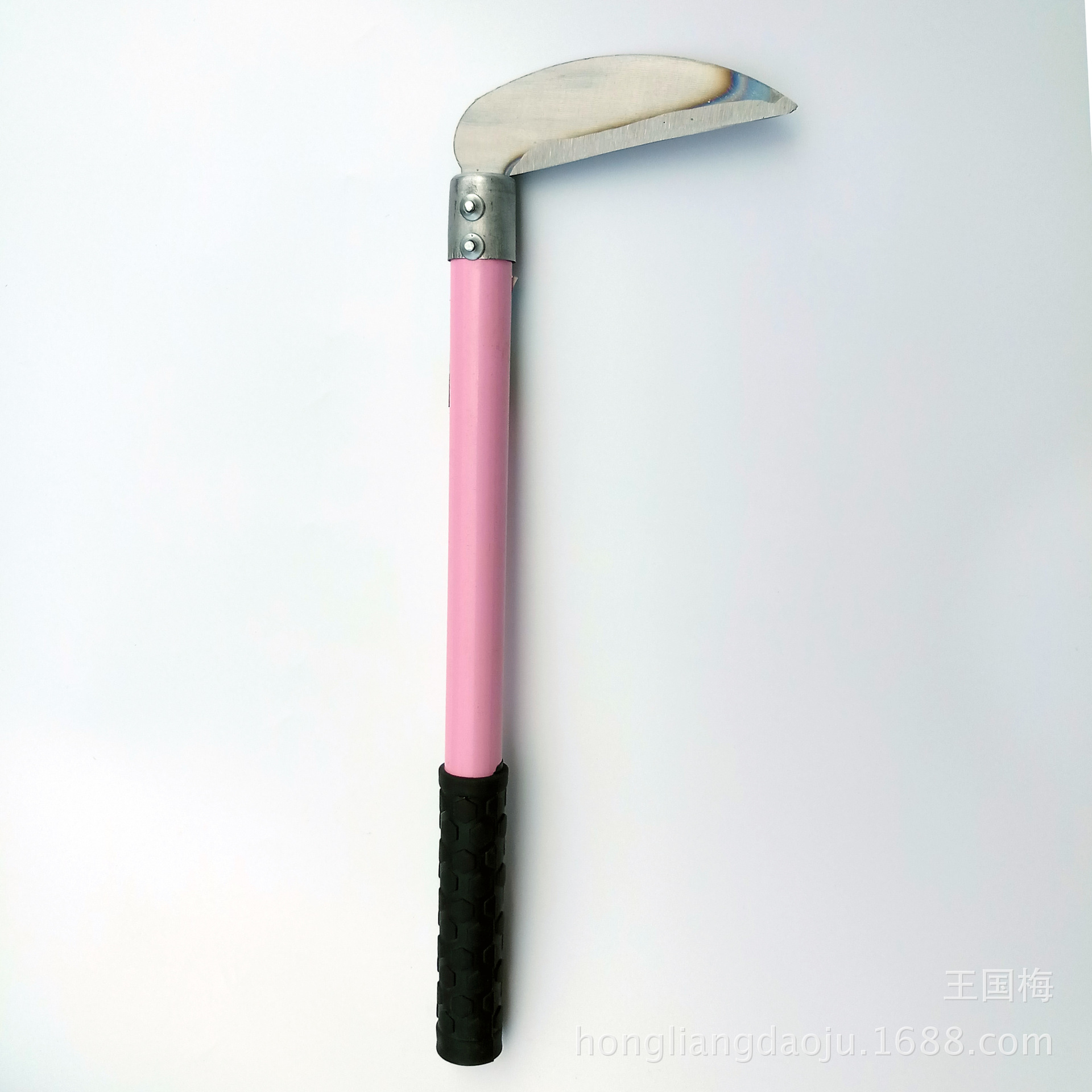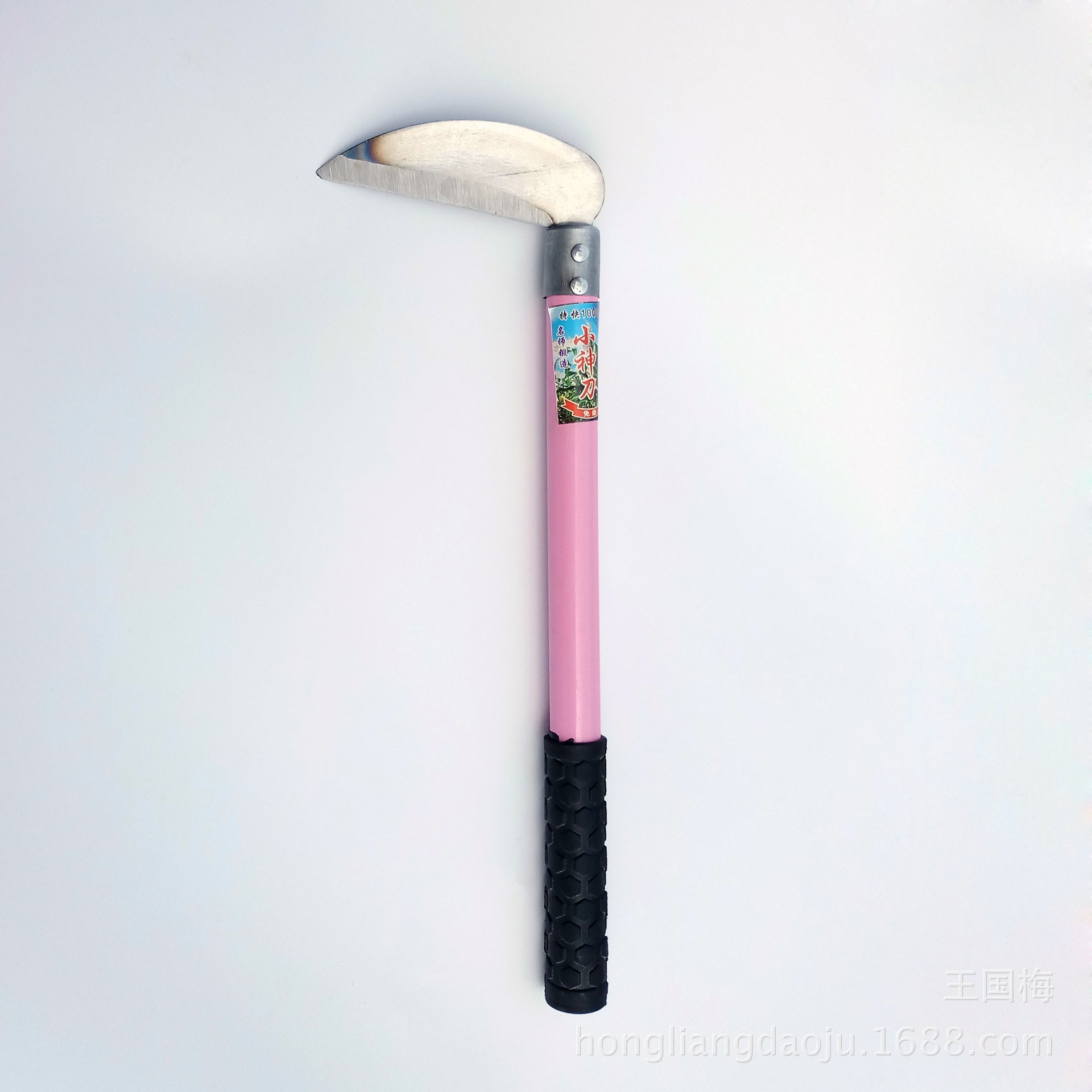 本厂生产的直铁柄小镰刀系列镰刀,刀头采用50号锰钢经冲压,高频淬火,热油回火,精磨等几道工序精制而成,刀口硬度可达HRC56-58度,异常锋利,刀柄采用铁管经切割、打磨、喷塑等几道工序制作,经济实惠、美观大方!