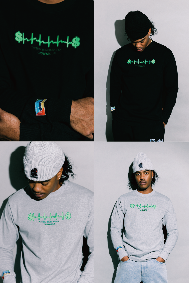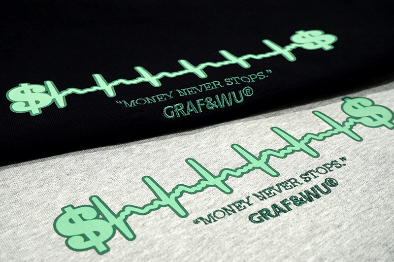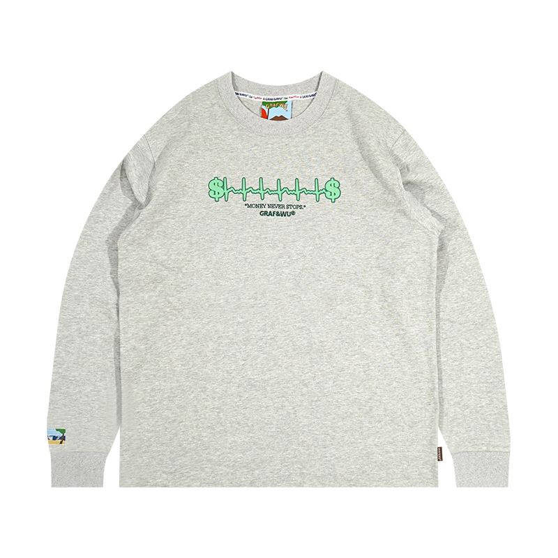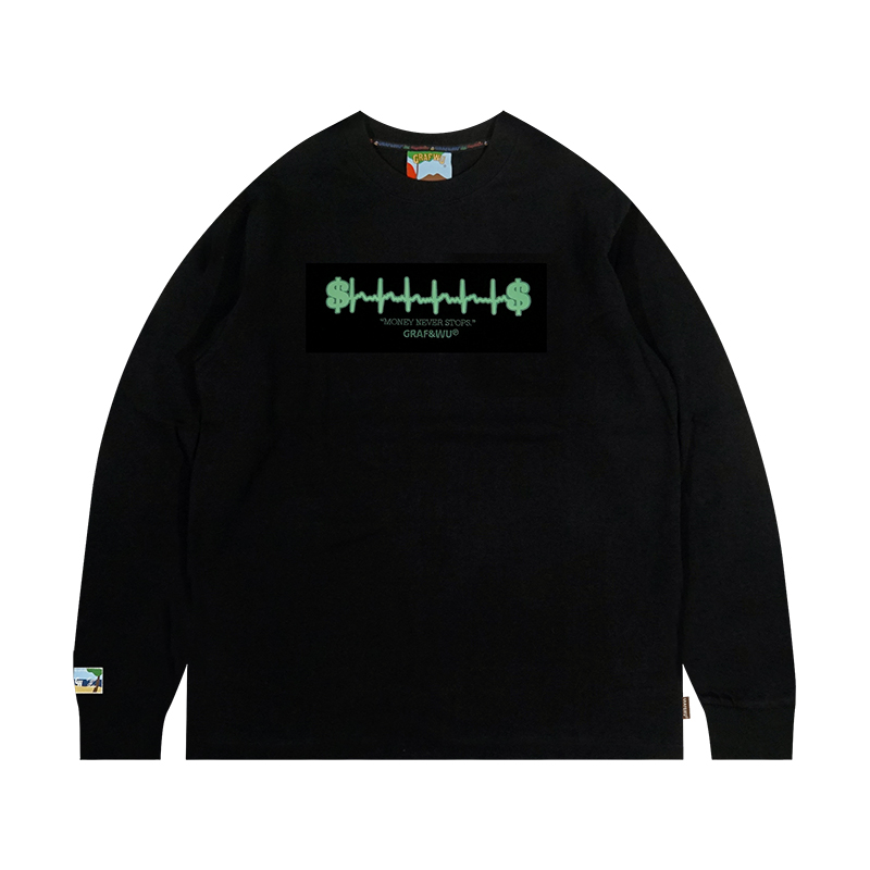 GRAF原創品牌金錢心電圖簡約圖案街頭潮流秋冬雙色基礎長袖T恤