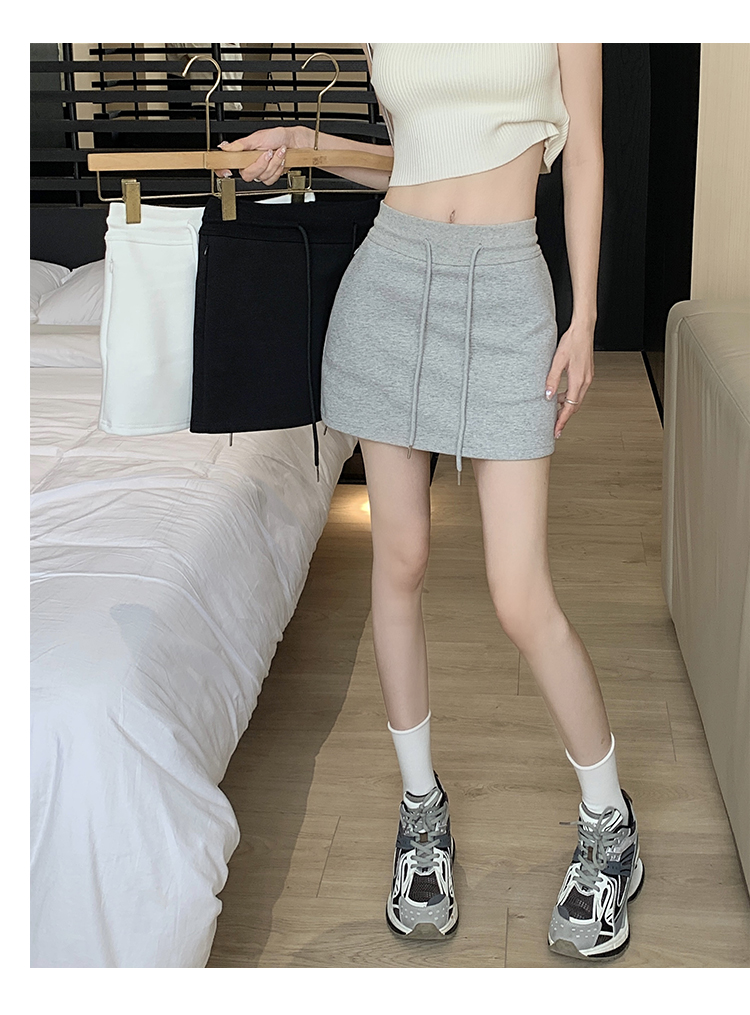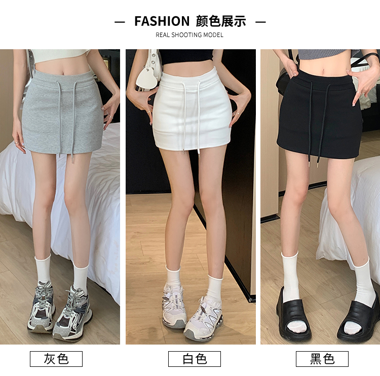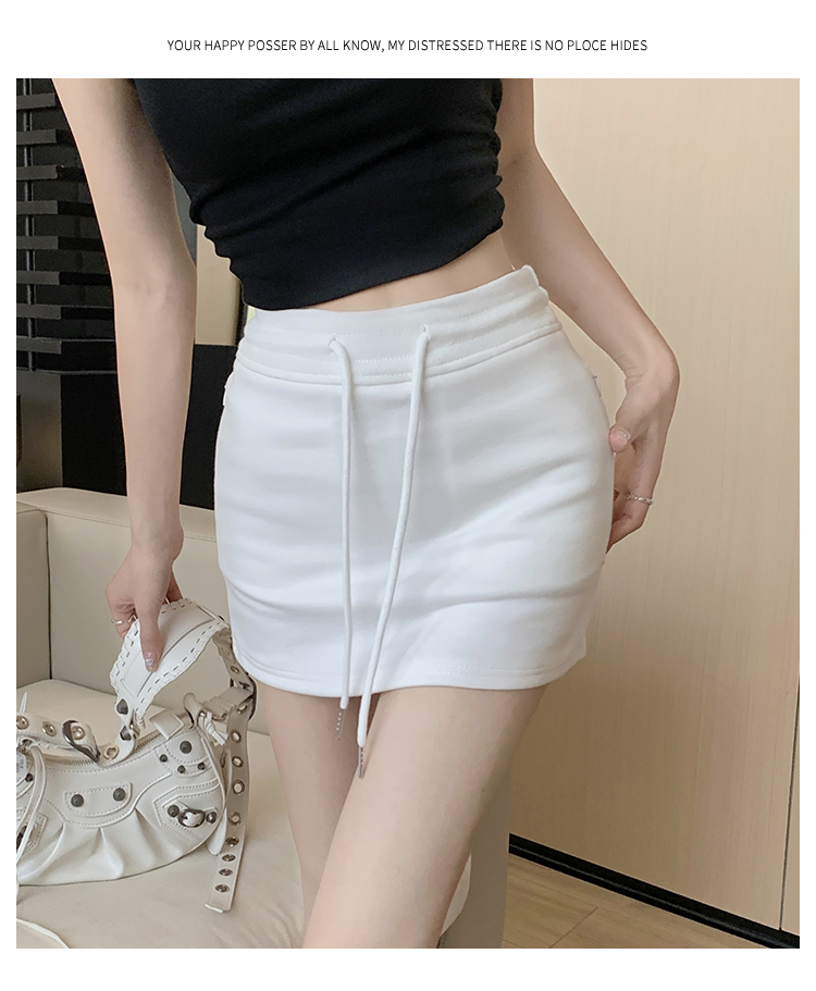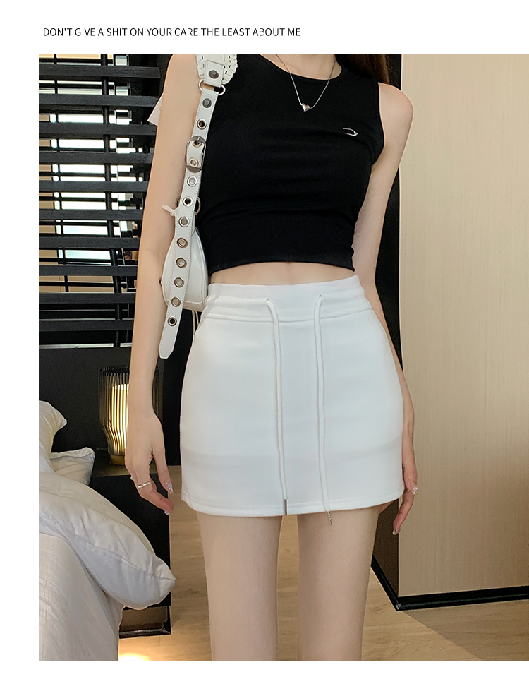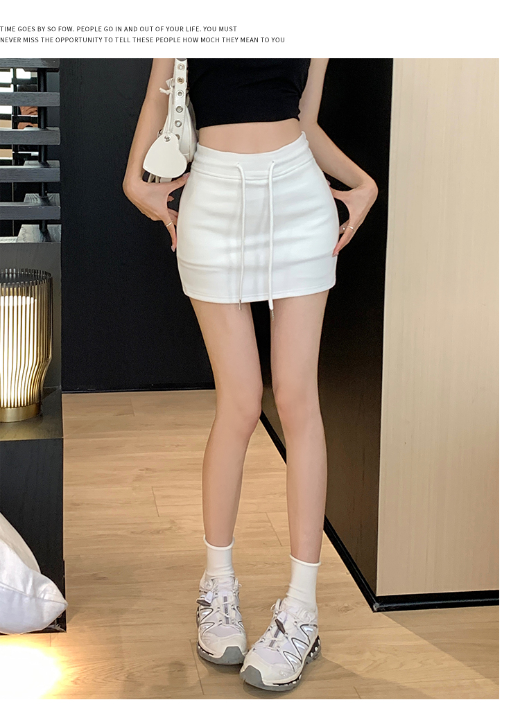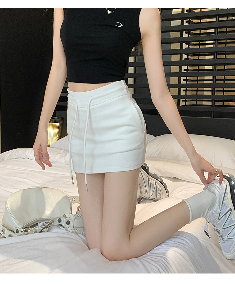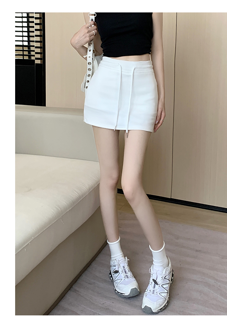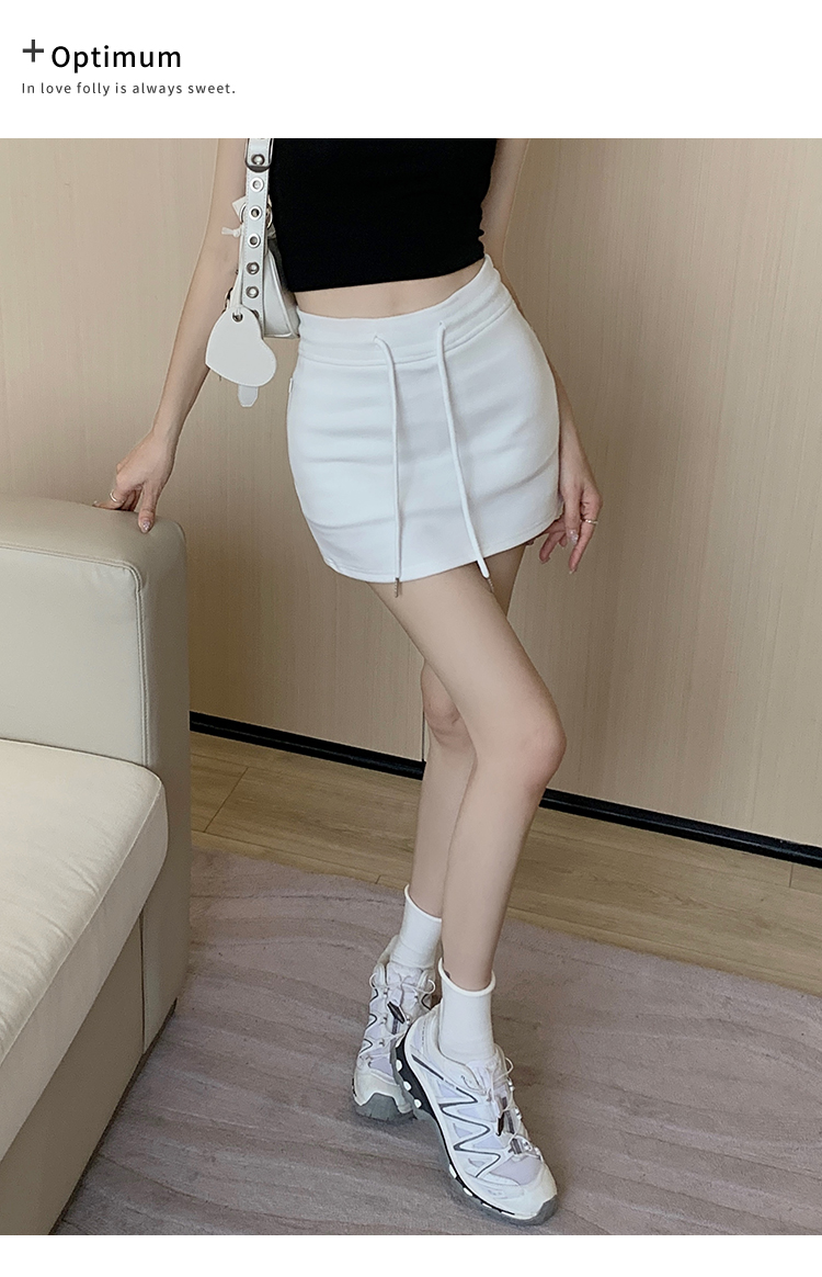 甜辣風抽繩運動白色短裙2023夏新款少女高腰百搭包臀A字半身裙秋