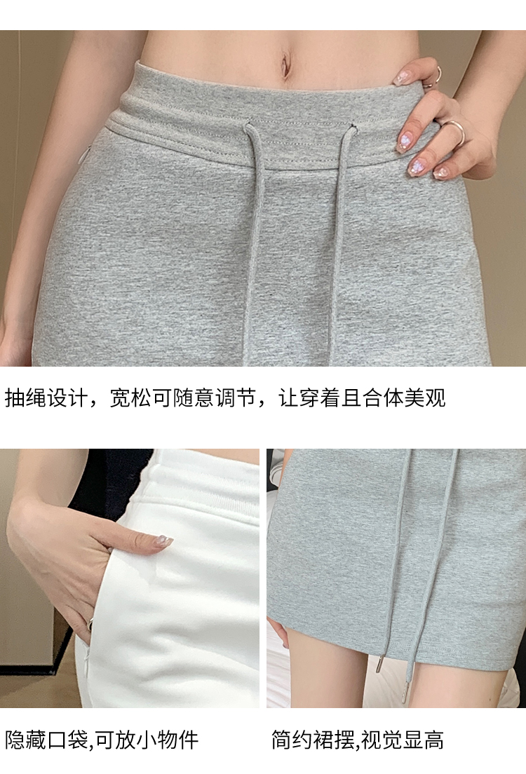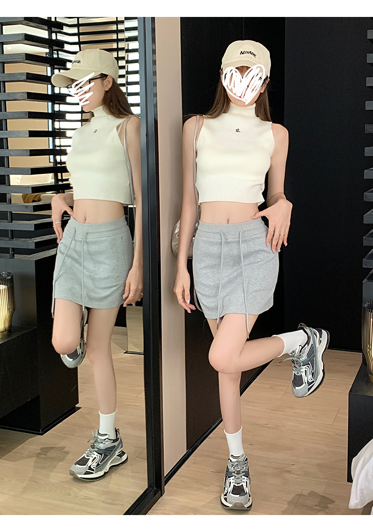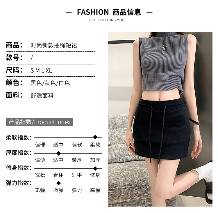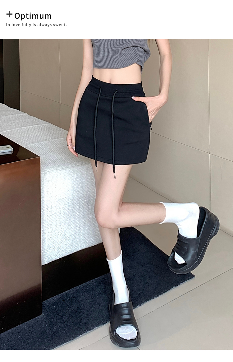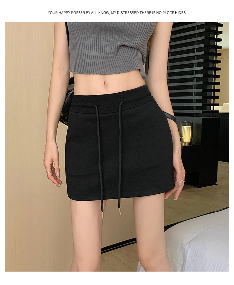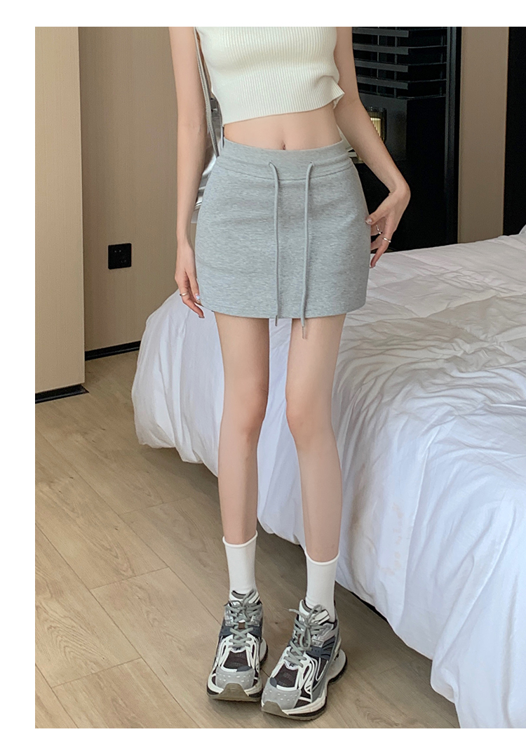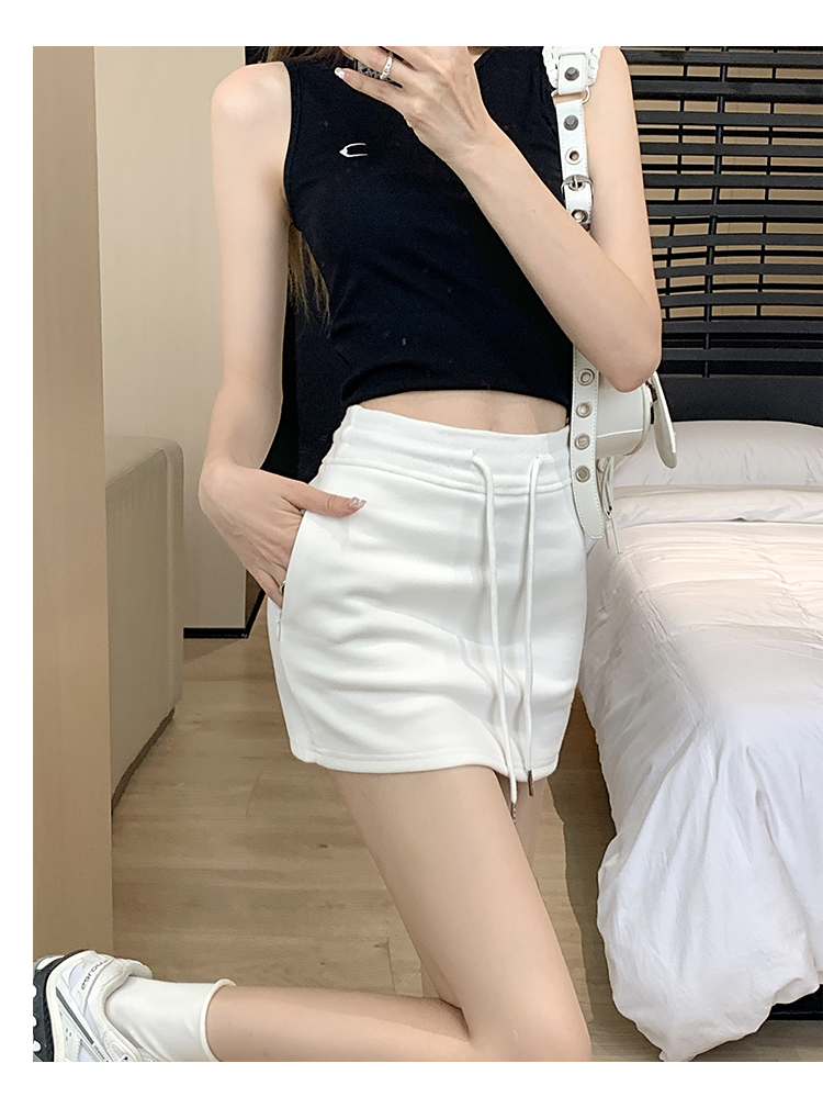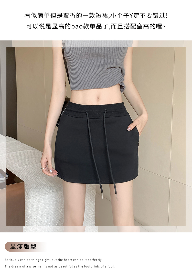 甜辣風抽繩運動白色短裙2023夏新款少女高腰百搭包臀A字半身裙秋