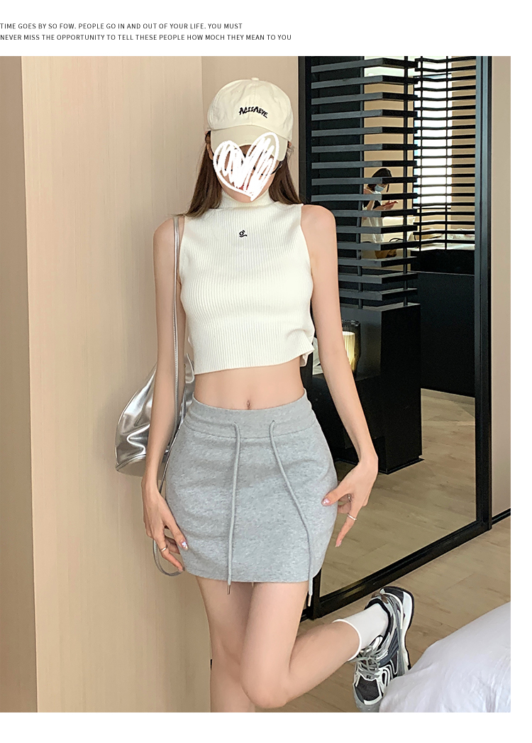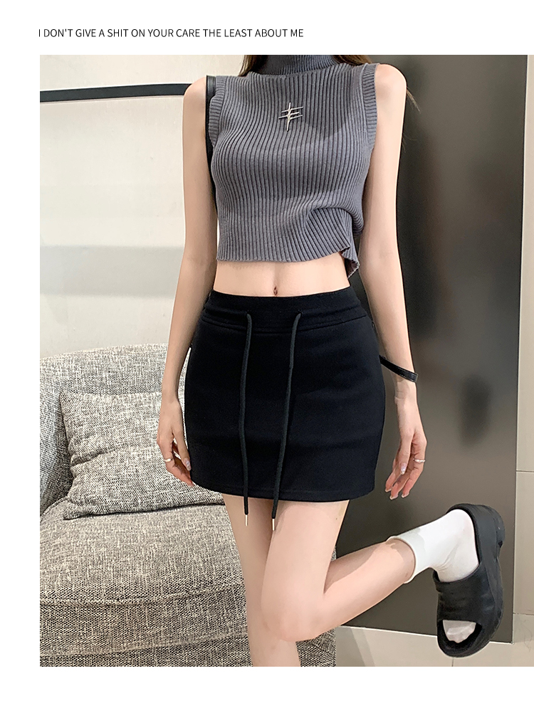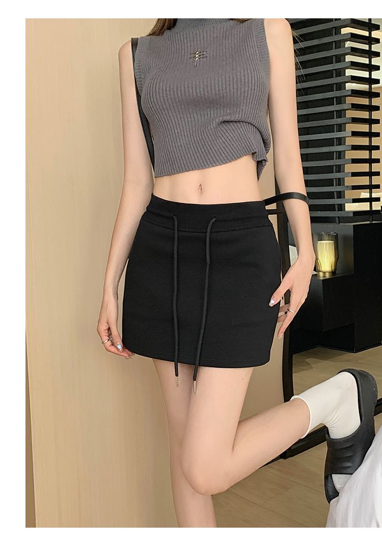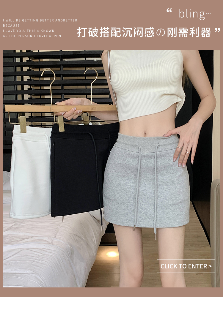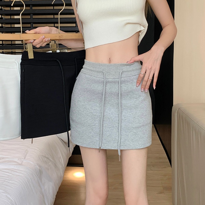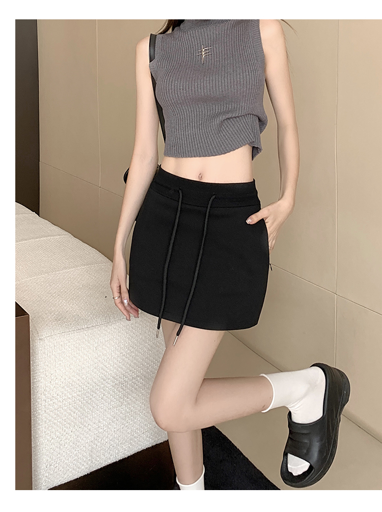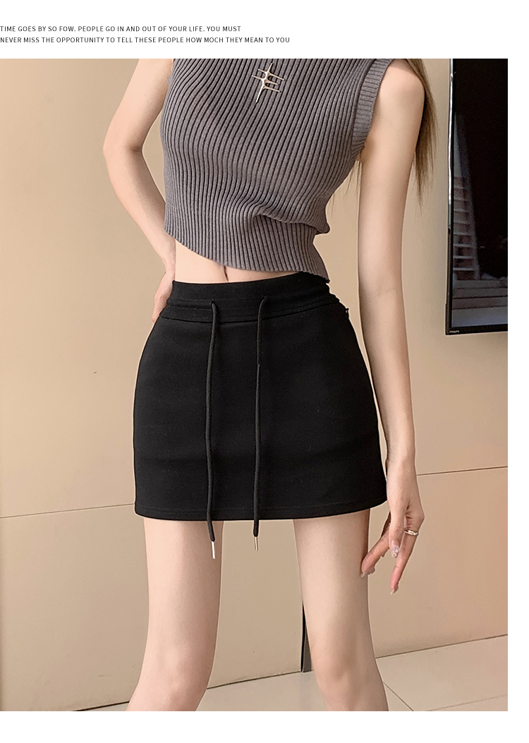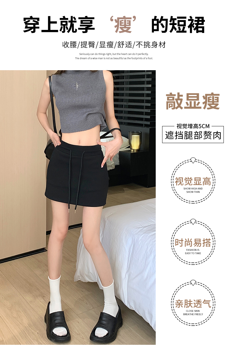 甜辣風抽繩運動白色短裙2023夏新款少女高腰百搭包臀A字半身裙秋