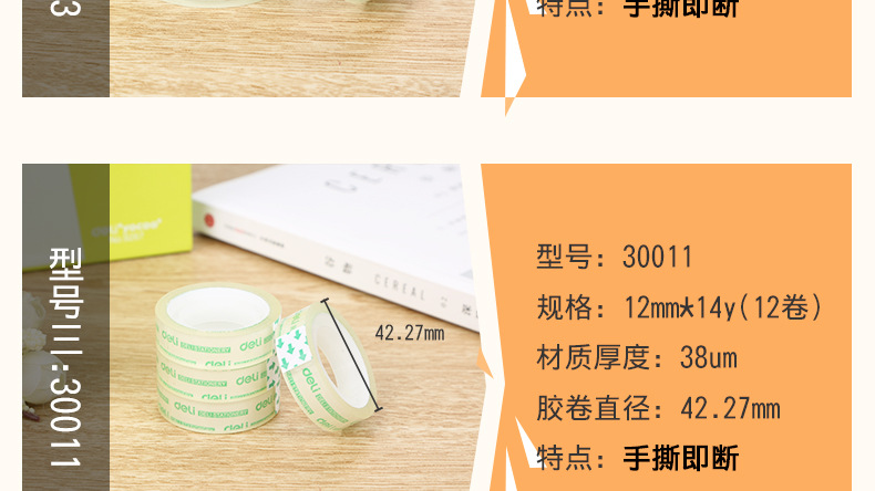 得力透明文具胶透明胶带办公小胶带粘贴小批发学生文具胶带涂改带