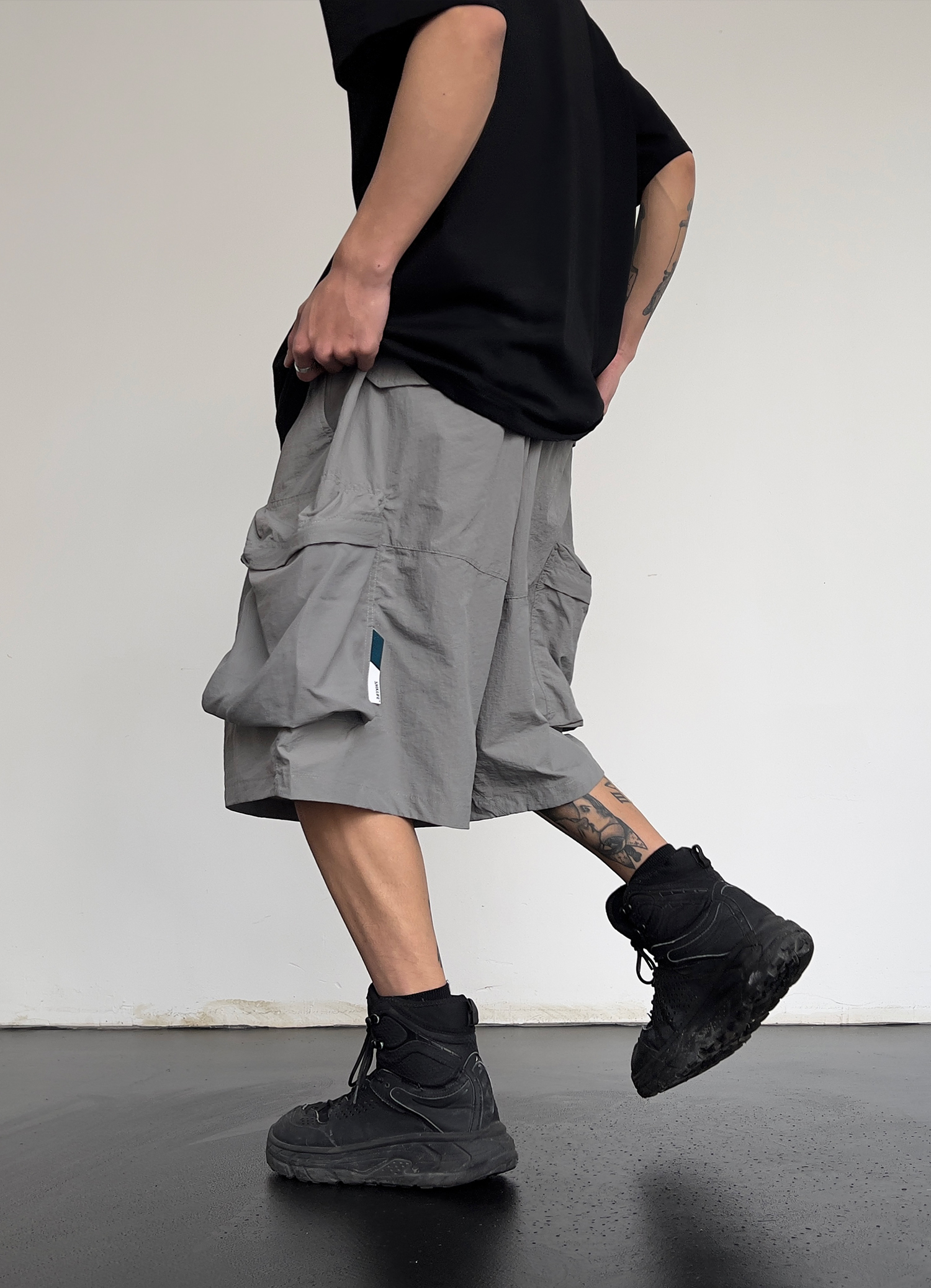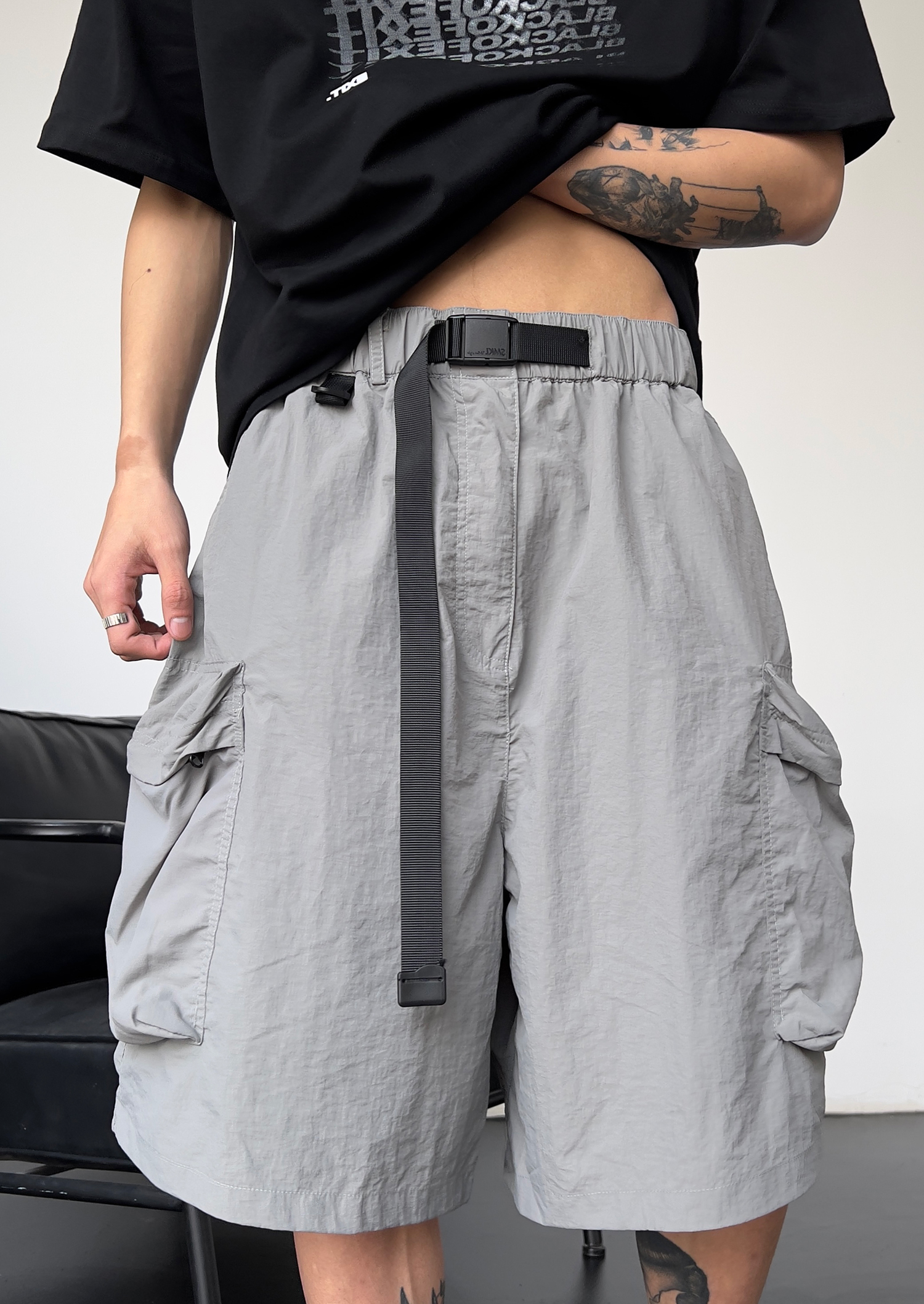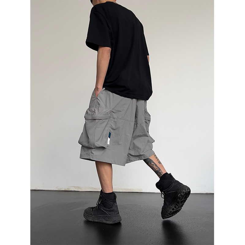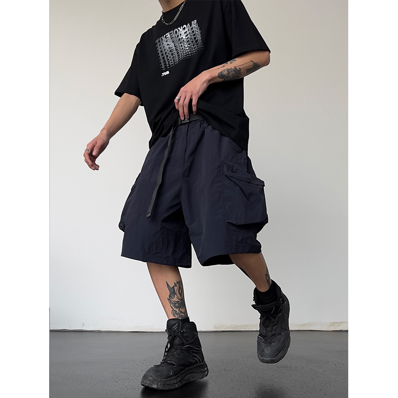 夏季新款潮牌嘻哈大口袋工裝短褲男女高腰寬鬆百搭顯瘦闊腿五分褲