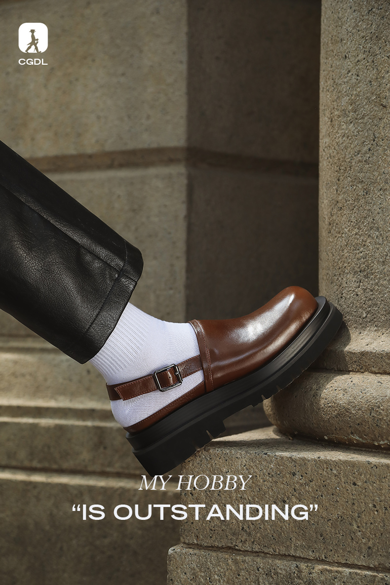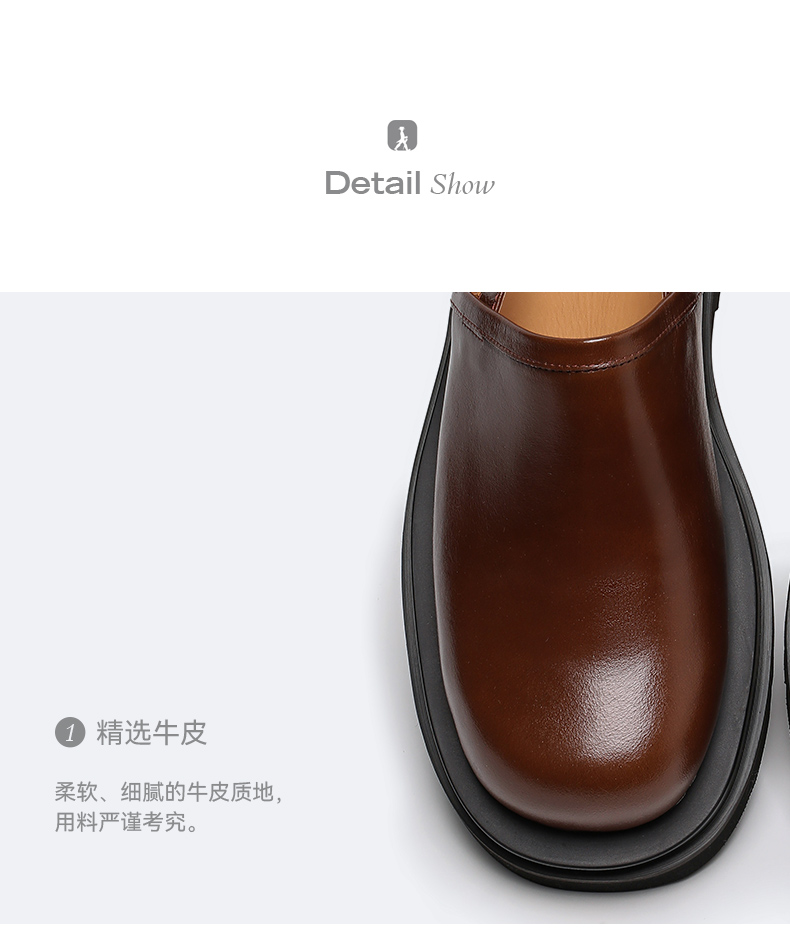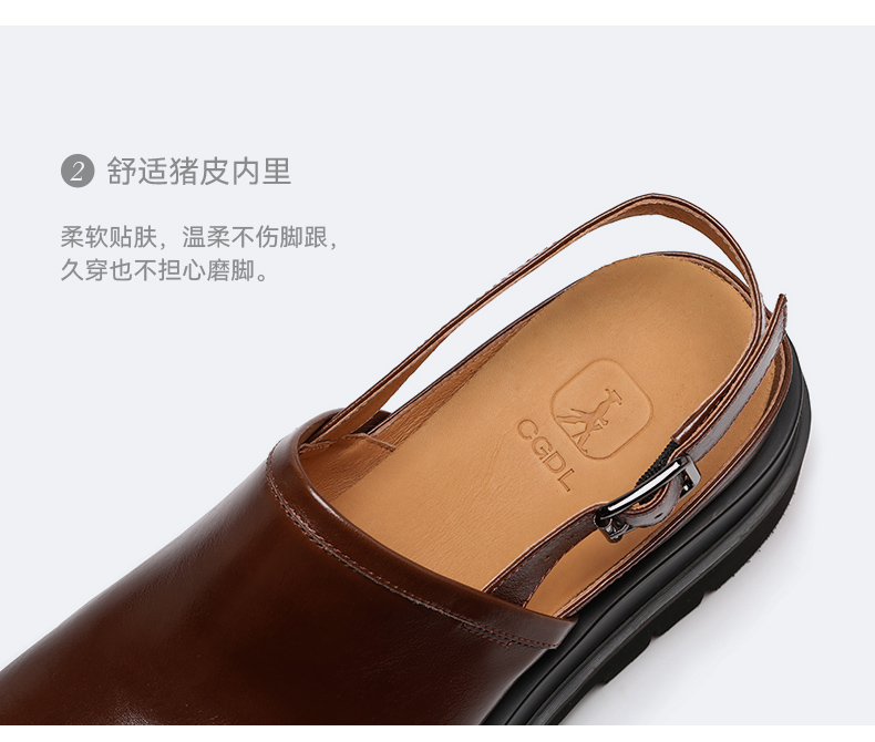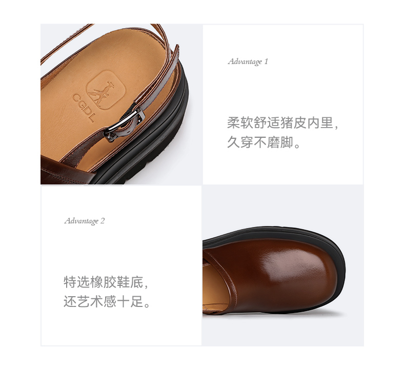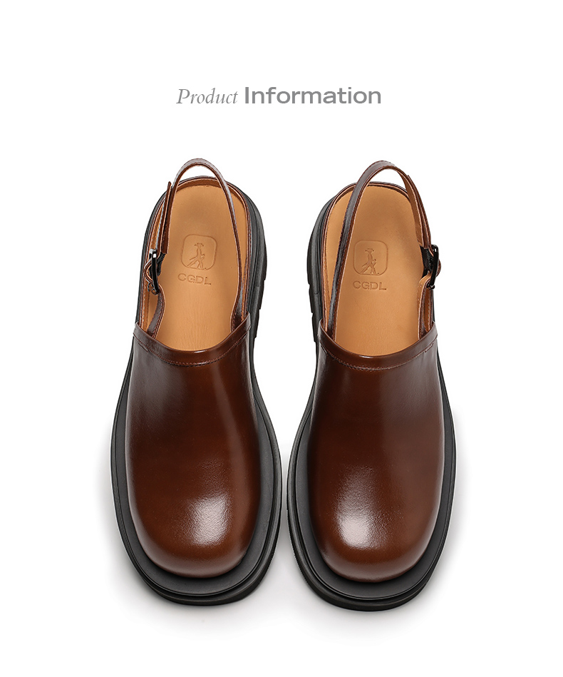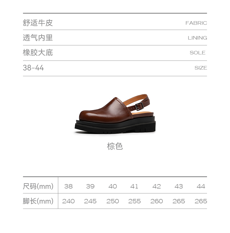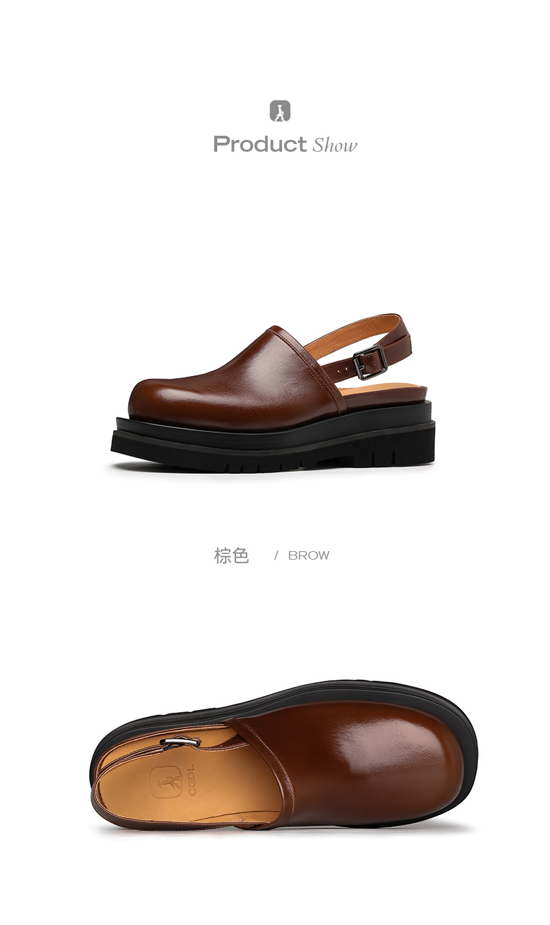 村哥迪郎原創設計個性小眾真皮包頭厚底涼鞋男夏季增高棕色涼皮鞋