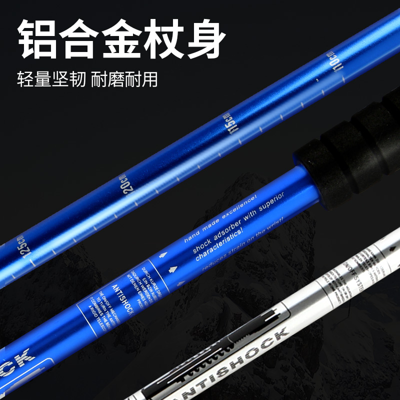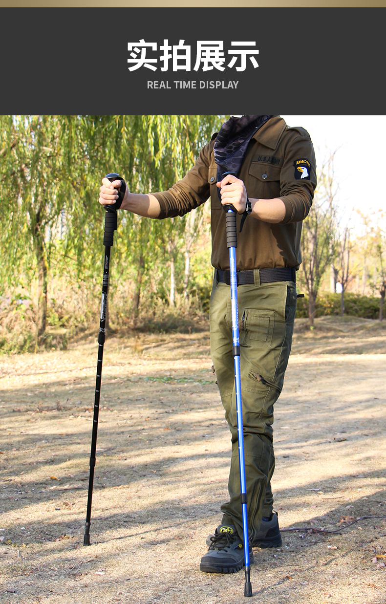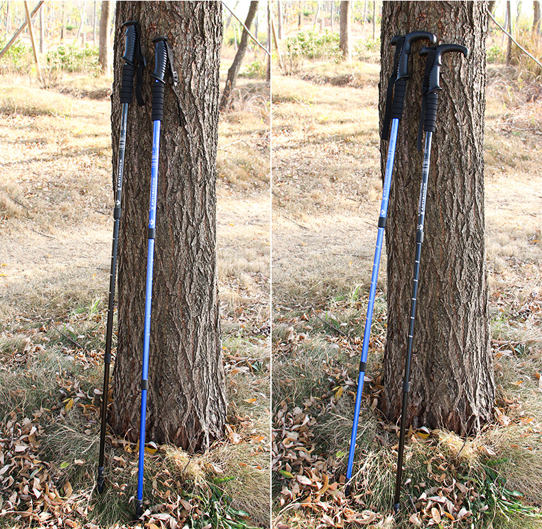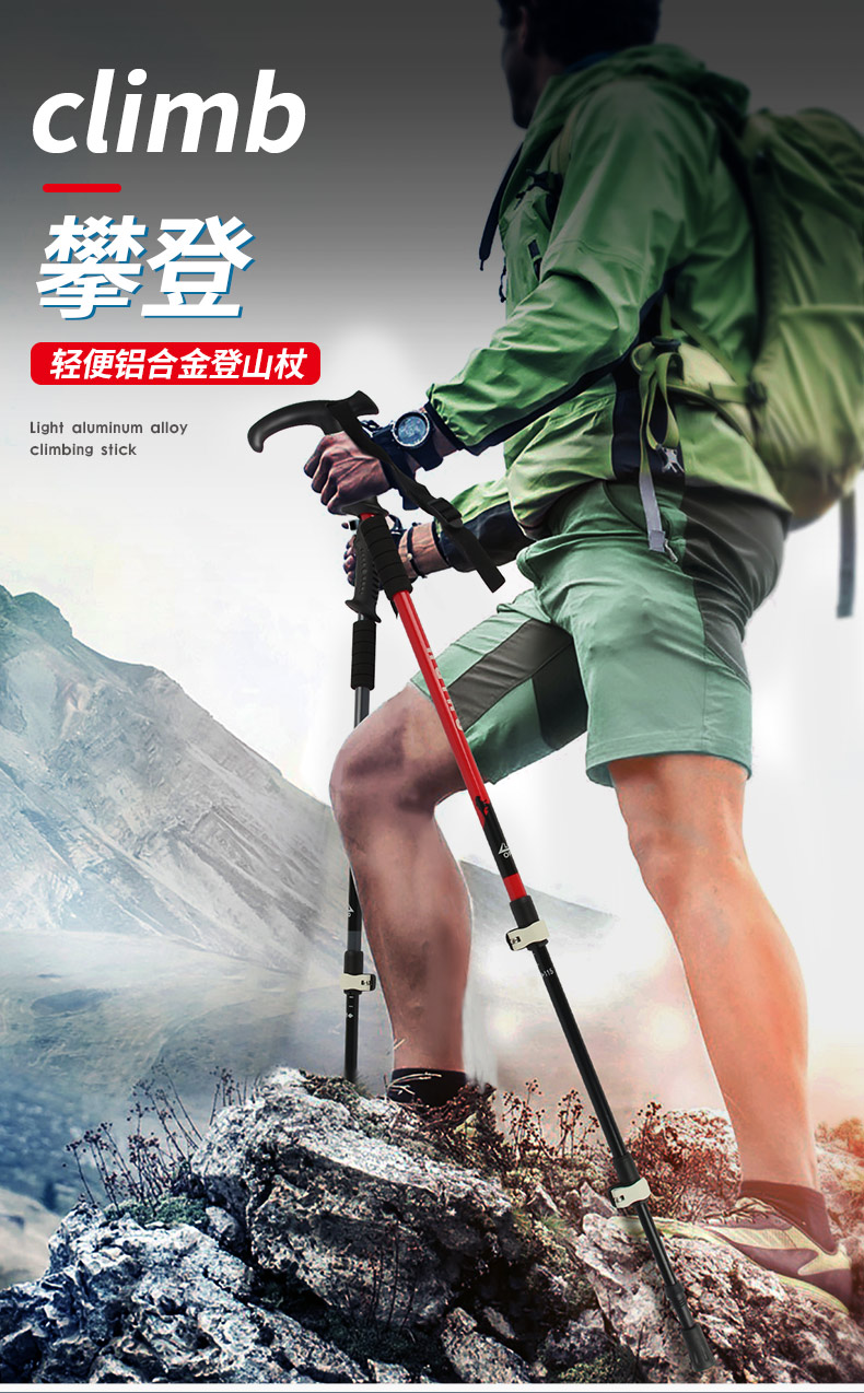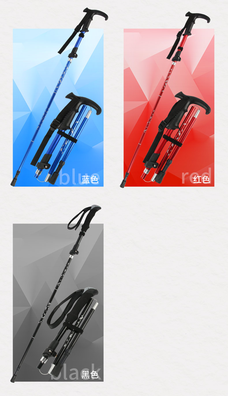 多功能戶外登山杖超輕三節鋁合金柺杖伸縮杖摺疊旅遊爬山徒步裝備
