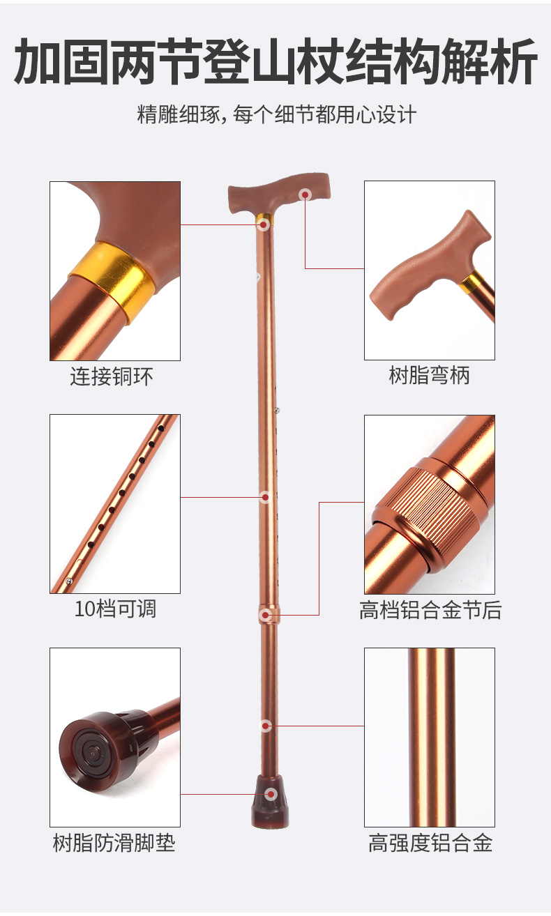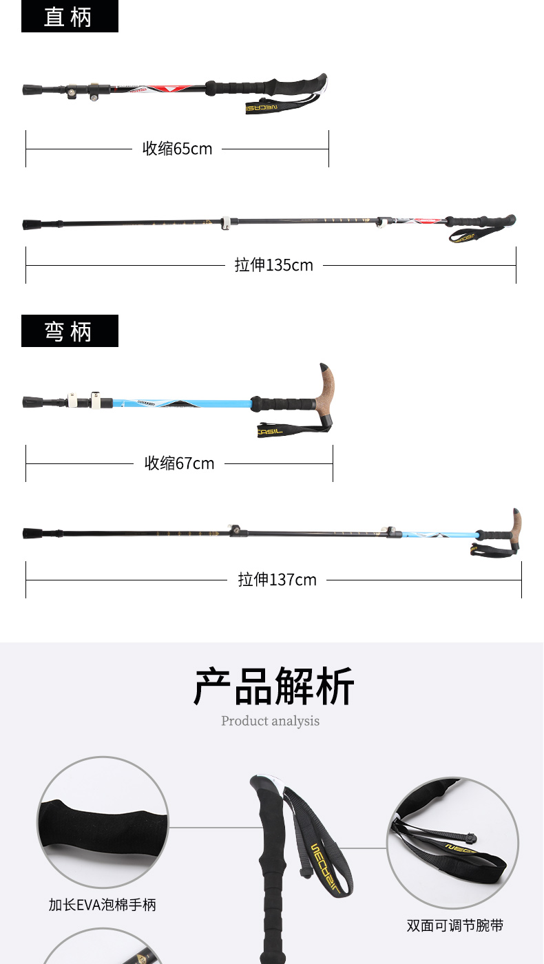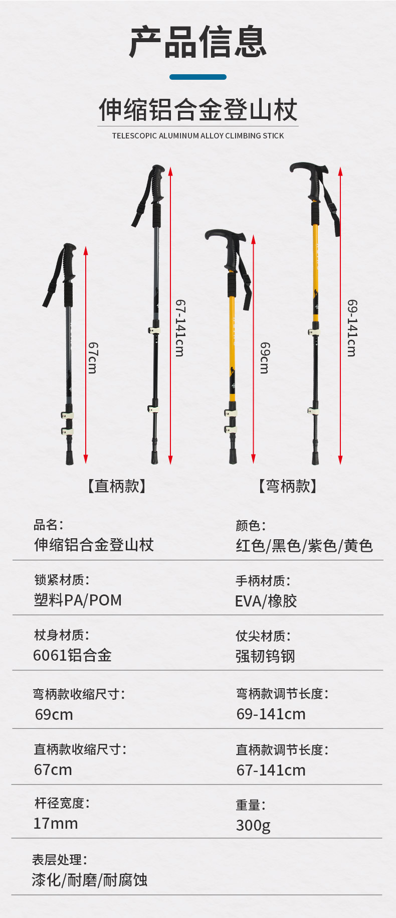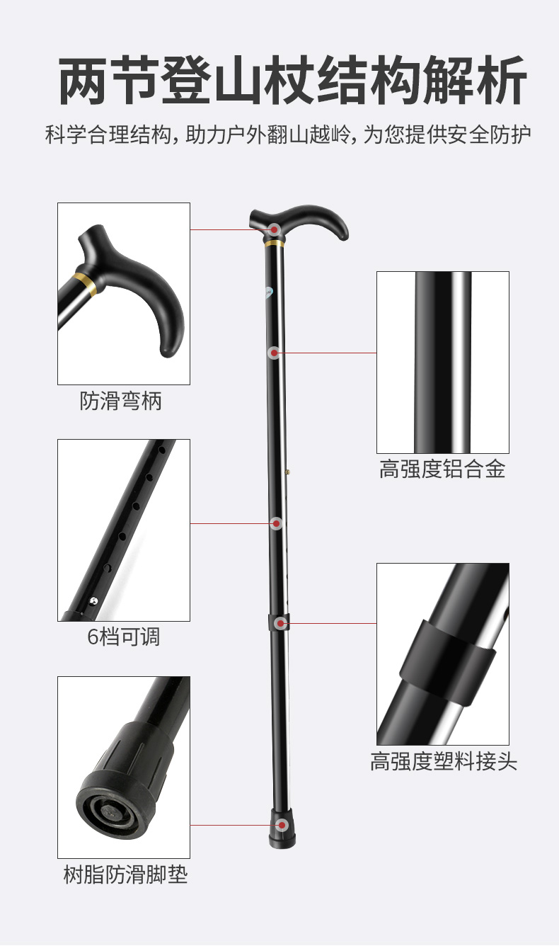 多功能戶外登山杖超輕三節鋁合金柺杖伸縮杖摺疊旅遊爬山徒步裝備