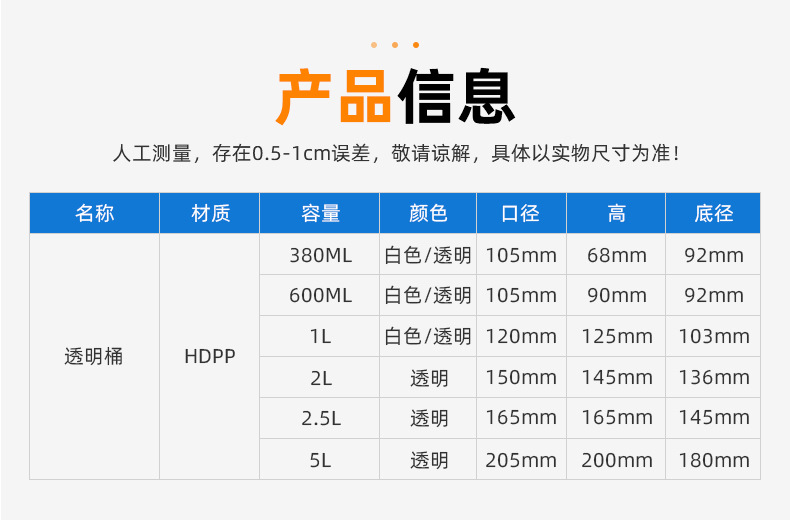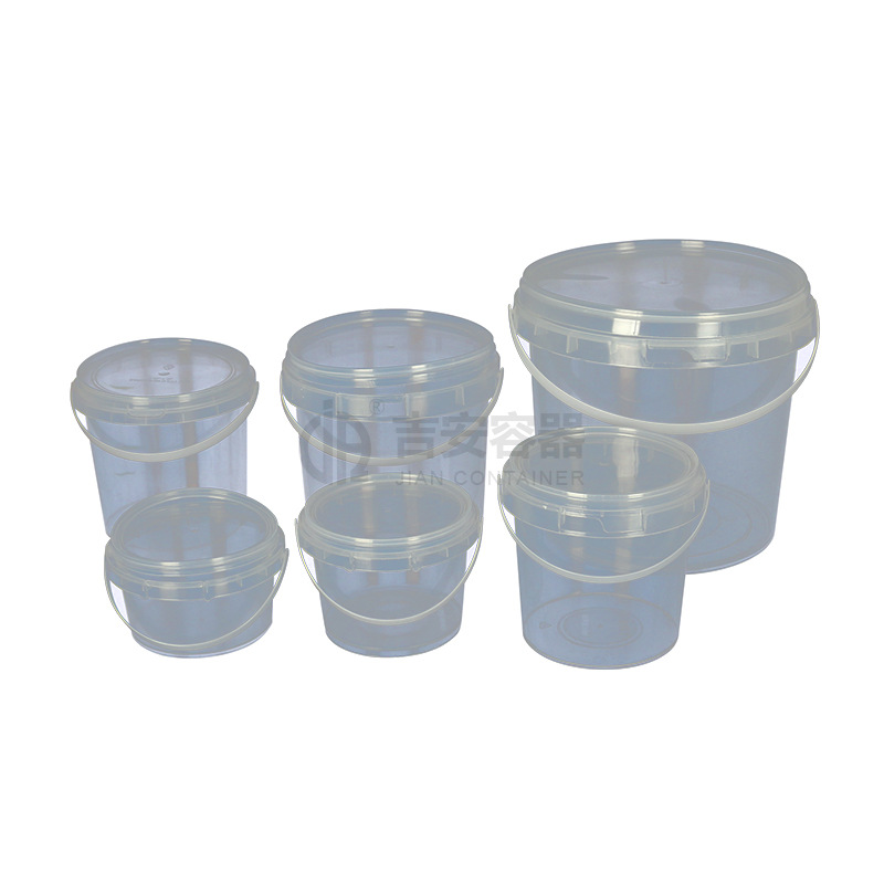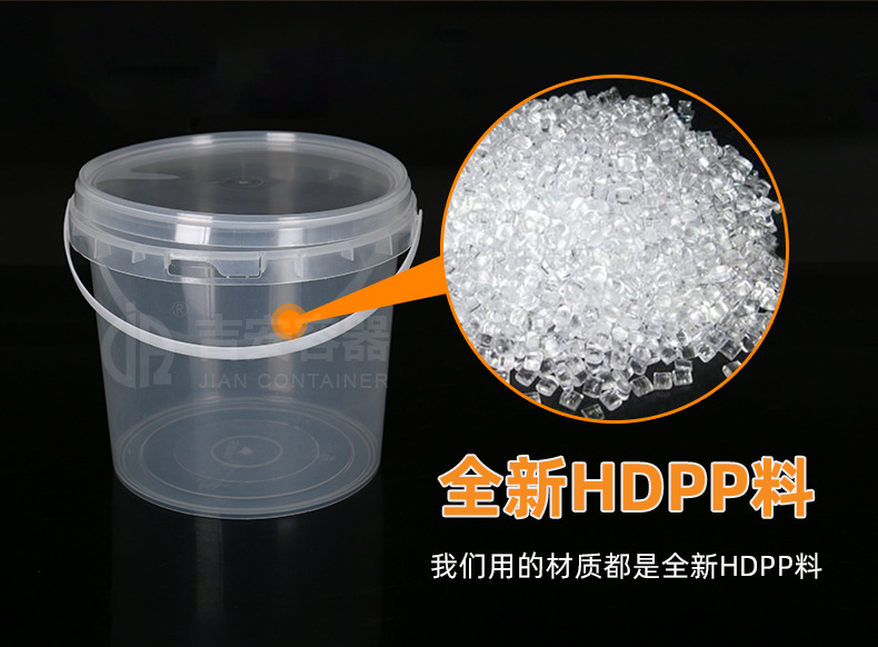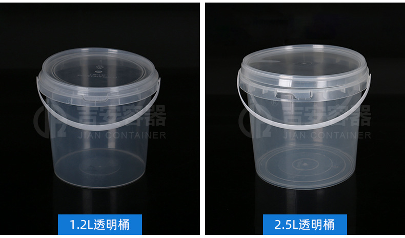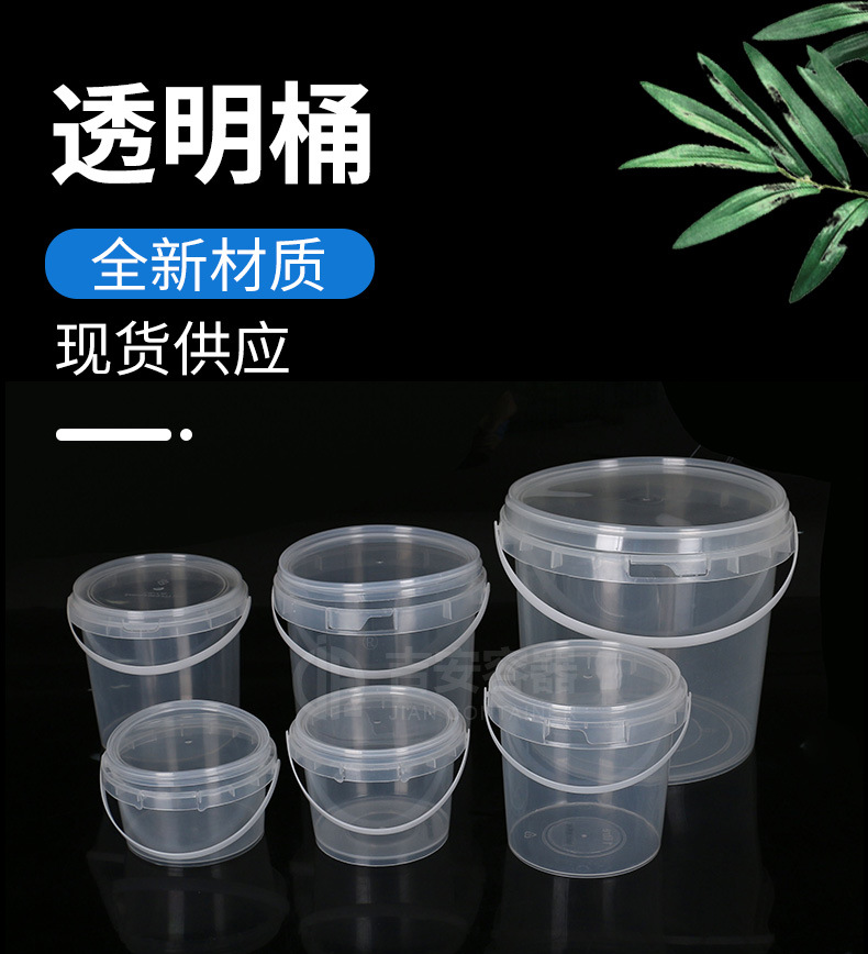 PP料透明塑料圆桶380/600ml 1L 2L 5L密封收纳食品桶储物桶手提