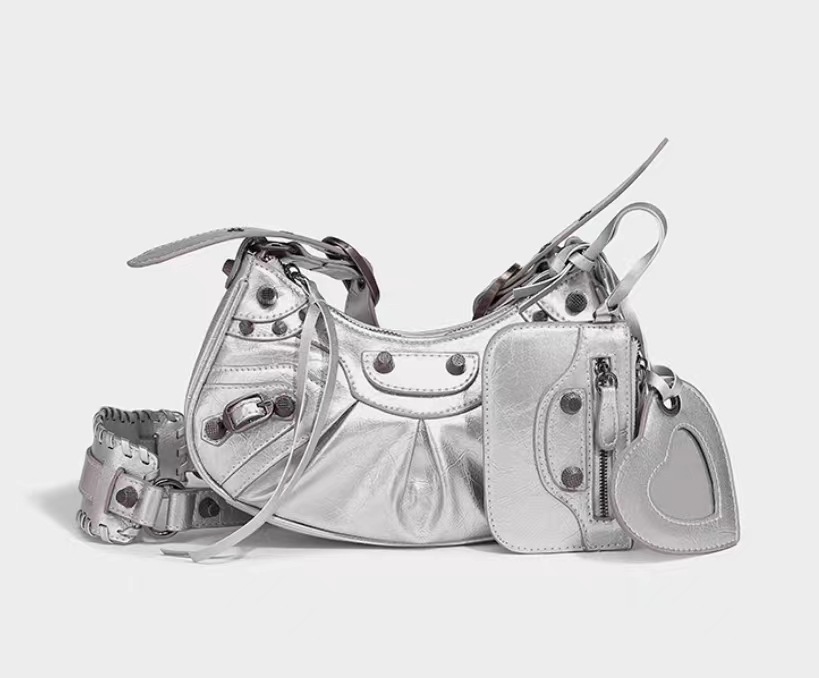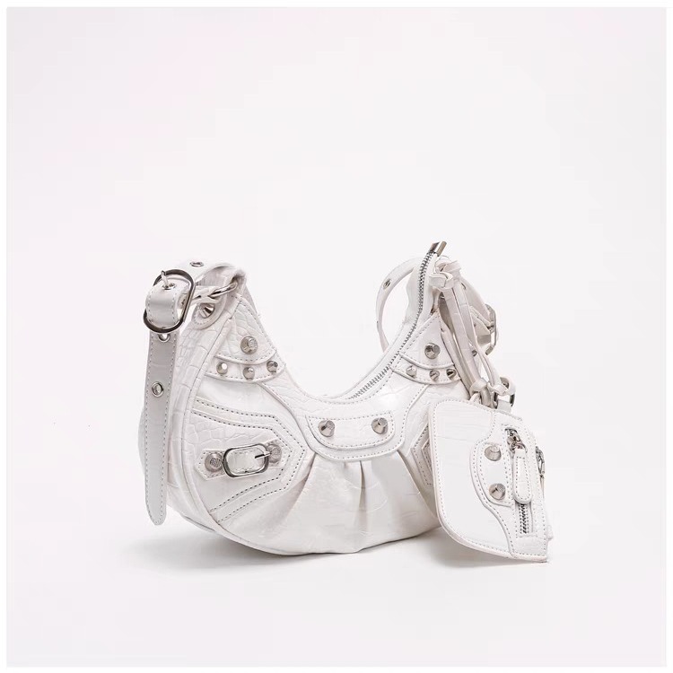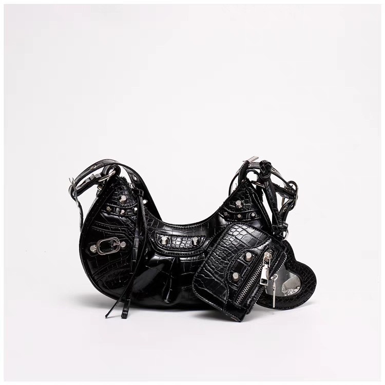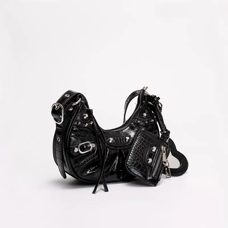 女包2024新款机车包腋下包辣妹包铆钉流苏三合一褶皱包单肩斜挎包