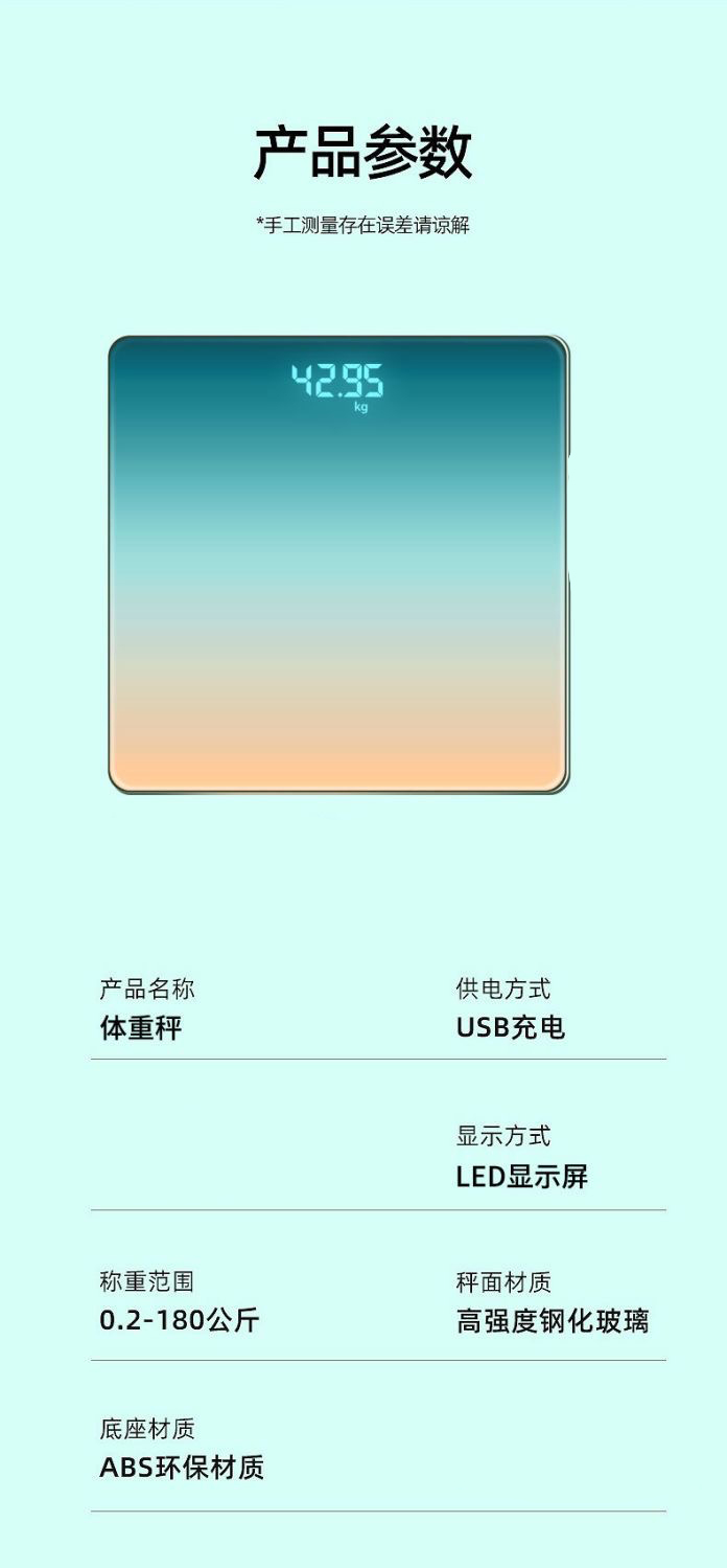 渐变体重秤高度智能家用小型人体宿舍称重计款电子称续