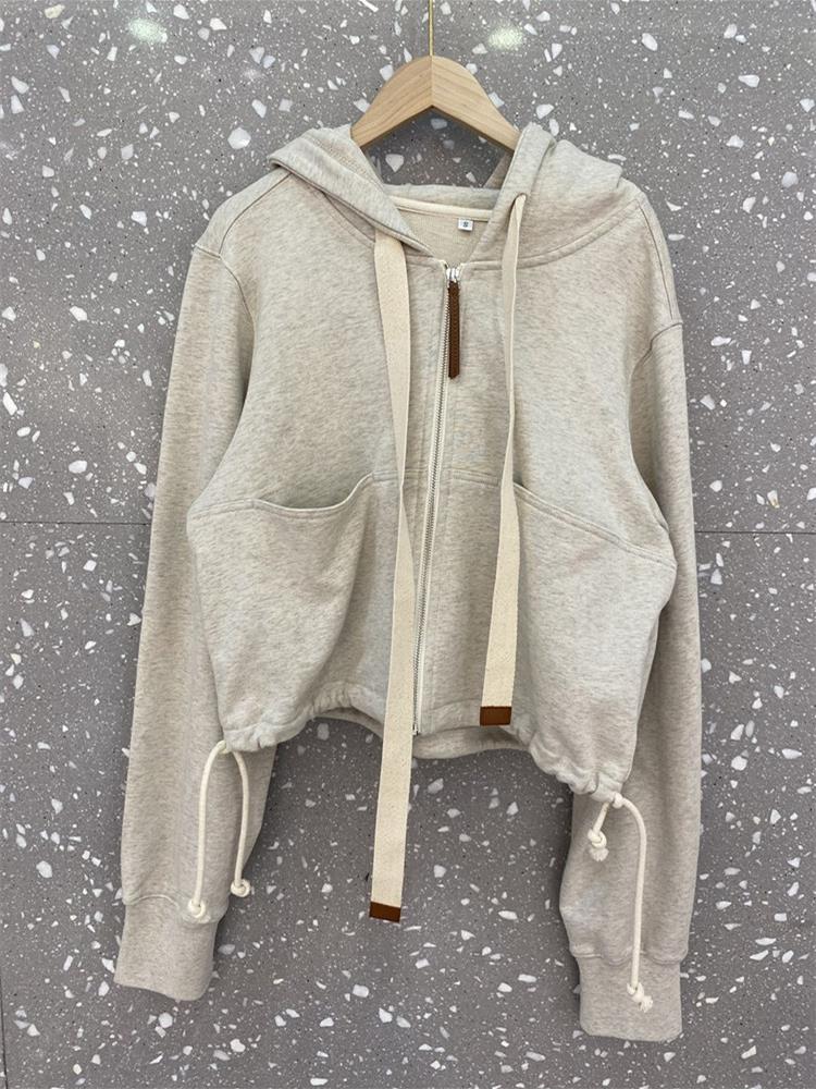 品牌折扣撤柜外贸出口尾单小众气质早秋连帽空气棉显瘦卫衣外套女
