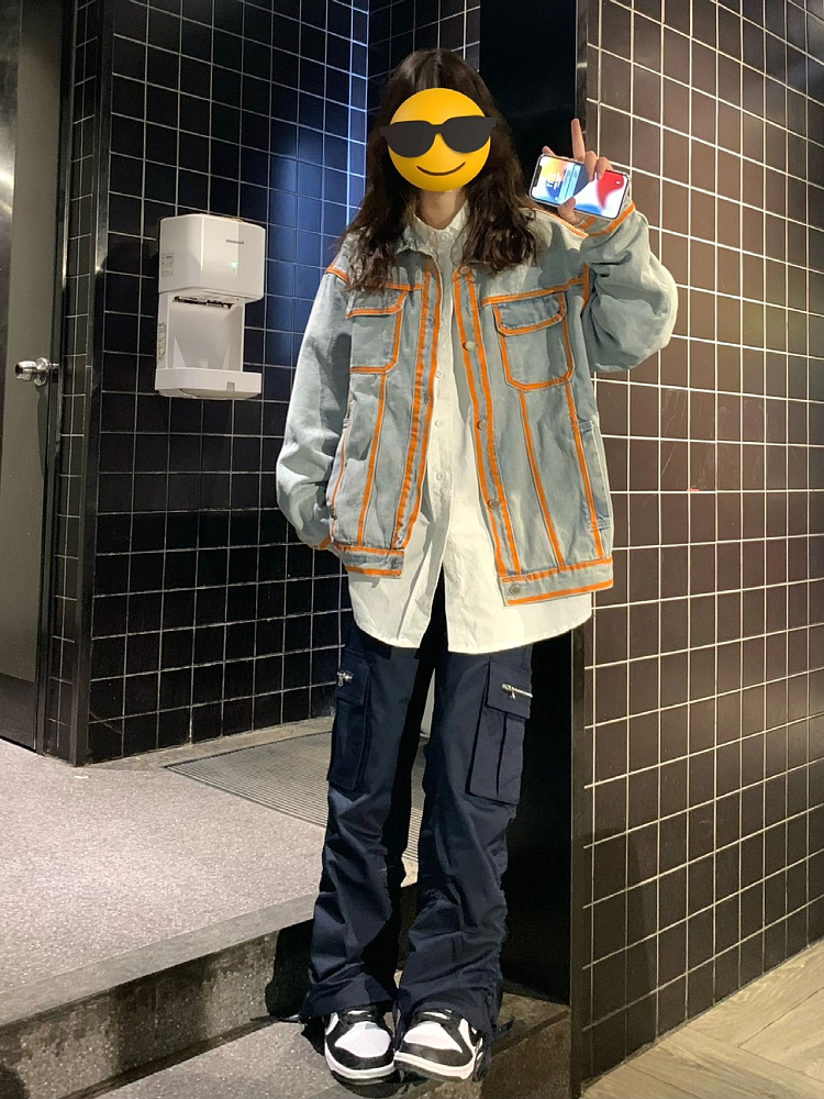 大尺碼牛仔外套女早秋新款高街設計感美式復古百搭ins寬鬆顯瘦夾克