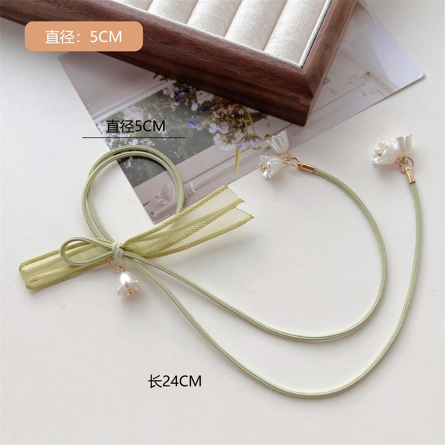 颜色 1#绿色铃兰花发绳,2#米白色蝴蝶结铃兰花发圈,3棕色蝴蝶结铃兰花发圈,4#米白色铃兰花大肠发圈,5#绿色铃兰花大肠发圈,6#蓝色铃兰花大肠发圈,1#铃兰花短款,2#铃兰花长款,1#花朵珍珠流苏发圈-白色花,2#花朵珍珠流苏发圈-橘色花,3#花朵珍珠流苏发圈-绿色花