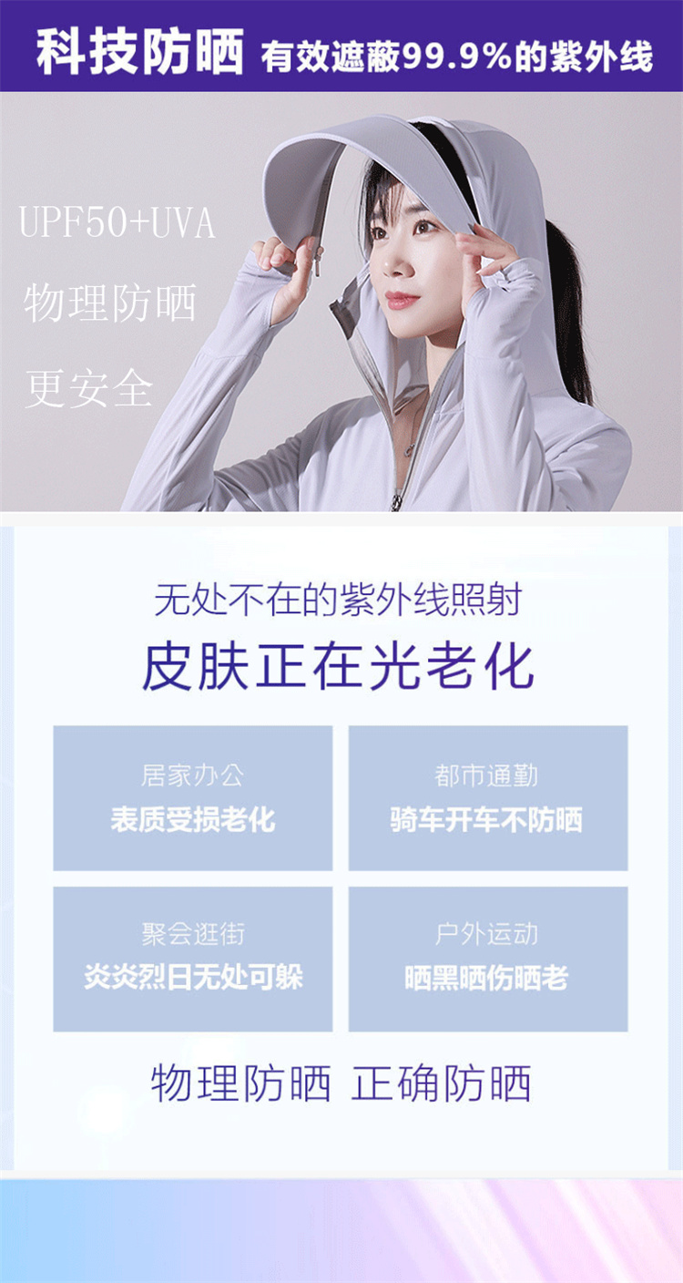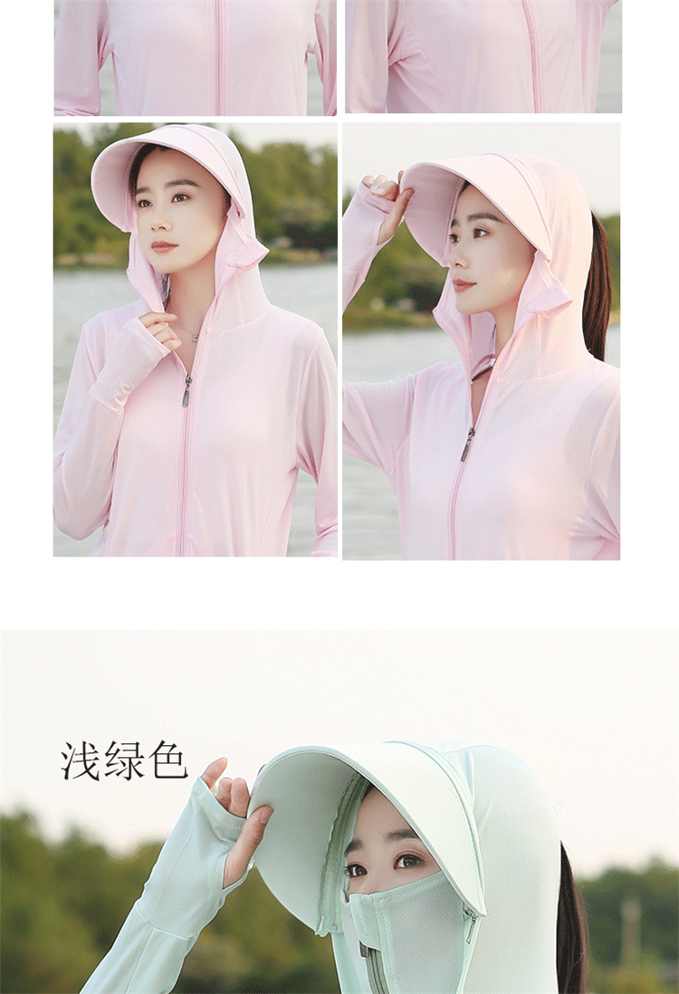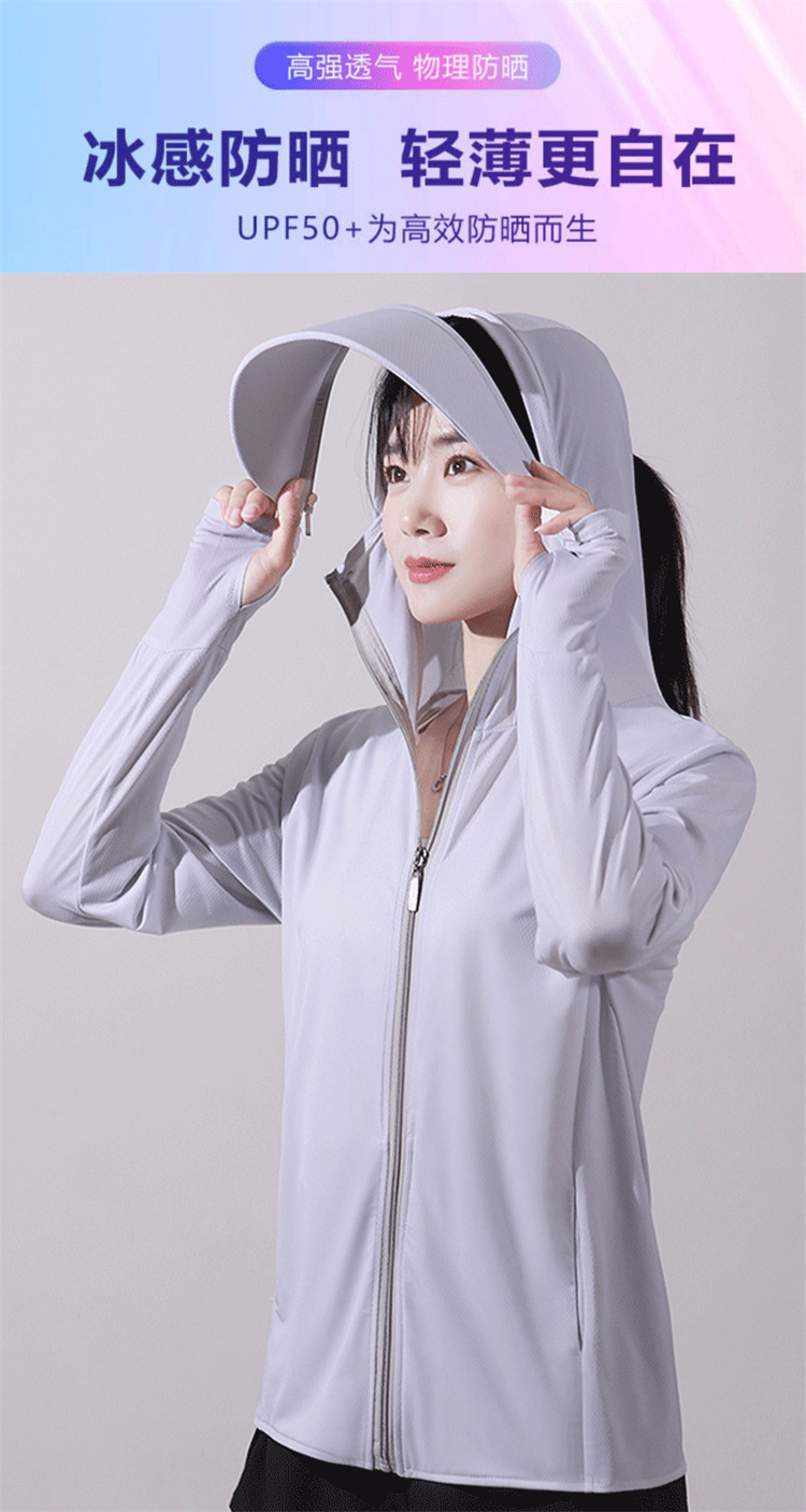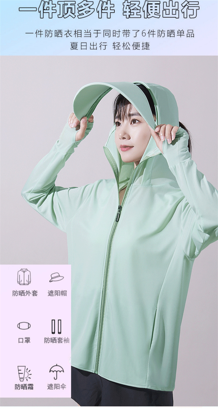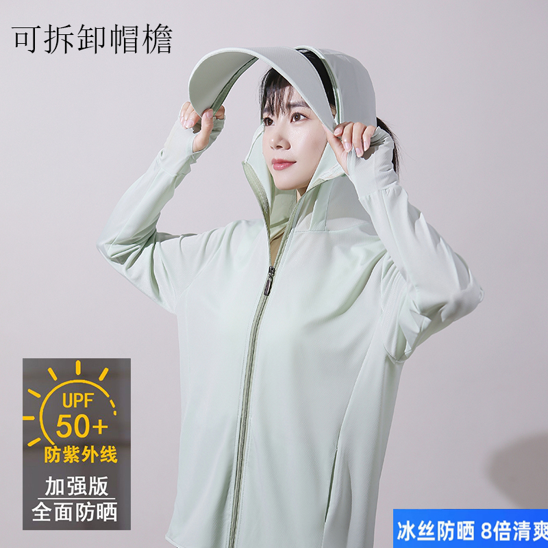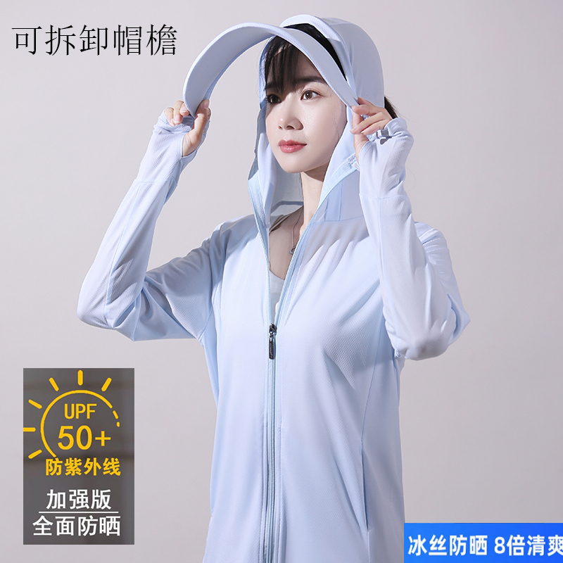 冰絲防曬衣女士夏季新款薄抗UV可拆卸帽簷防曬服短款連帽戶外