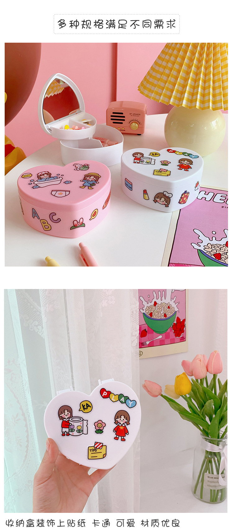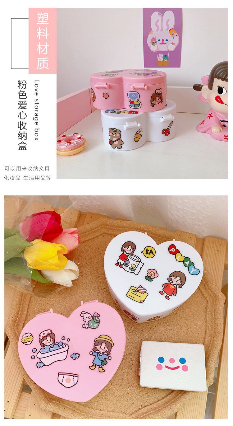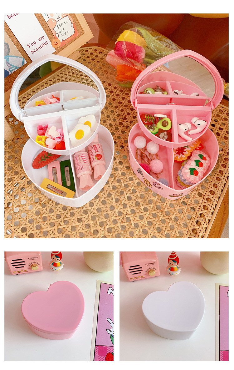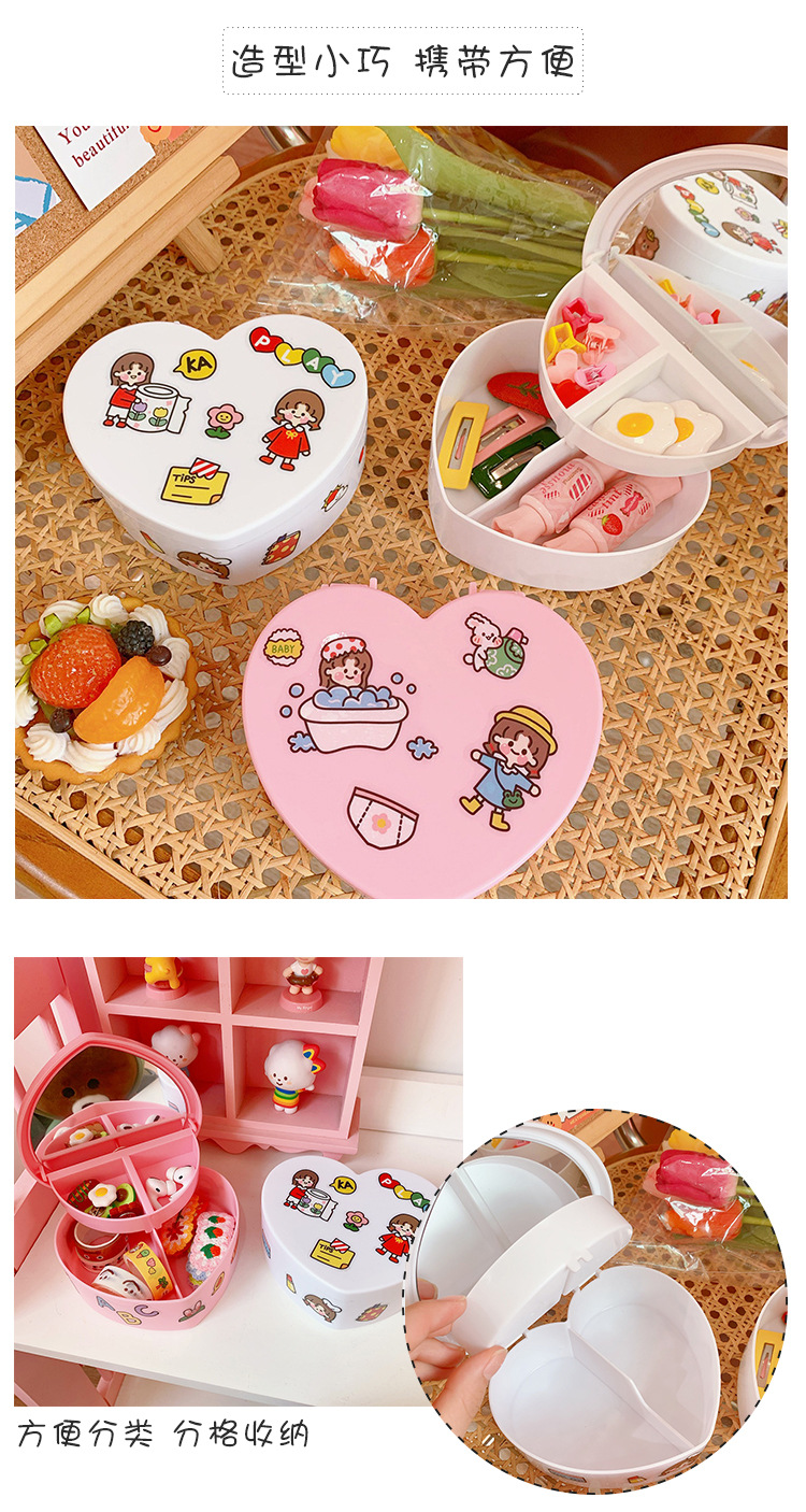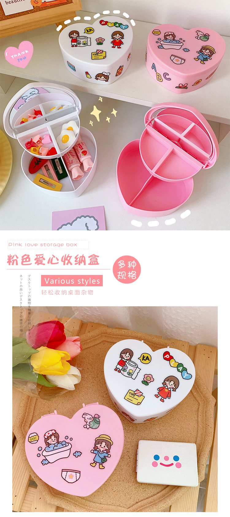 粉色少女心收纳盒饰品桌面首饰盒学生宿舍爱心收纳盒双层置物盒