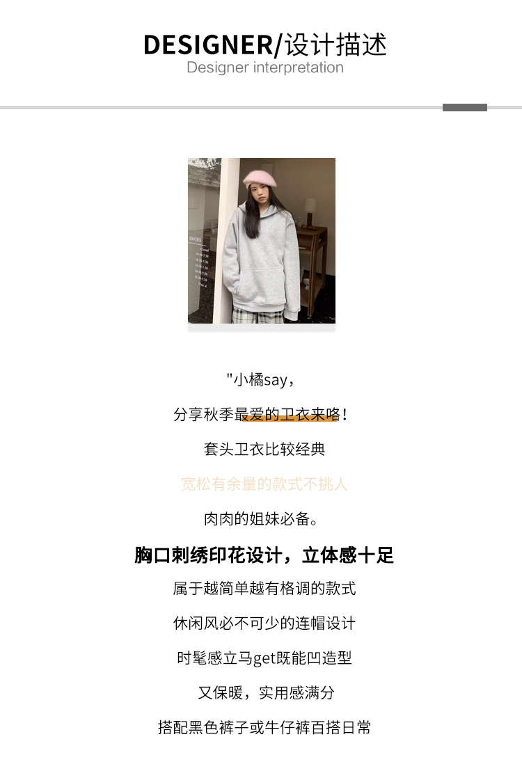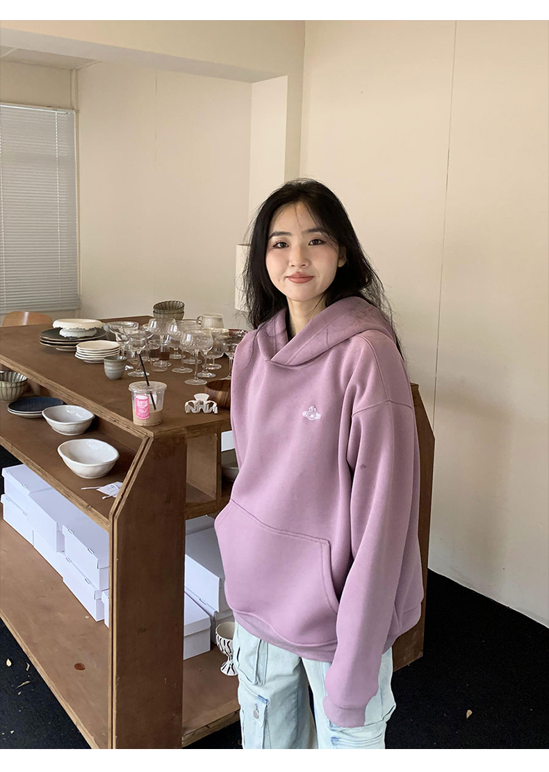 橘子樹在哪兒重磅基礎款土星連帽運動衫女春秋韓版簡約寬鬆百搭帽衫