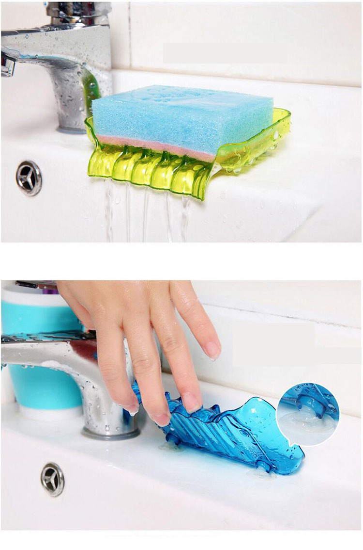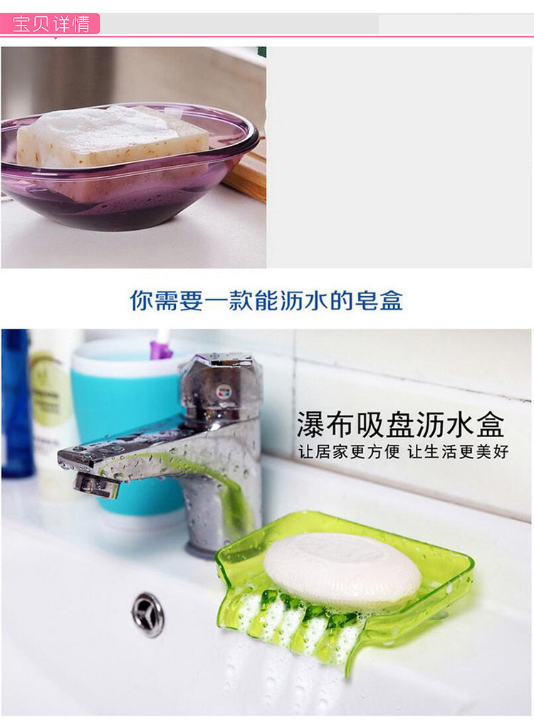 炫彩吸盘排水肥皂盒 糖果色瀑布皂盒 沥水收纳盒浴室水槽香皂盒