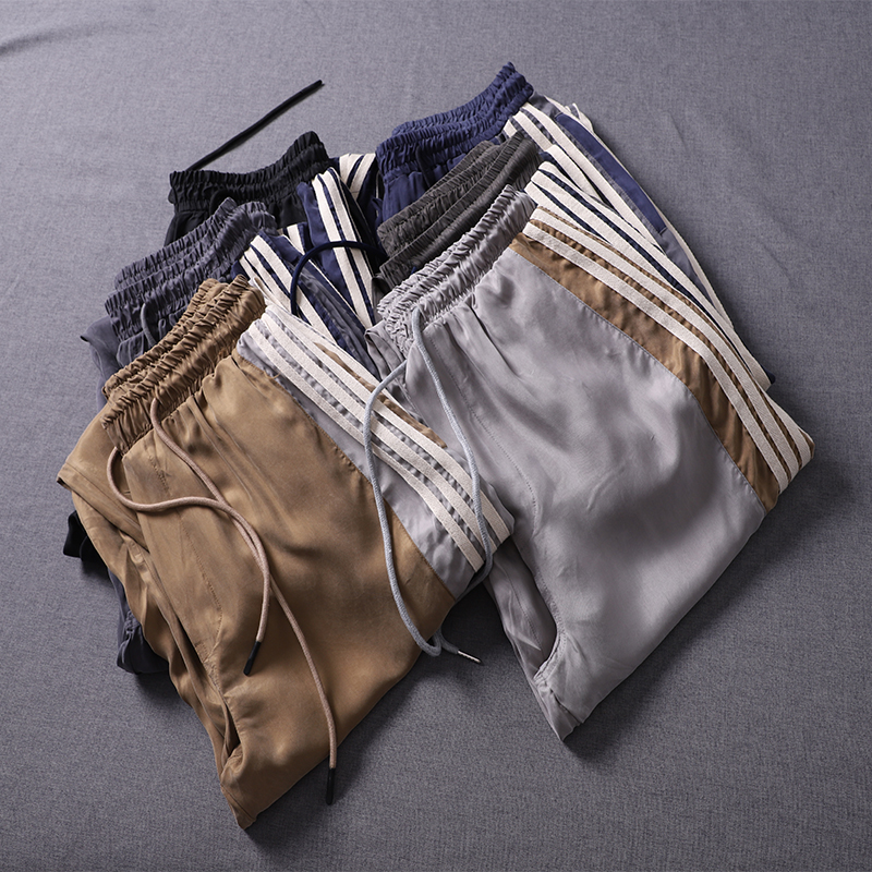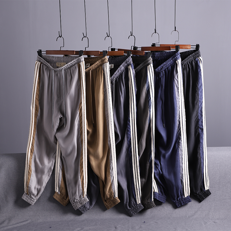 銅氨絲!輕薄柔順~男裝外貿流行復古鬆緊寬鬆休閒褲運動束口衛褲