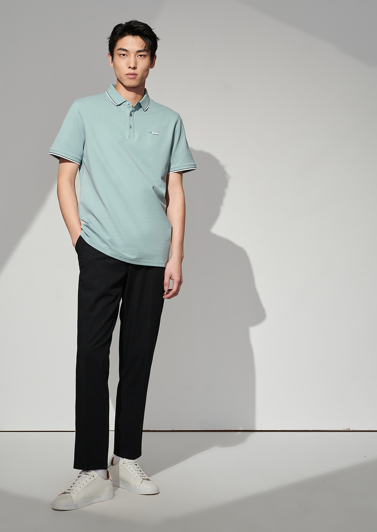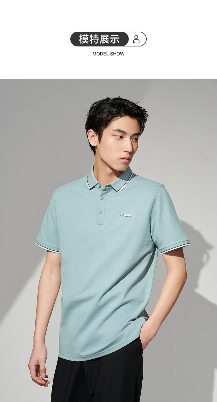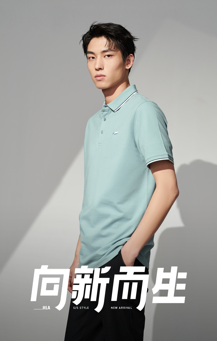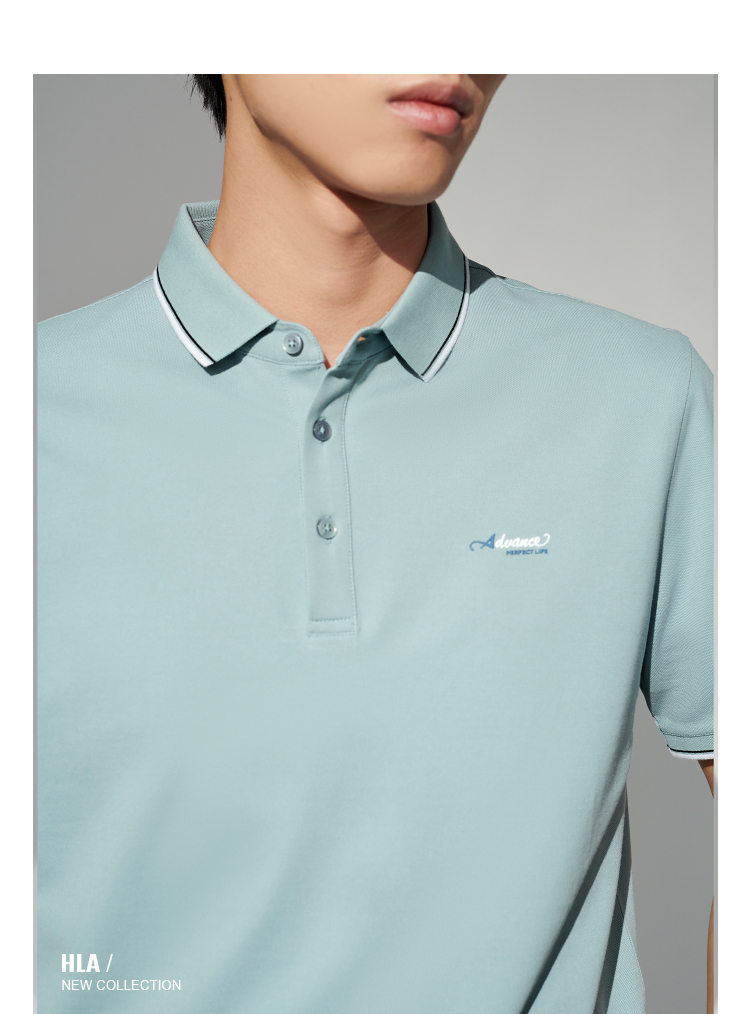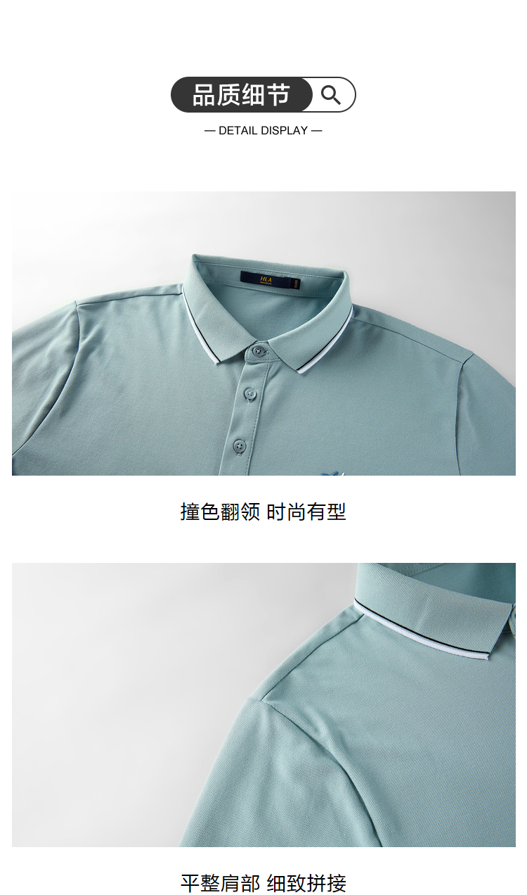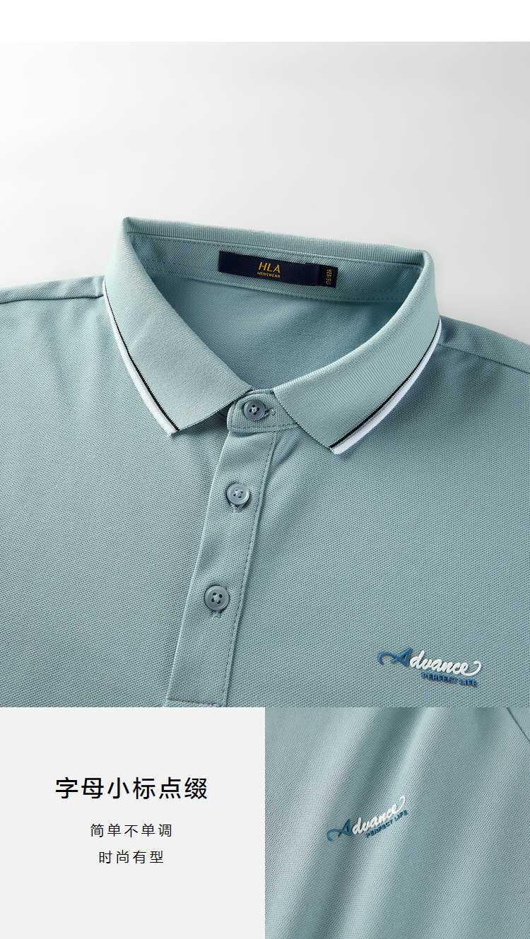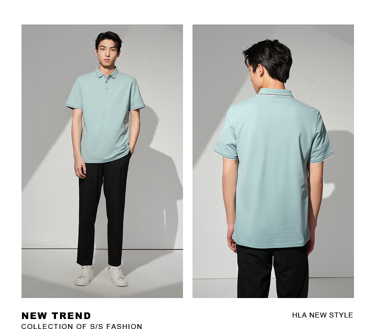 HLA/海瀾之家冰爽棉POLO衫2023春夏新款透氣涼感撞色領邊短袖男
