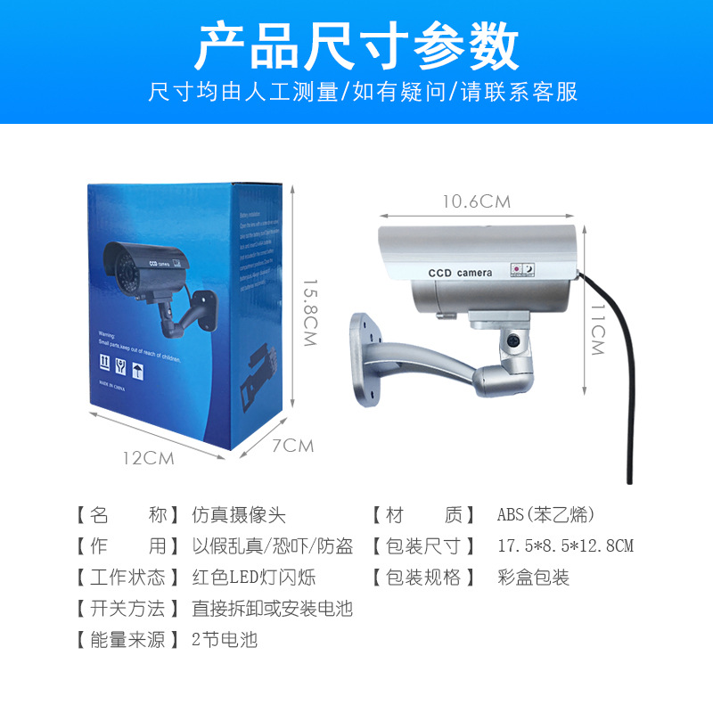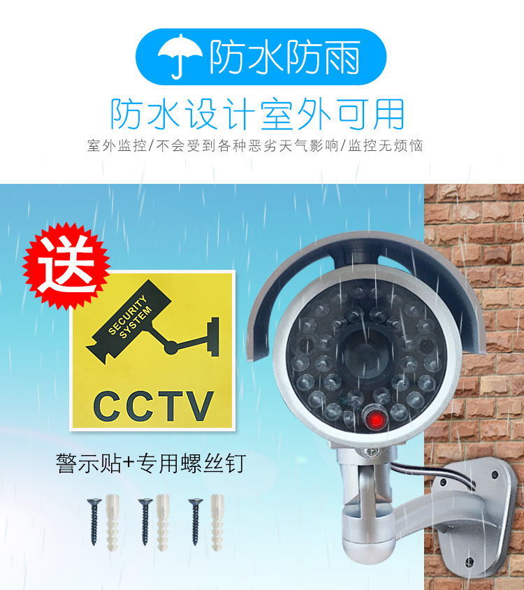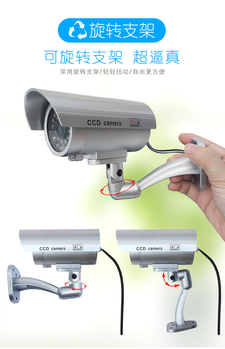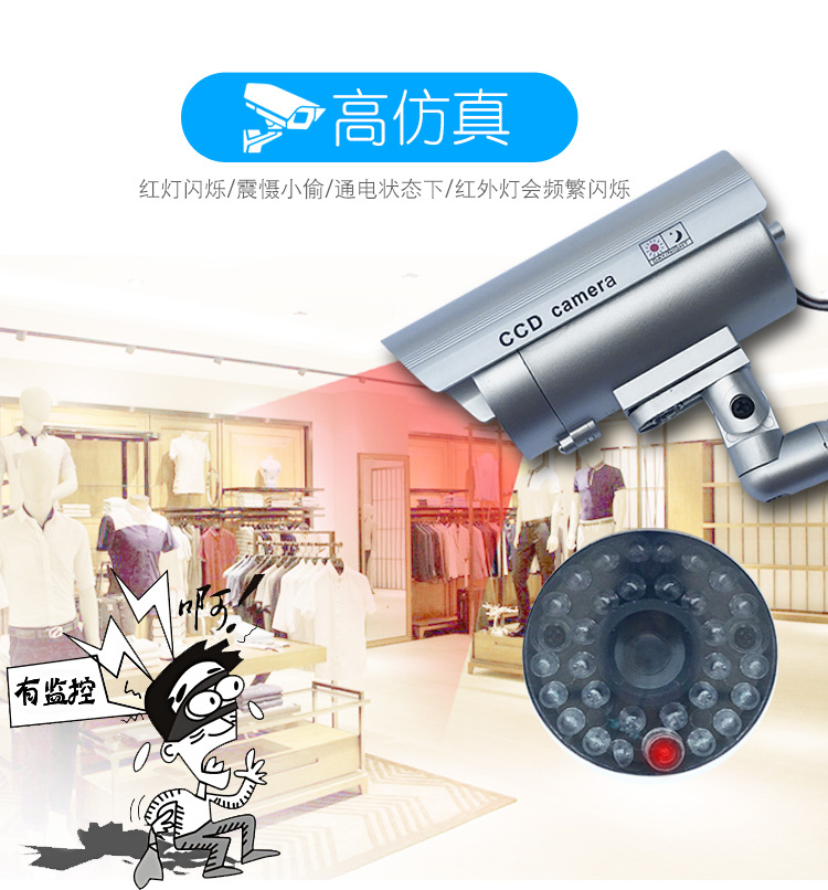 产品用途和作用:在商场超市、酒店旅馆、停车场、图书馆、办公室、仓库厂房、集贸市场、公园场馆、住宅小区周围,或者一些必经路口的显眼位置,安装一个或几个仿真监视器,可以非常有效地震慑和阻吓小偷或不法分子,使他们不敢靠近!与真正的监视器配合使用,即有效又可以大大地降低安防的成本!由于我们的仿真监视器造型逼真、做工精细,工作模式和真的监视器一模一样,很难辨别出是仿真产品!既省钱又有效的好产品,相信您一定会买几个来试一试!