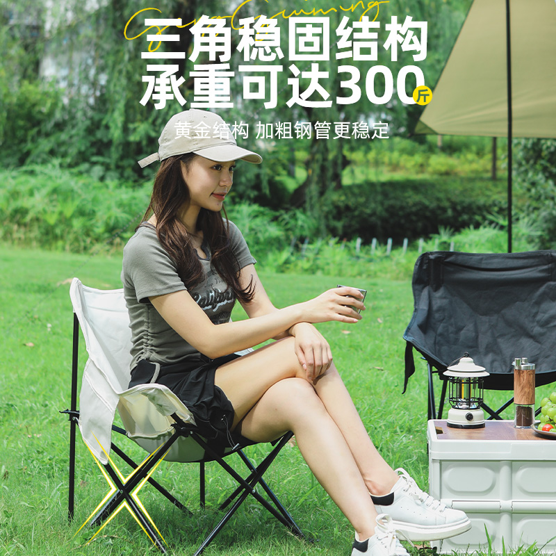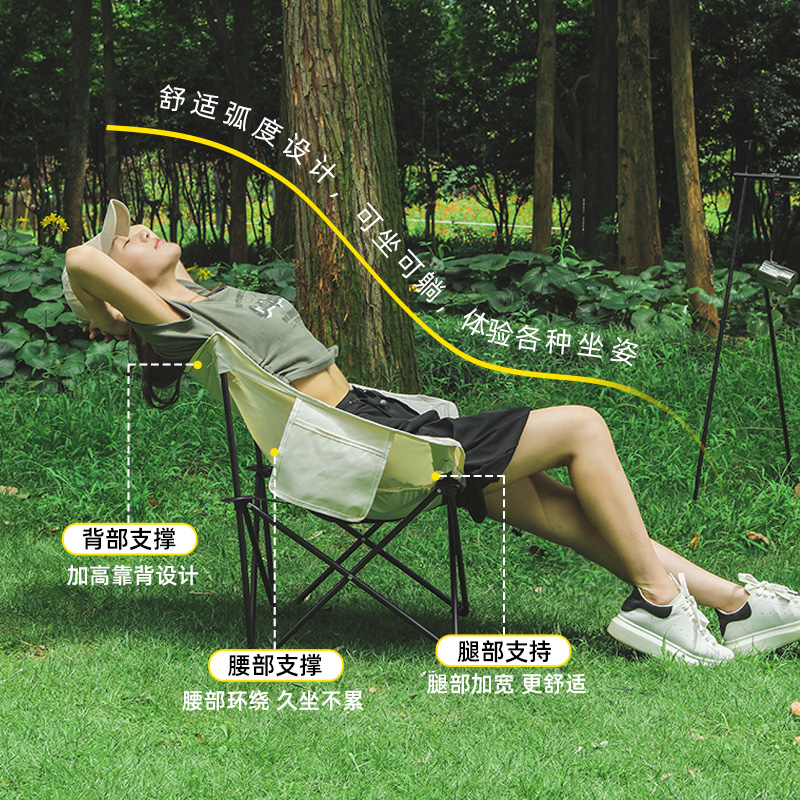 戶外摺疊椅可攜式摺疊月亮椅躺椅露營椅子裝備小凳子馬扎摺疊凳釣魚