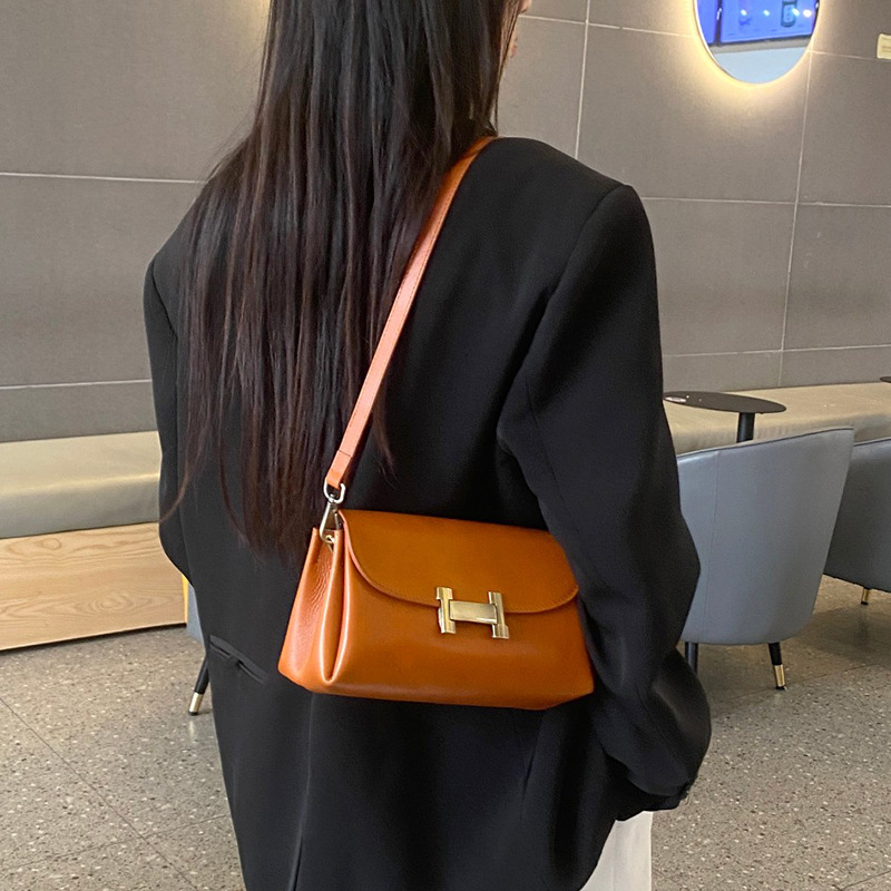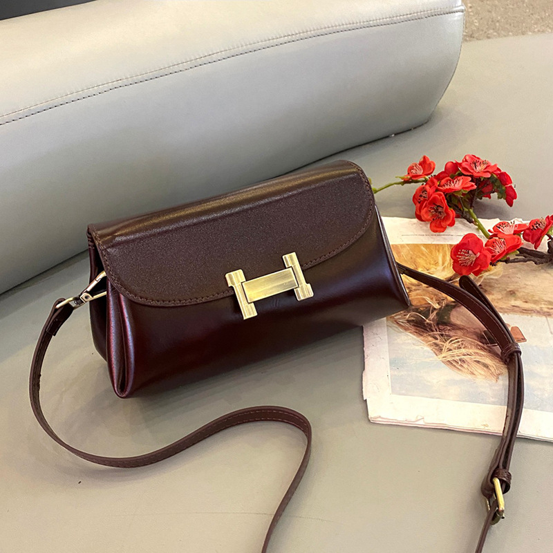 斜挎包直播跨境新款小方包简约女真皮高级感轻奢植鞣头层单肩女包