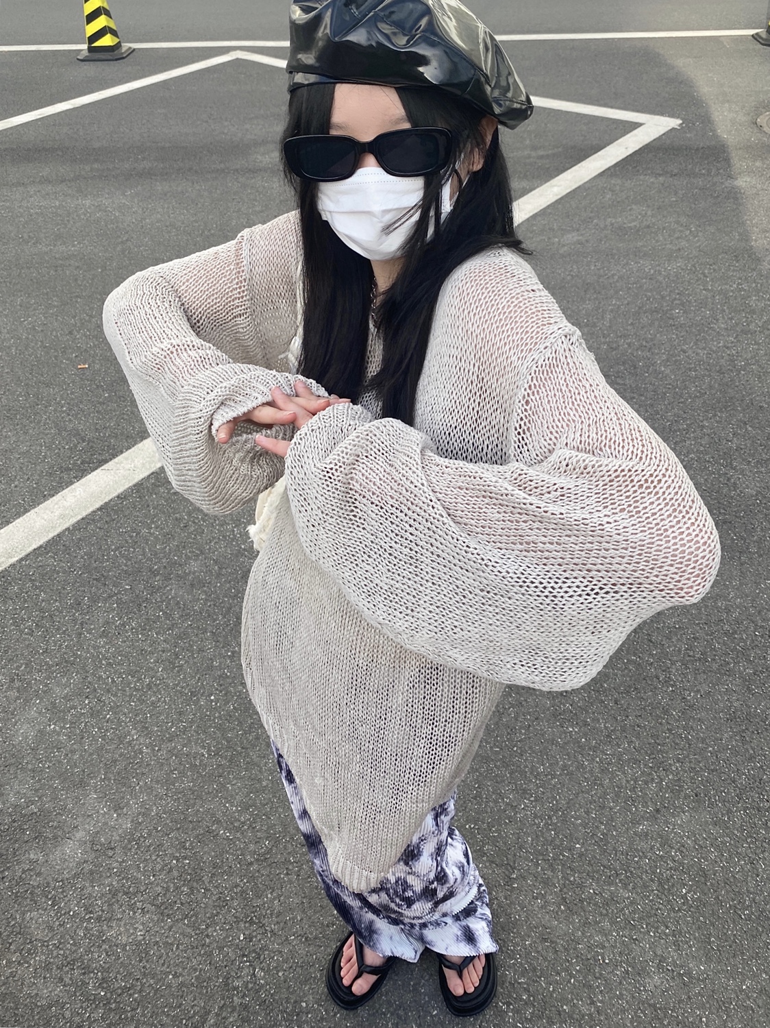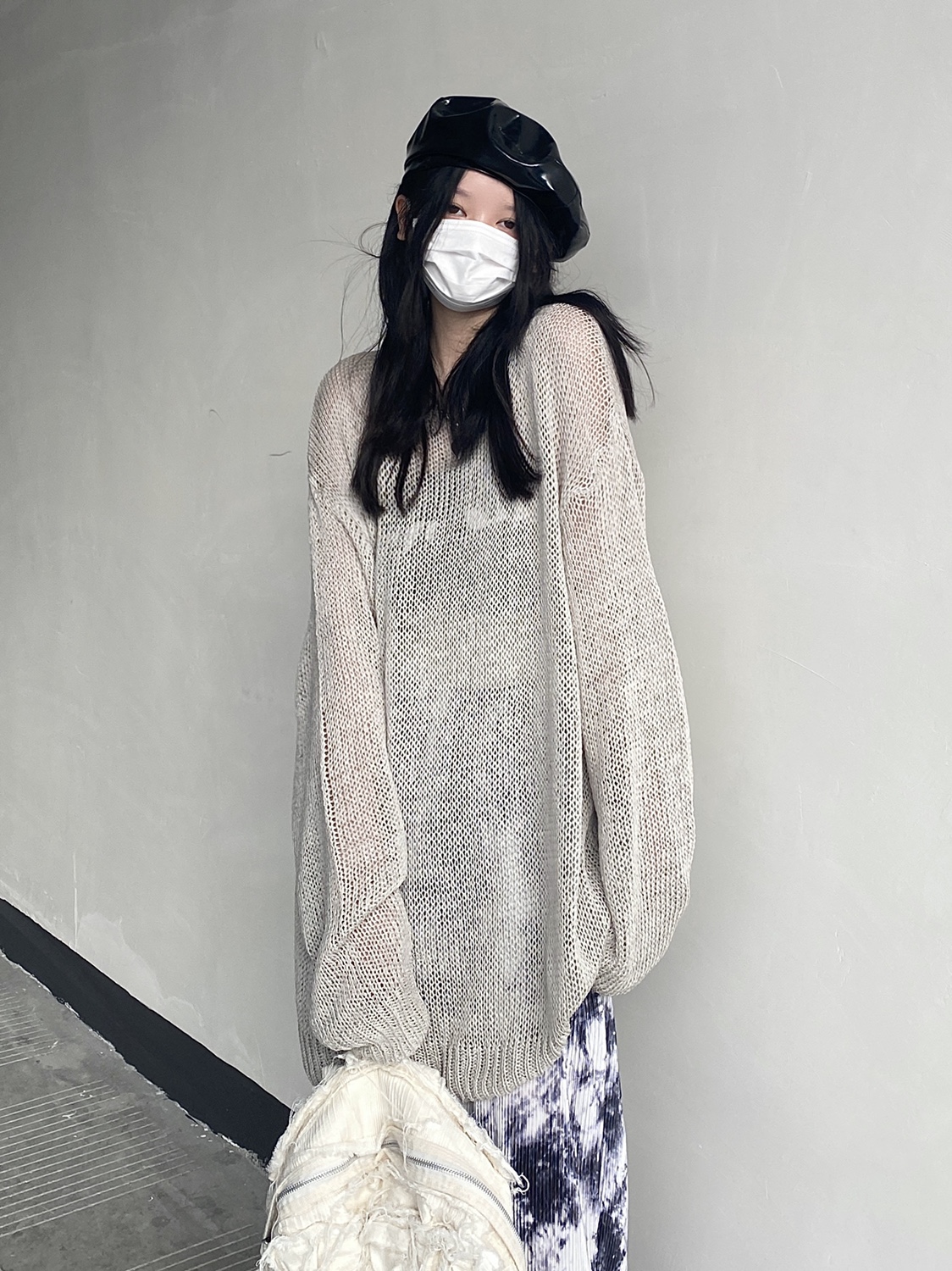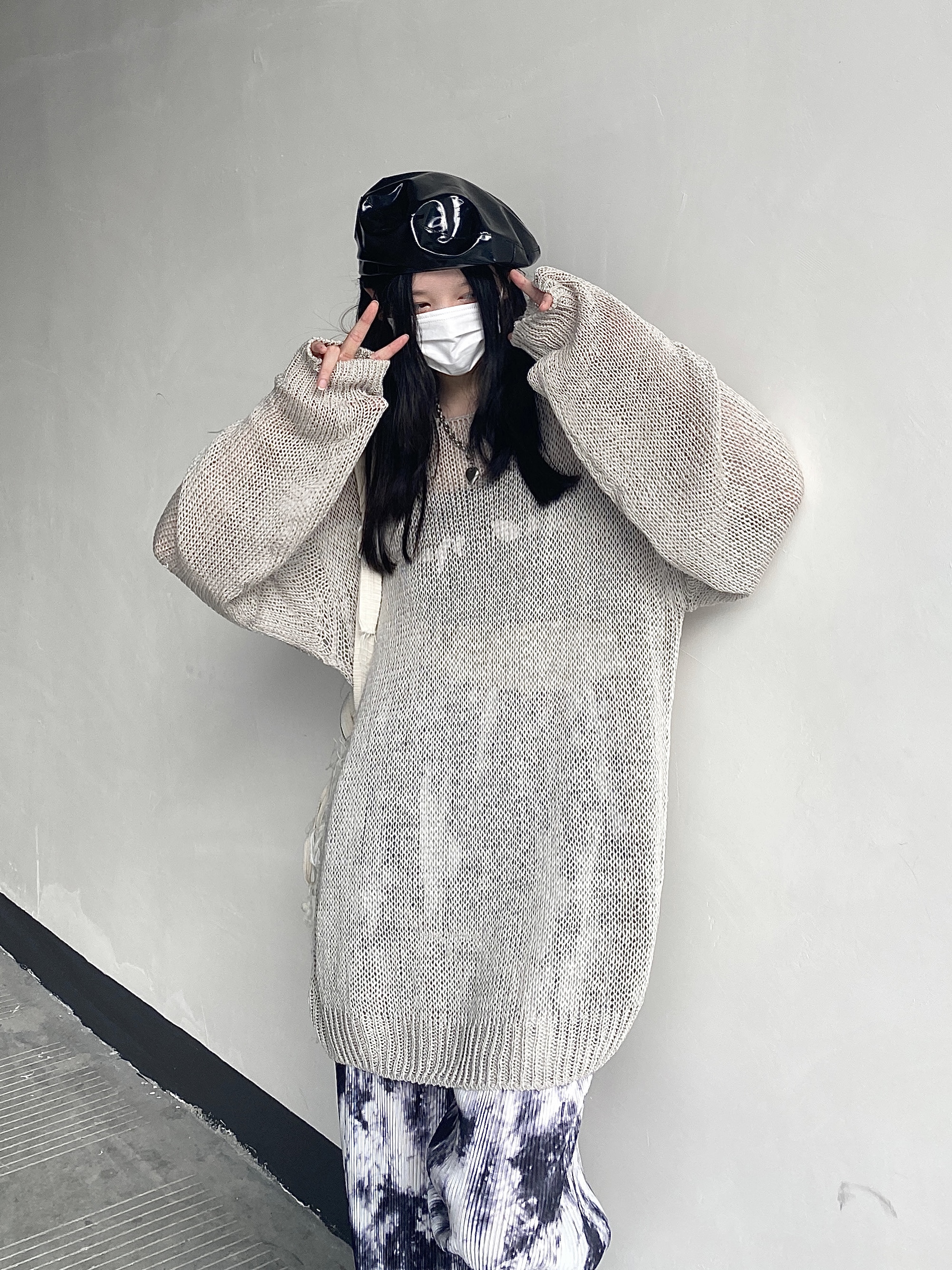 Takeoff咖哩人秋新款寬鬆微透針織衫毛衣顯瘦百搭日韓街頭男女潮