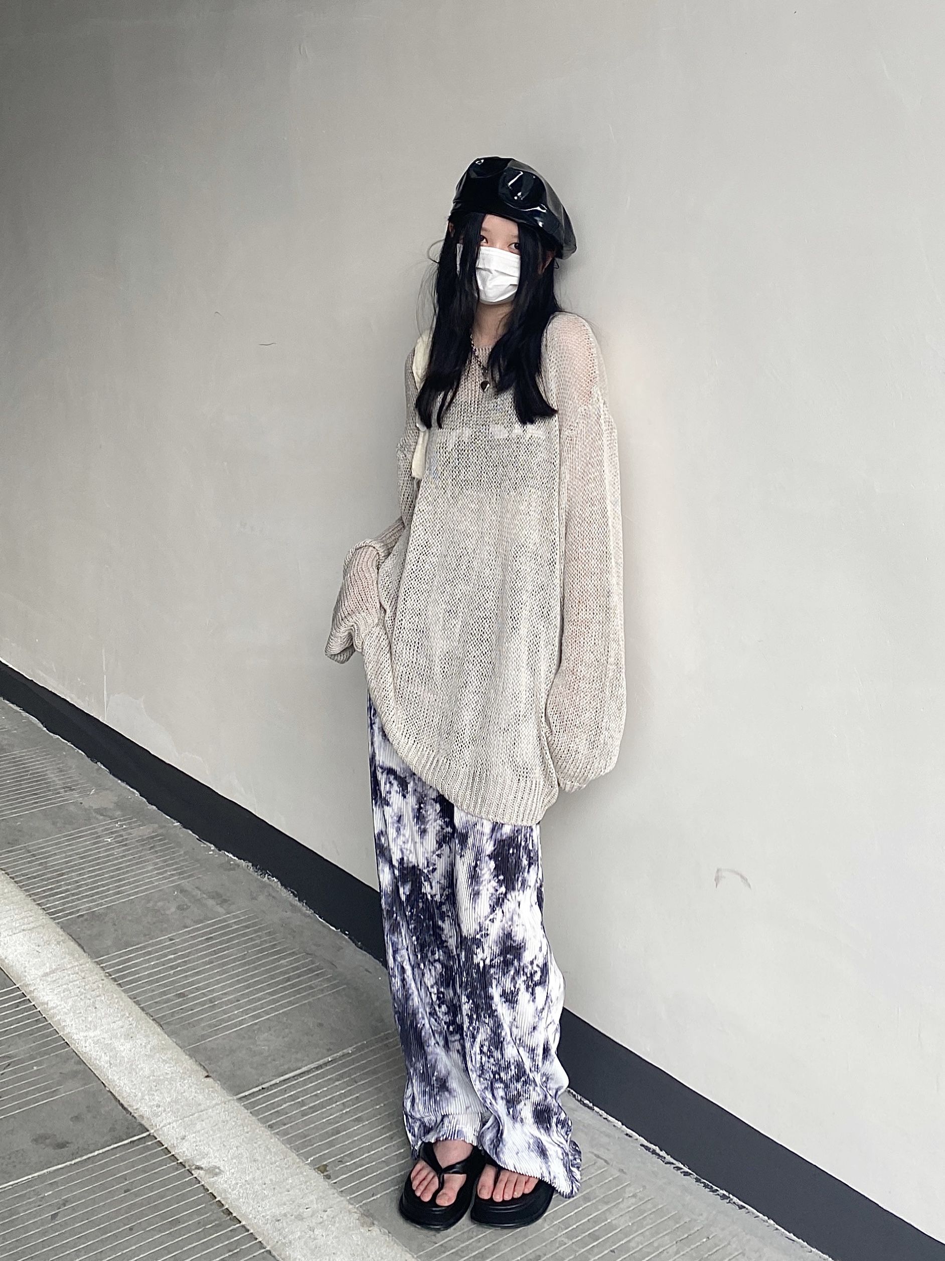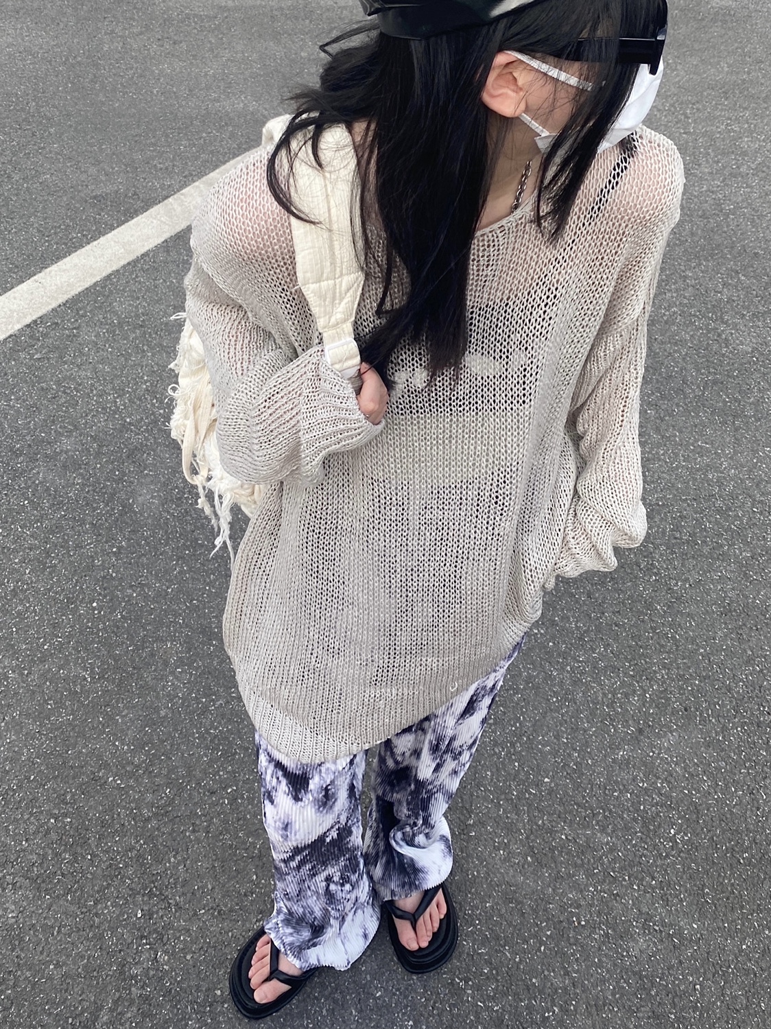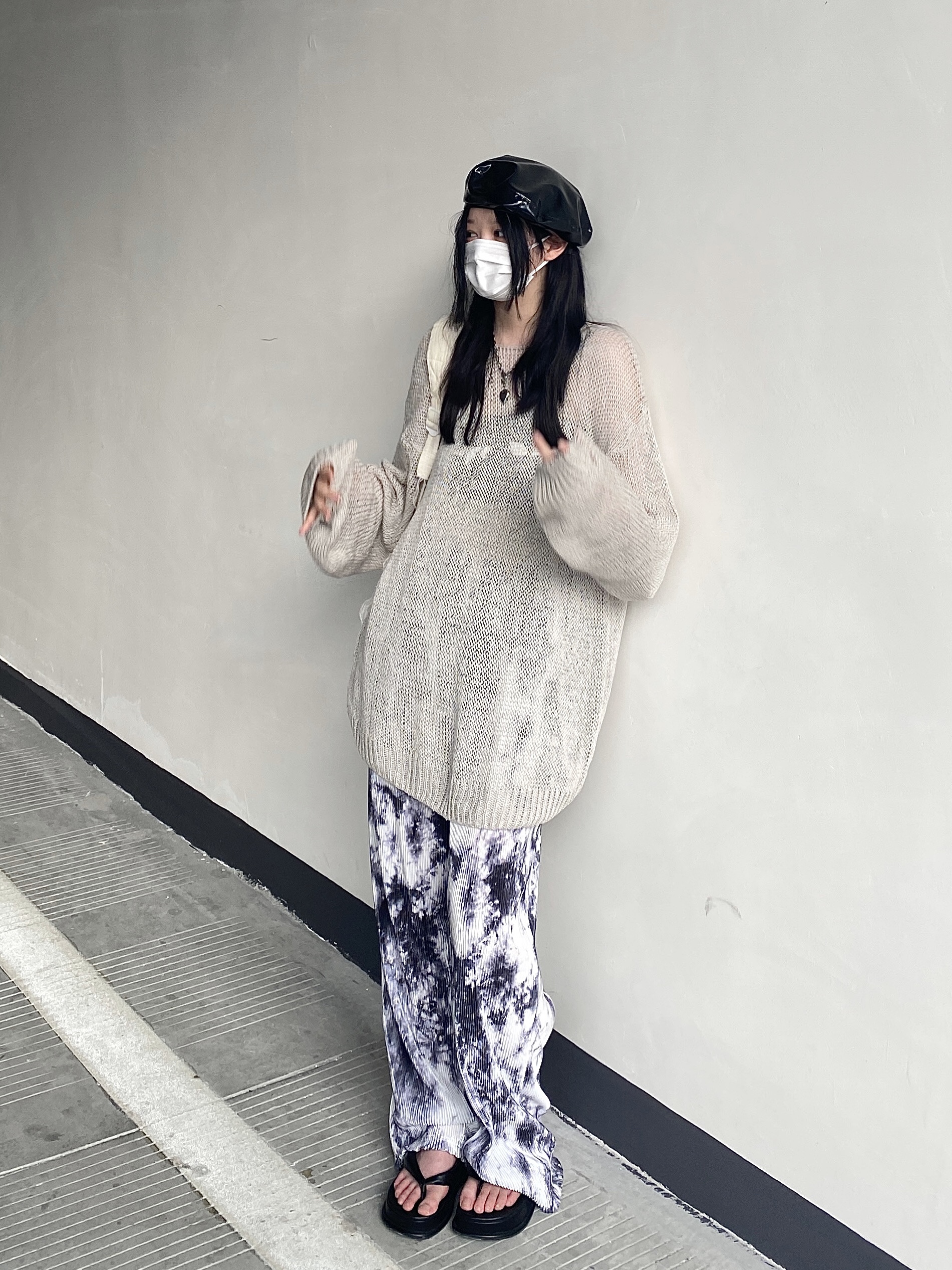 Takeoff咖哩人秋新款寬鬆微透針織衫毛衣顯瘦百搭日韓街頭男女潮