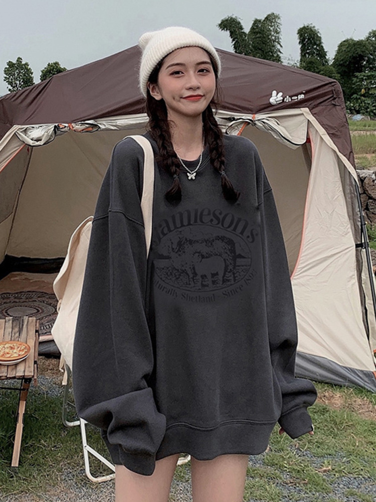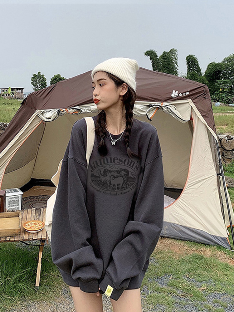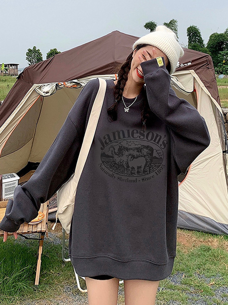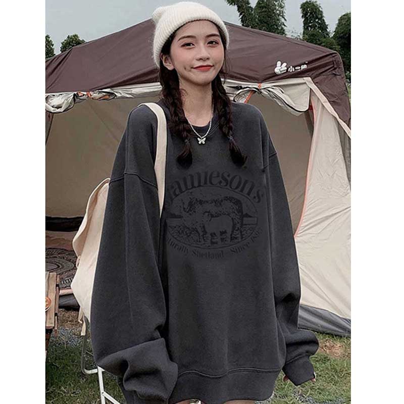 衛衣女2023新款春秋加絨厚外套oversize潮牌寬鬆大尺碼冬季無帽上衣
