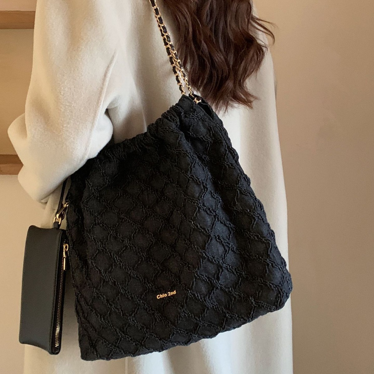 南风Chio2nd 菠萝格水桶包2023新款慵懒风包包女大容量链条单肩包