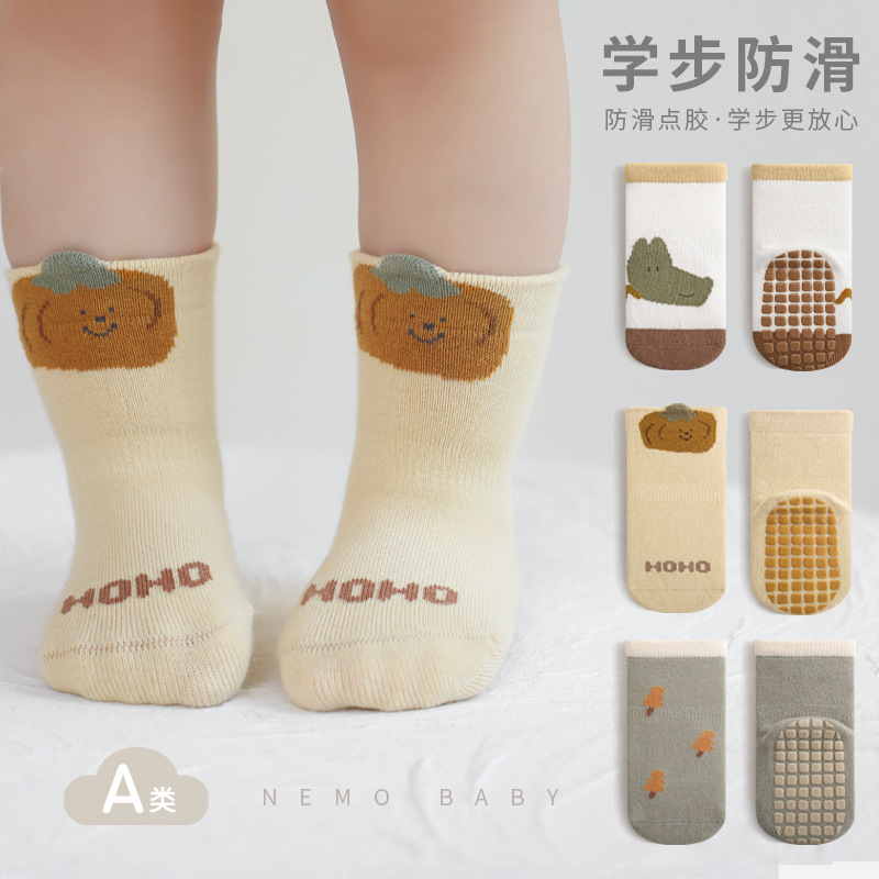 宝宝地板袜2023秋冬新品室内防滑全底胶学步可爱卡通男女童中筒袜