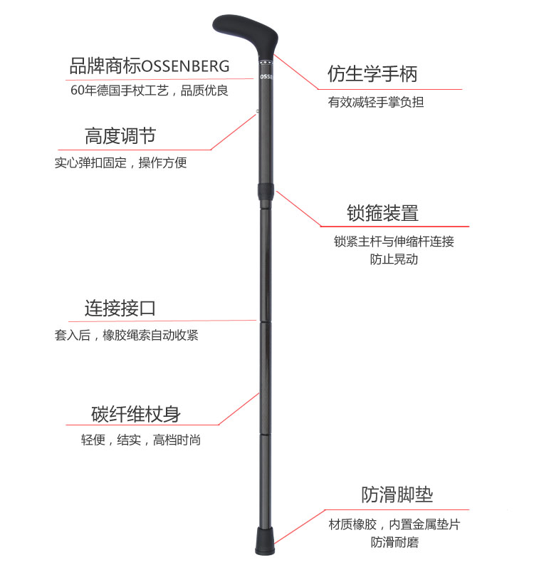德國進口ossenberg柺杖碳纖維柺杖可摺疊老人手杖助行登山杖超輕