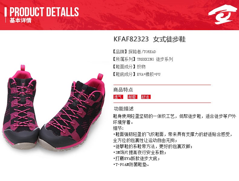 探路者成人女款徒步鞋 春夏季超值戶外一體織輕便防滑耐磨可登山