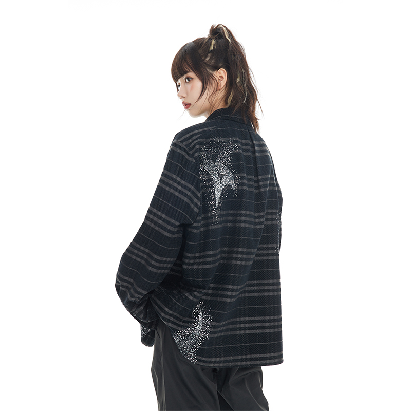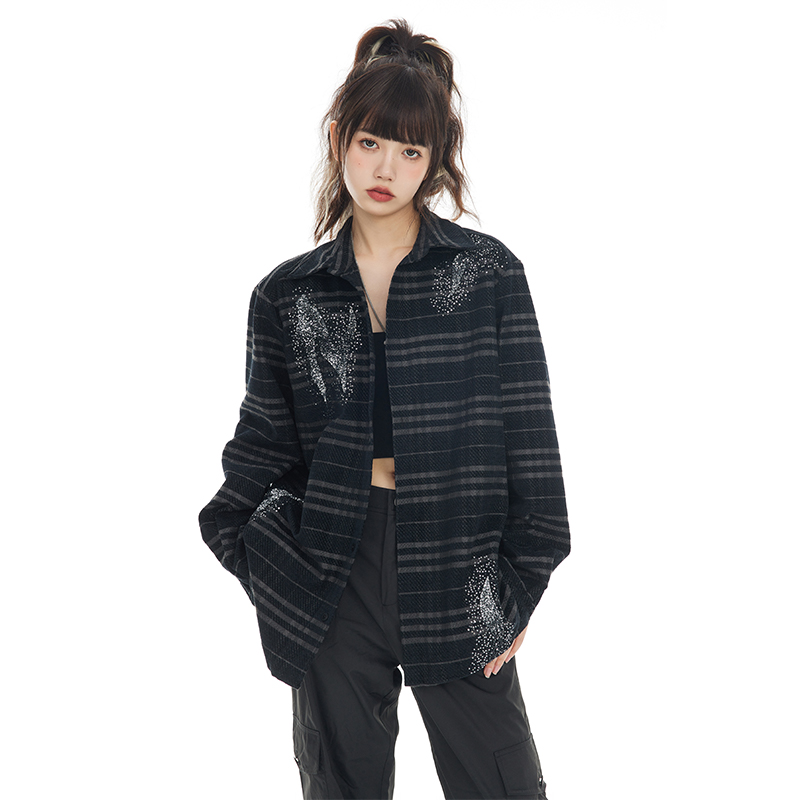 BANDITK GANGN復古美式襯衫外套女春秋長袖寬鬆新款亮片翻領上衣
