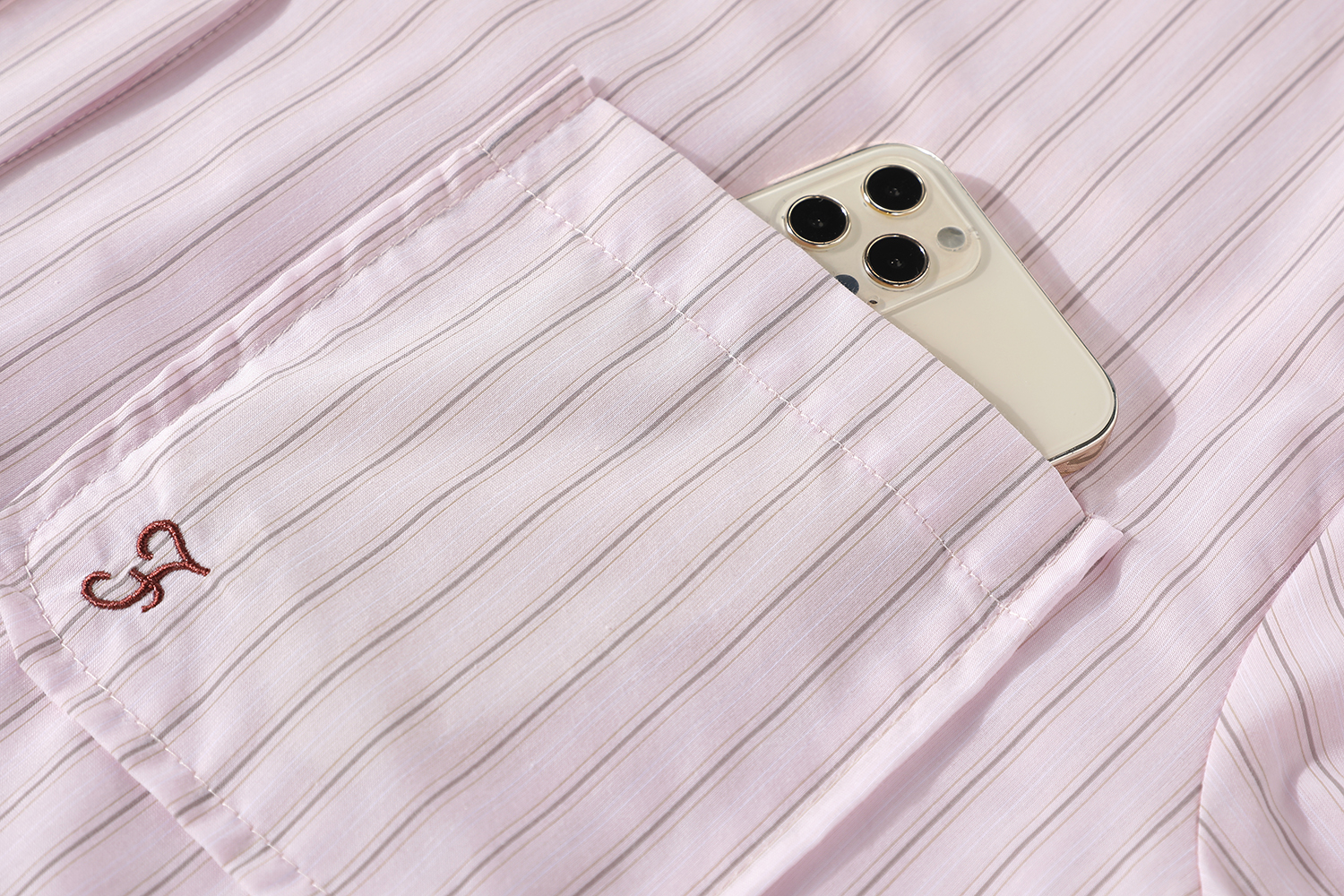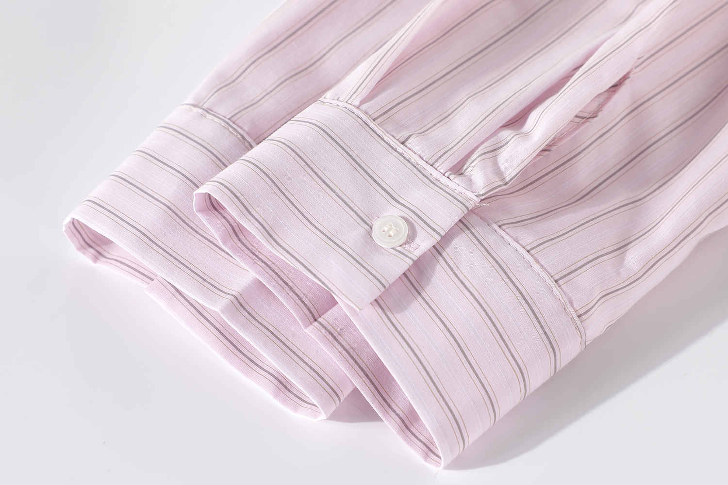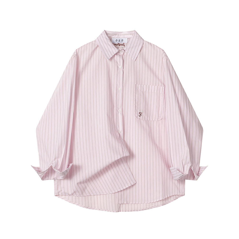 XinmonLee粉色條紋長袖襯衫女春季新款襯衣小眾法式甜美別致上衣