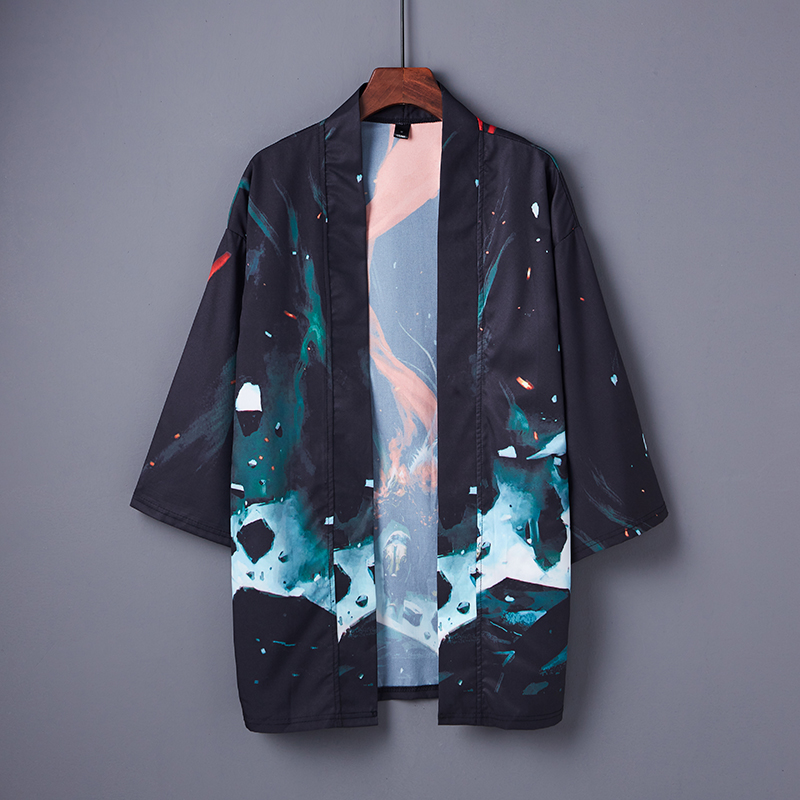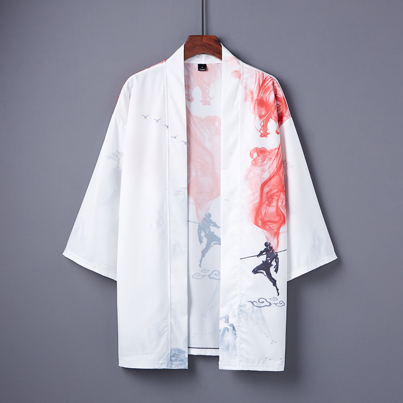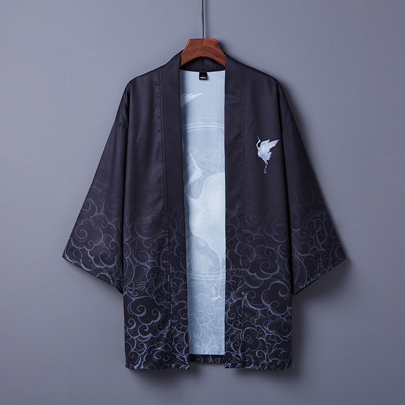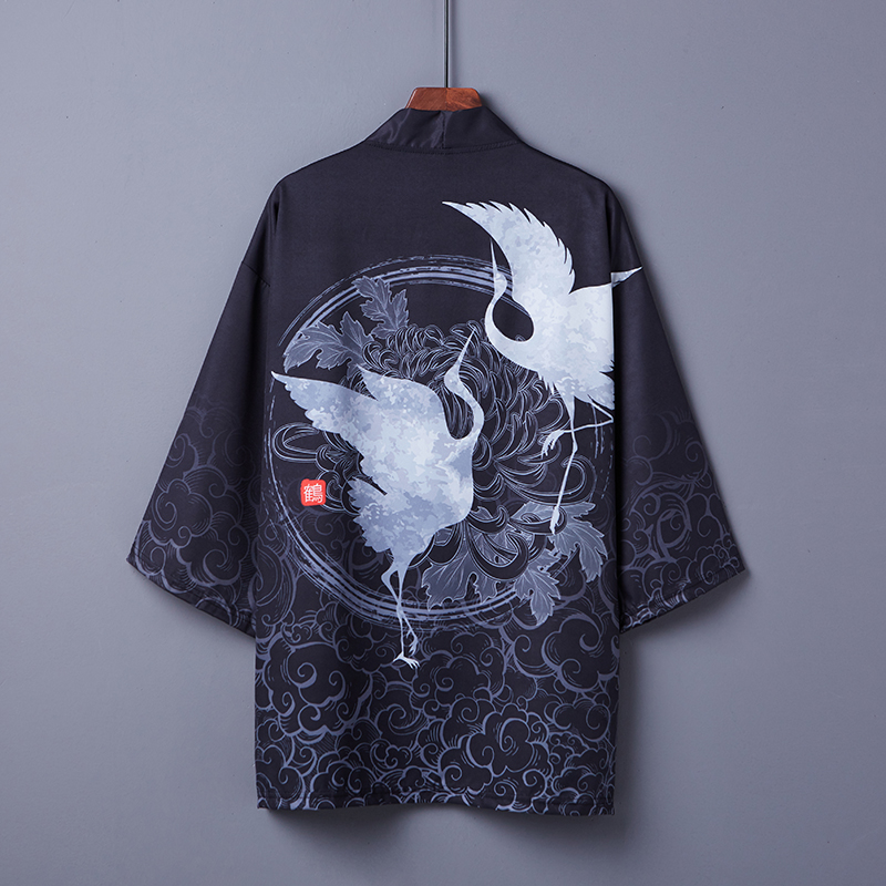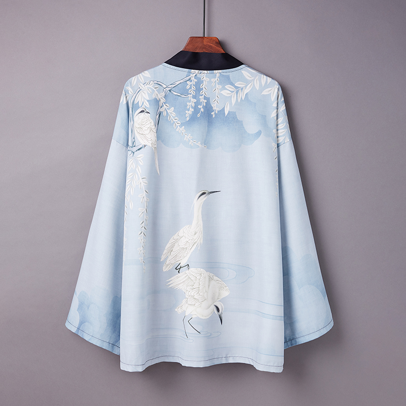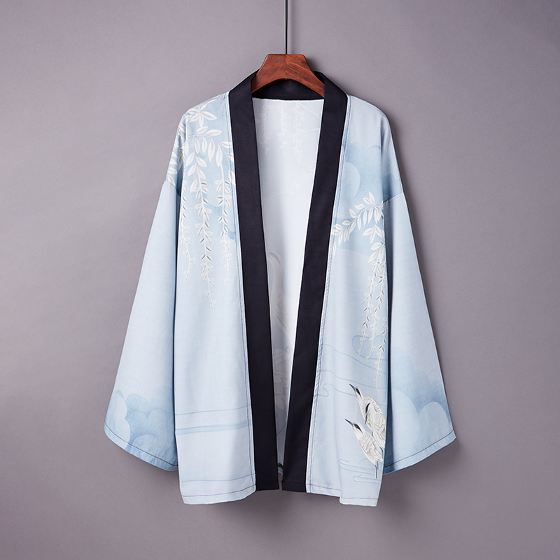 2022春夏日系和風長袖羽織中國風浮世繪仙鶴和服開衫寬鬆學生外套
