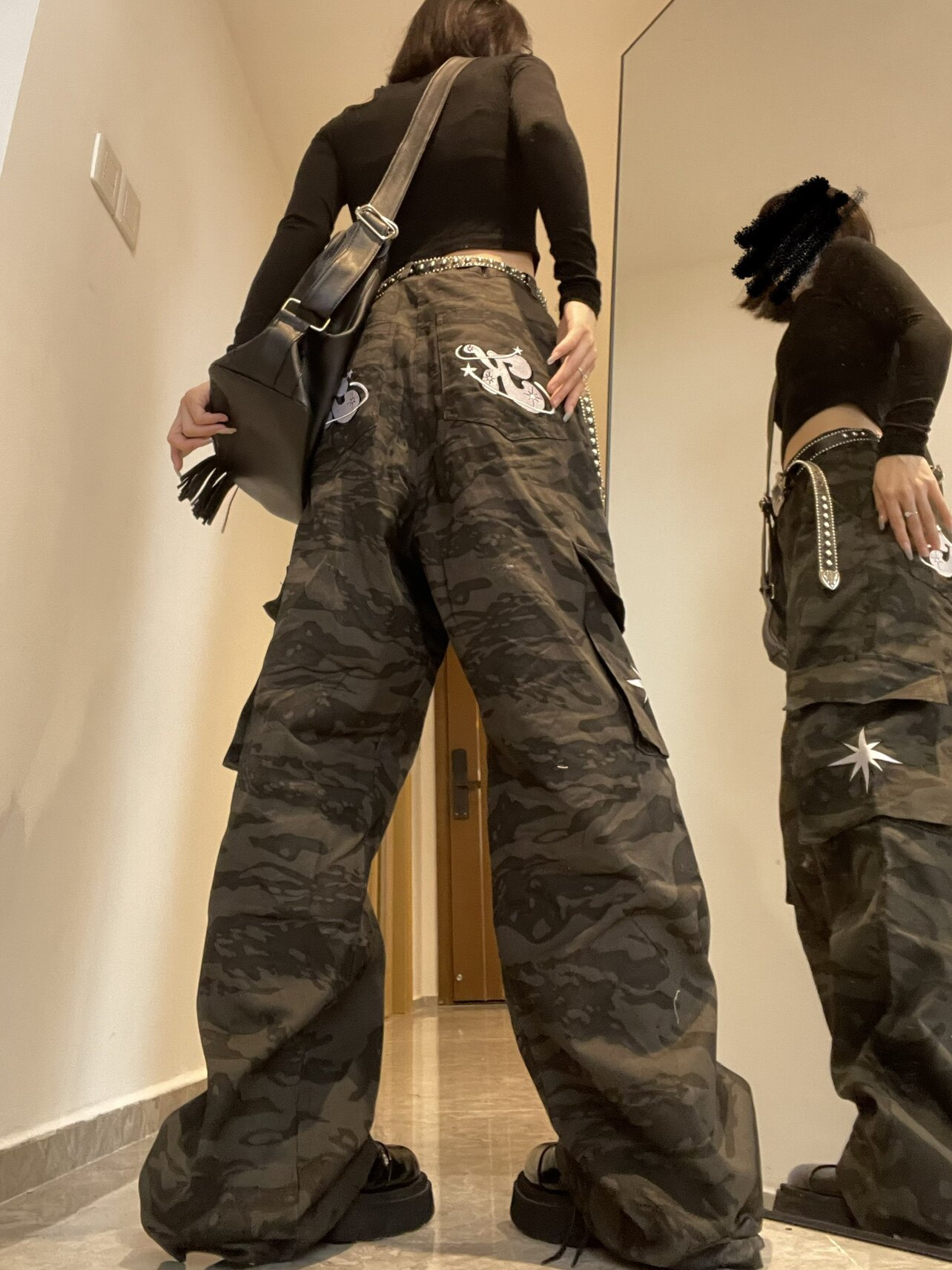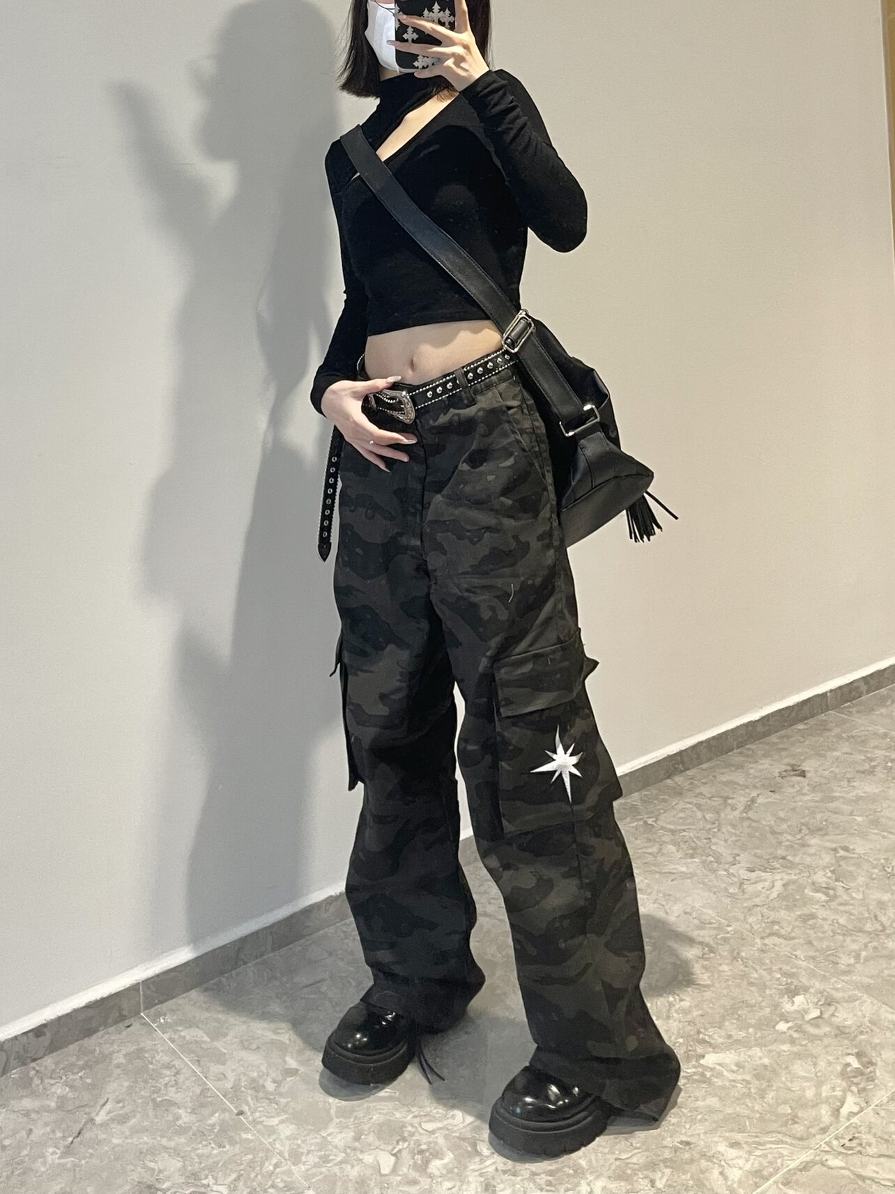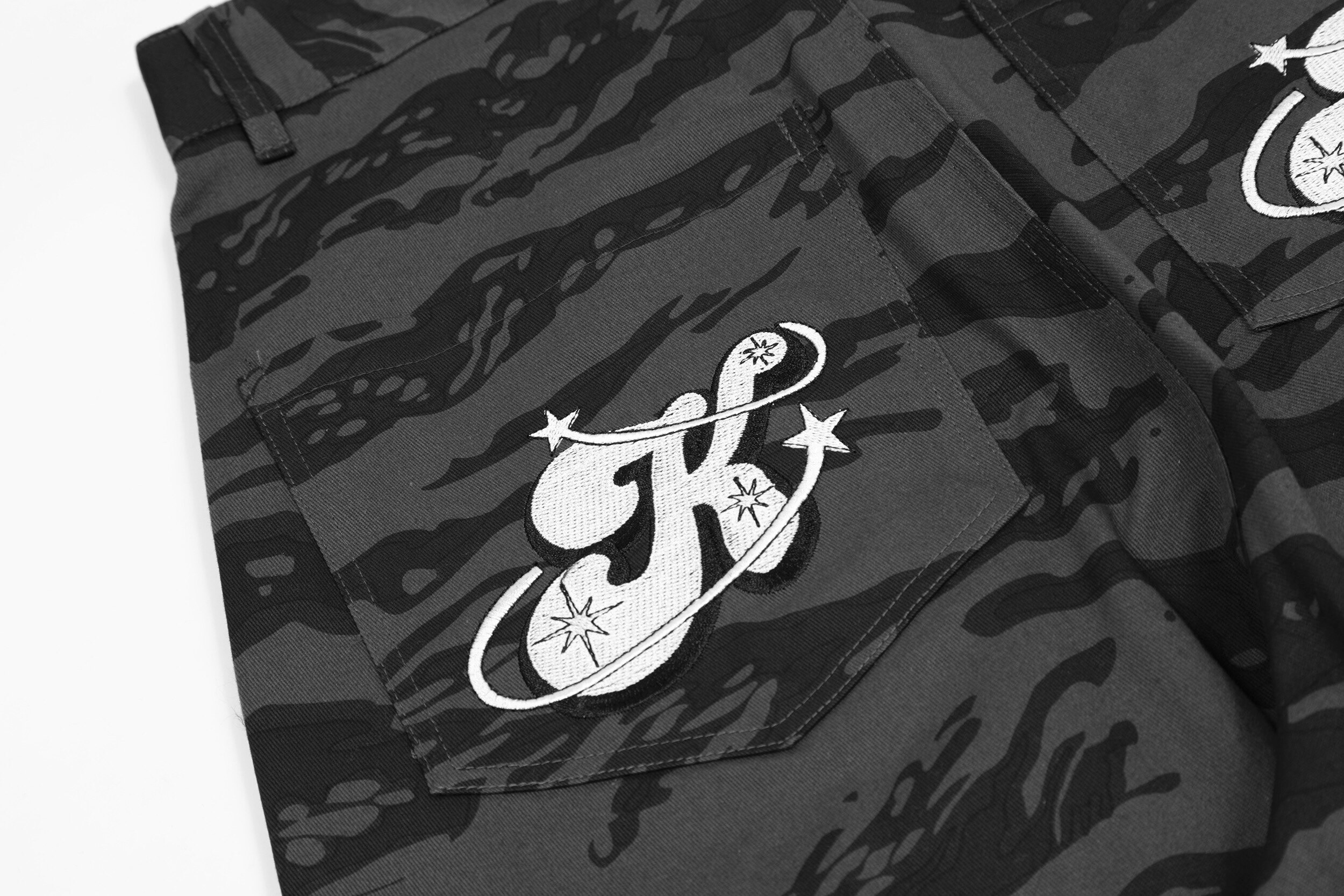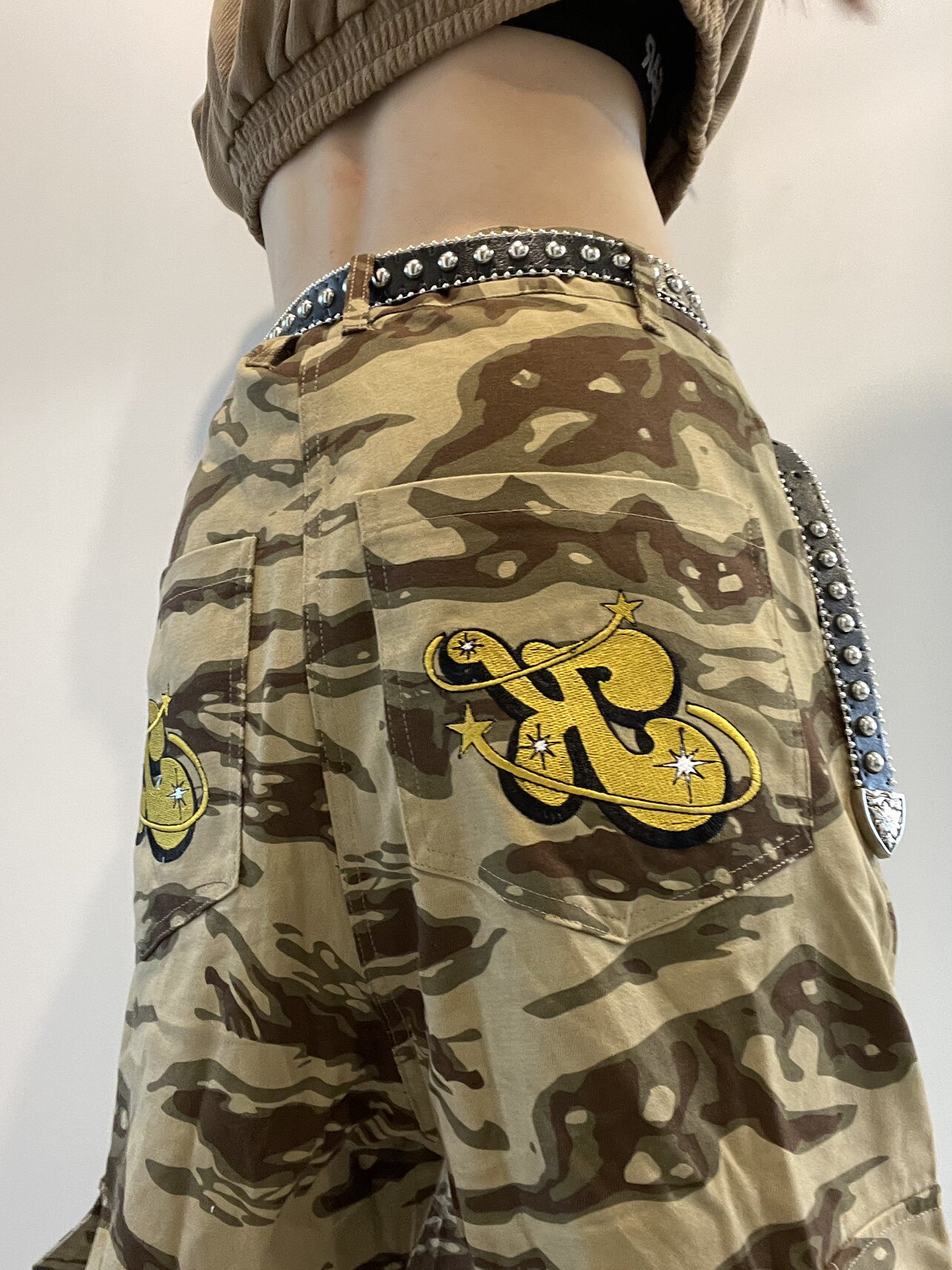 高街hiphop工裝迷彩褲女美式復古直筒寬鬆休閒褲子夏季牛仔長褲男