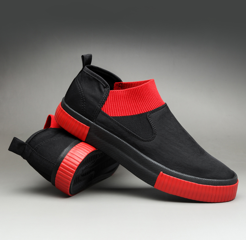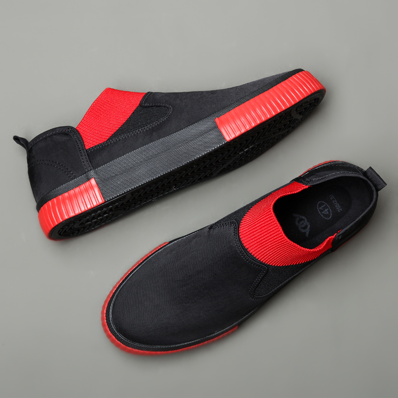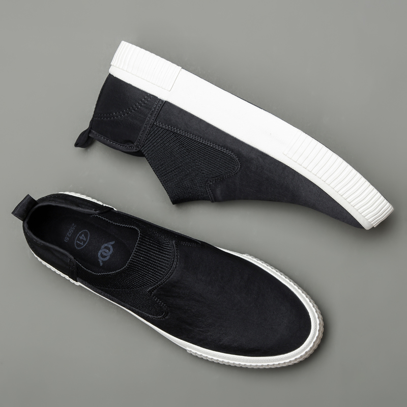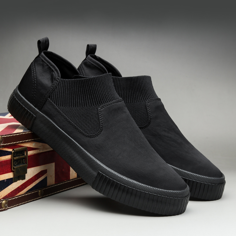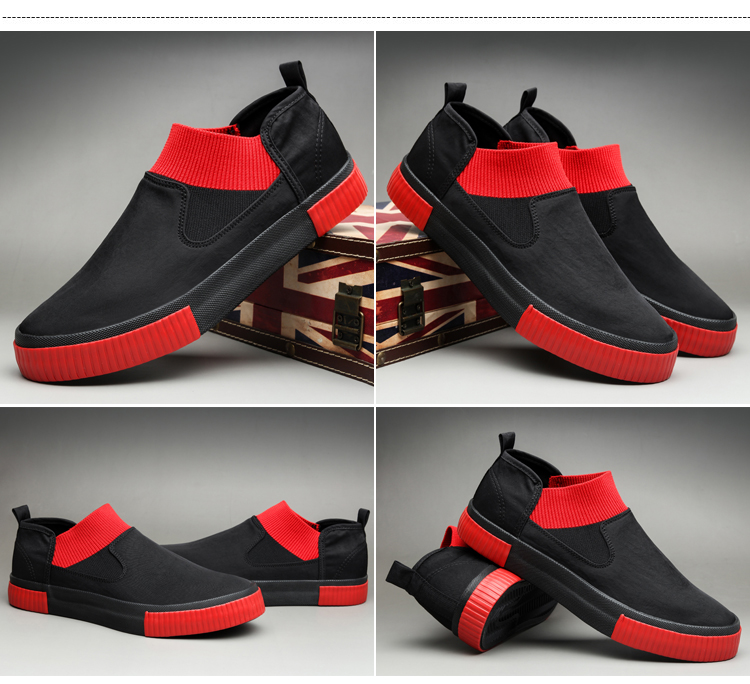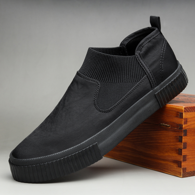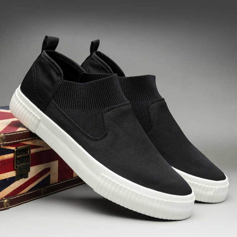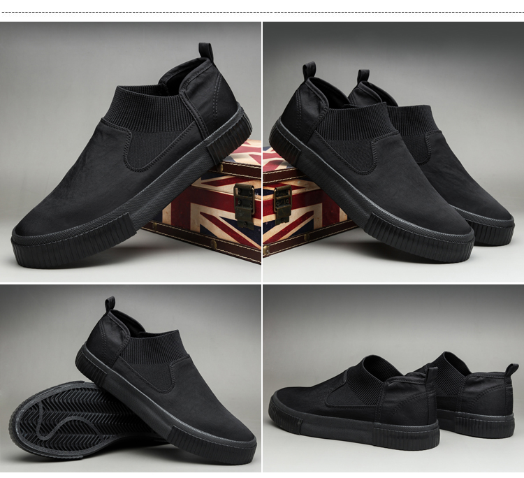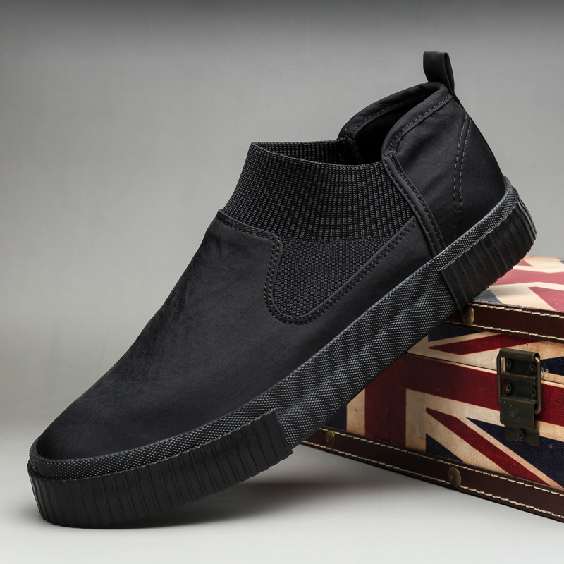 2023年新款夏季中筒潮鞋休閒男士透氣滑板鞋一腳蹬懶人帆布鞋網鞋男