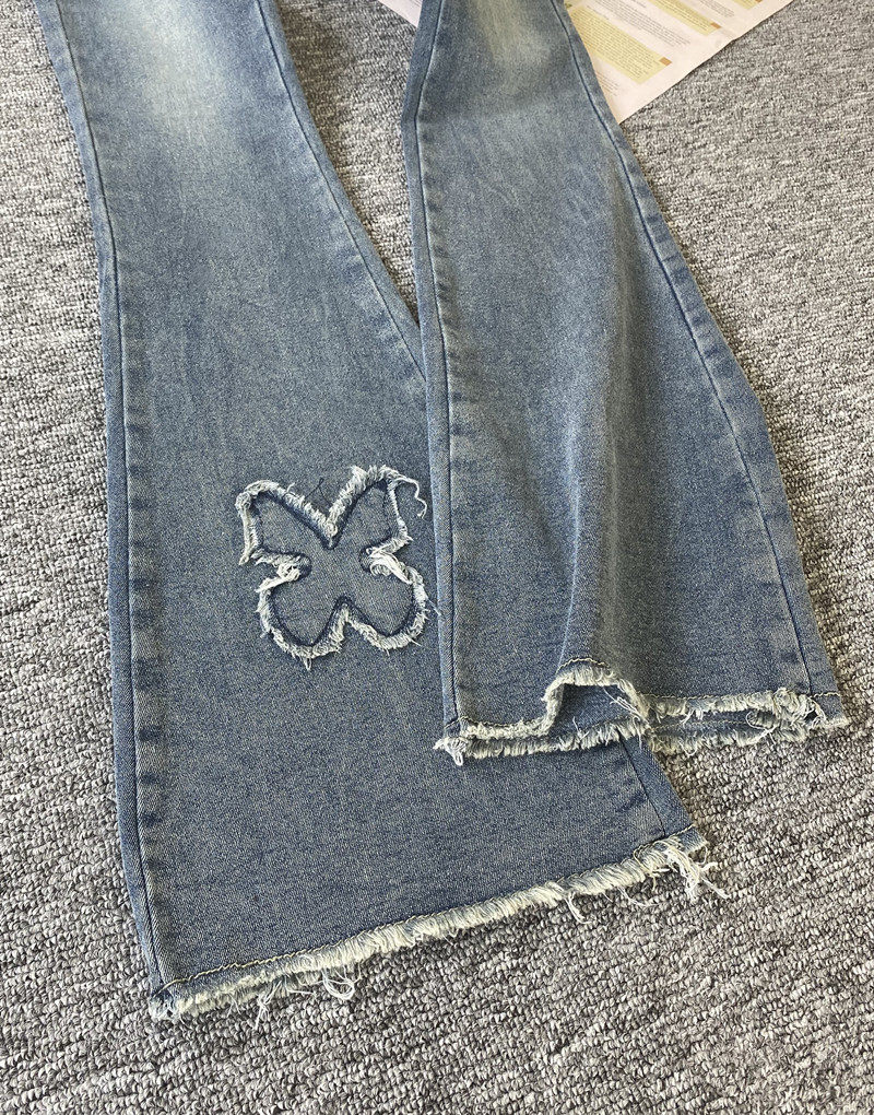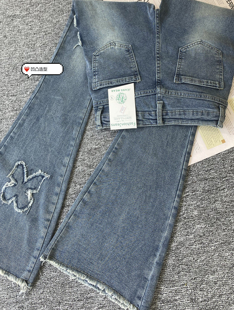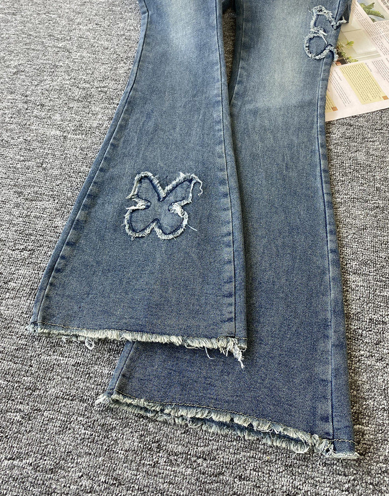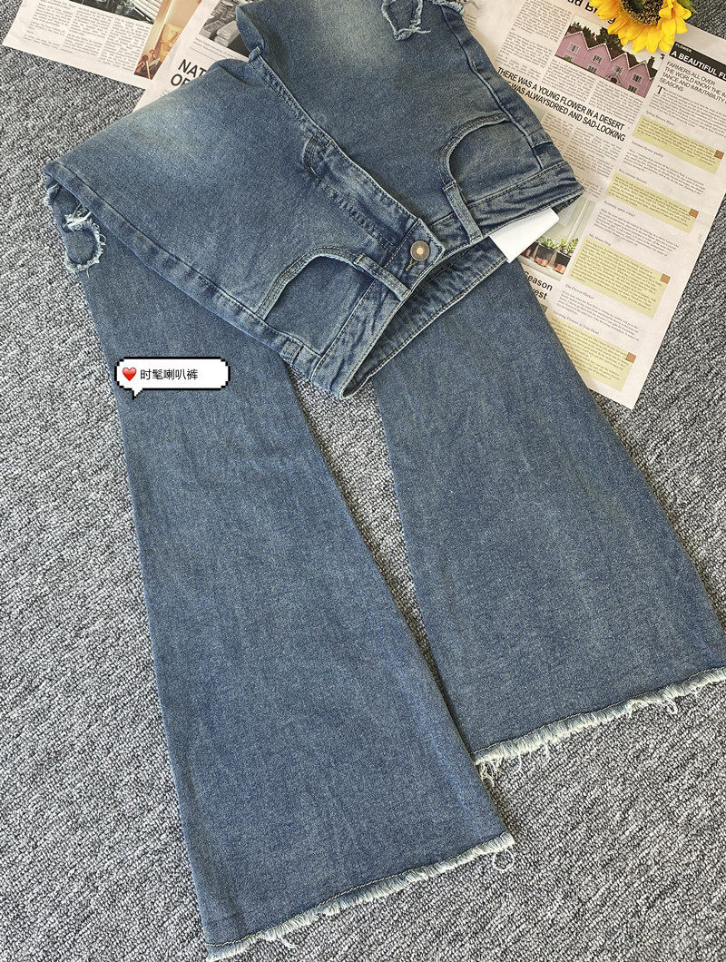 微喇叭牛仔褲女設計感小眾復古港風千禧辣妹穿搭高腰顯瘦毛邊褲子